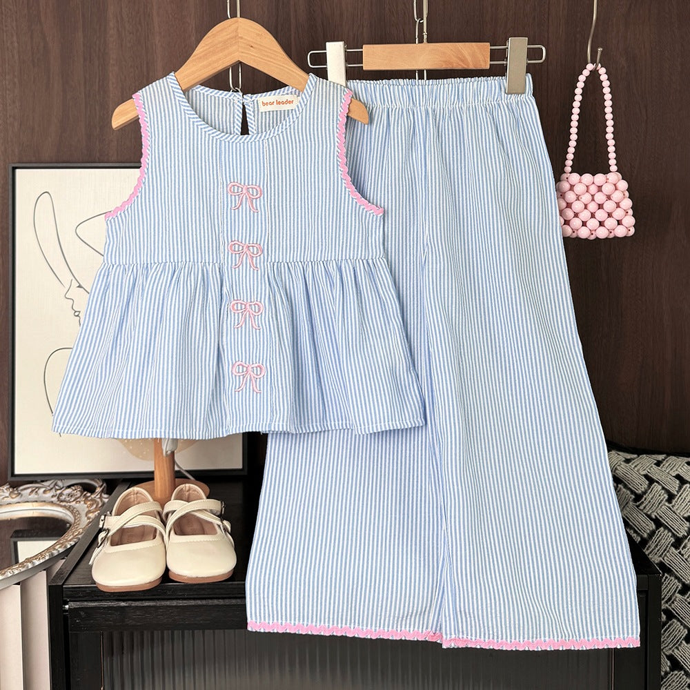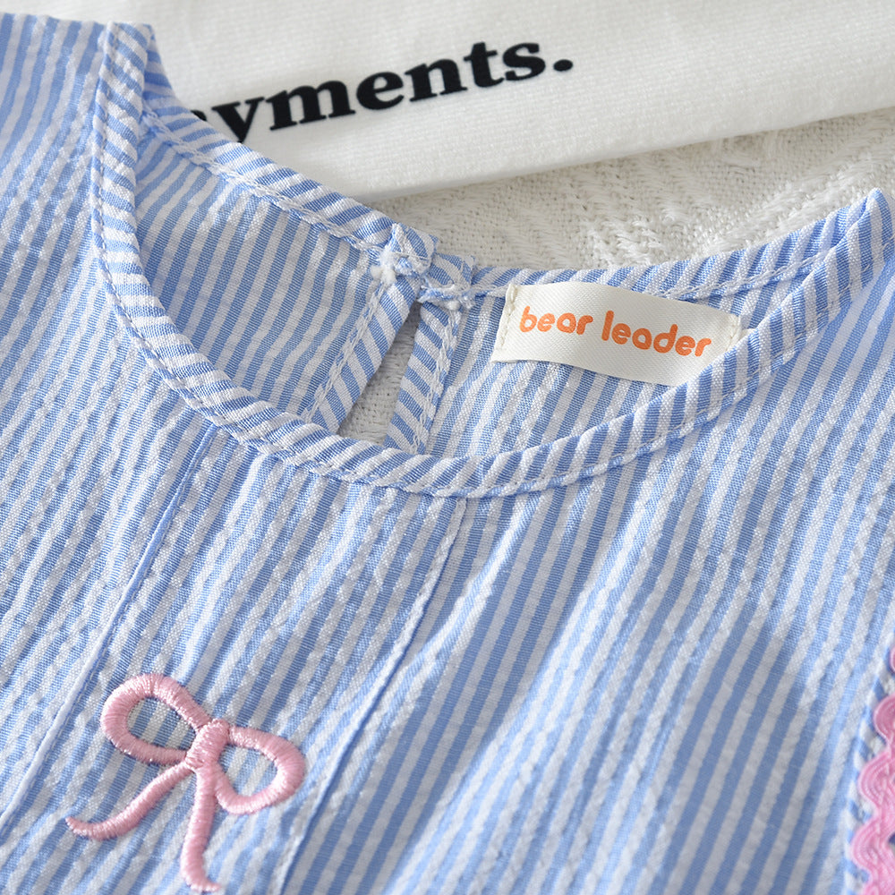 【100-140】リボン刺繍ストライプセットアップ