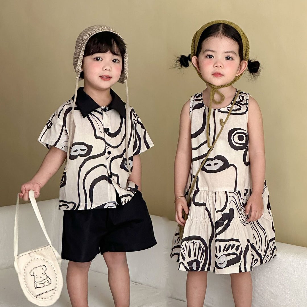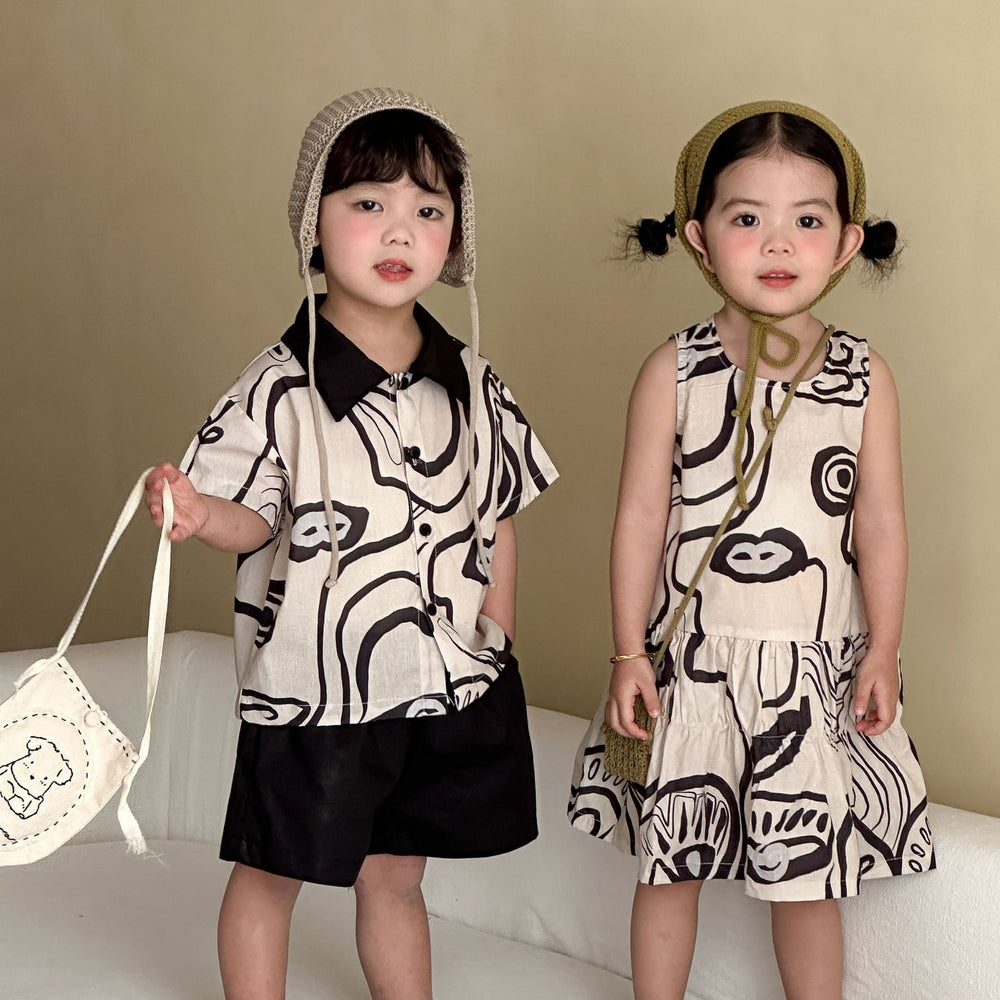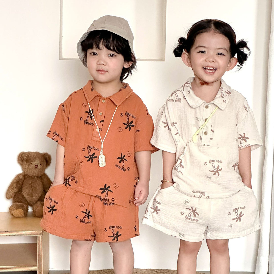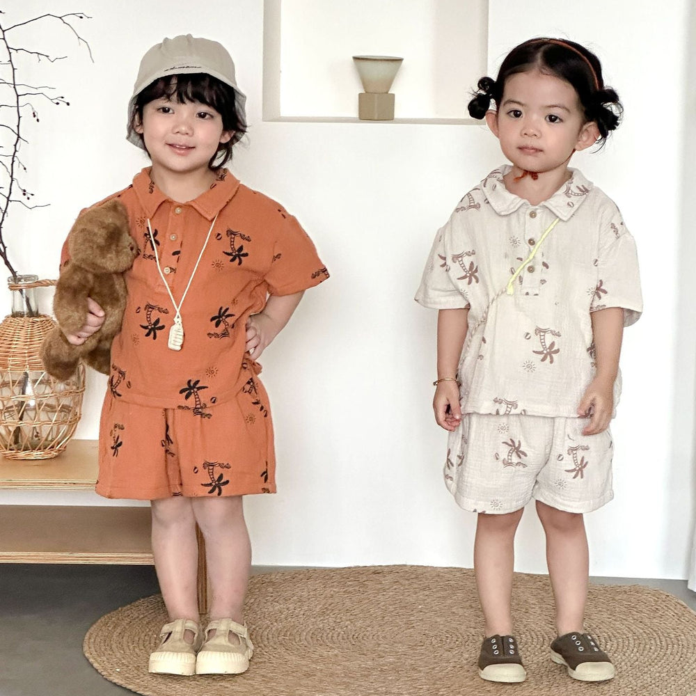 【80-150】総柄シャツ×ハーフパンツセット