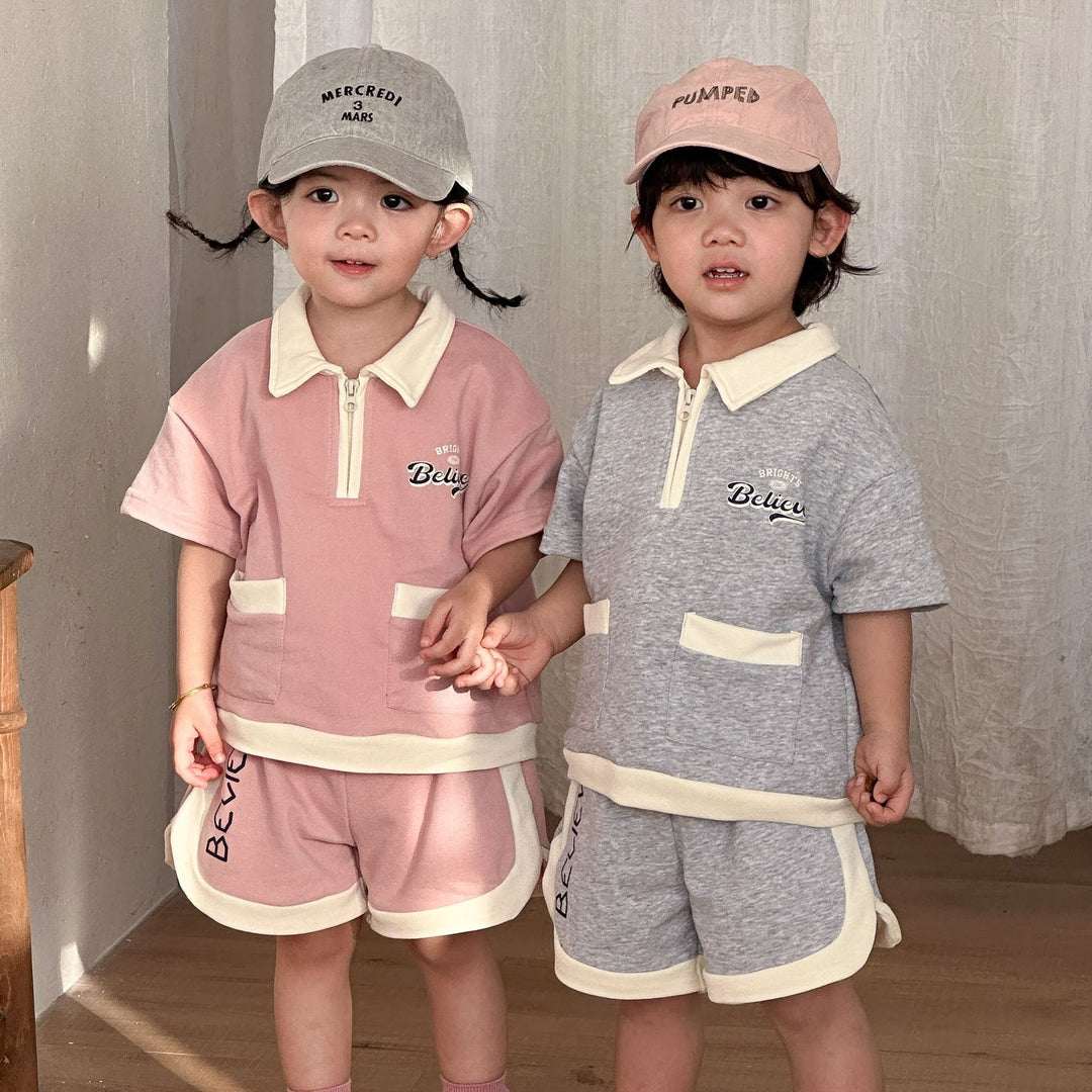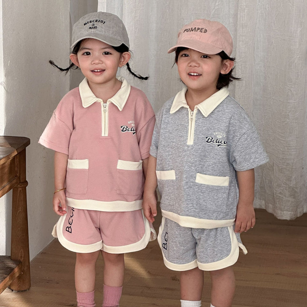 【80-150】ハーフジップ半袖セットアップ