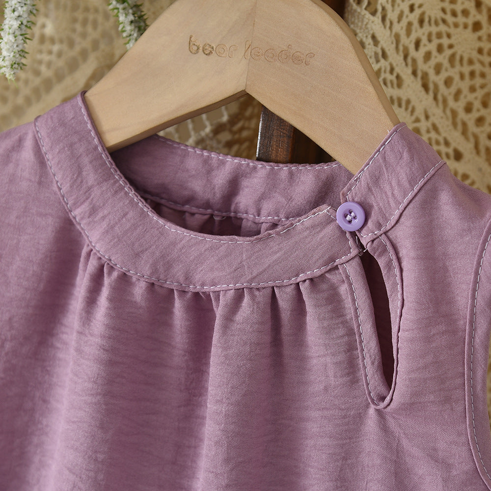 【90-150】フリルハートノースリーブ×チェックロングパンツセット
