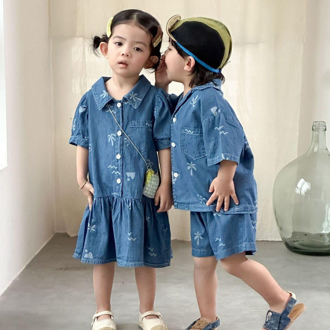 【80-150】半袖デニムシャツセットアップ