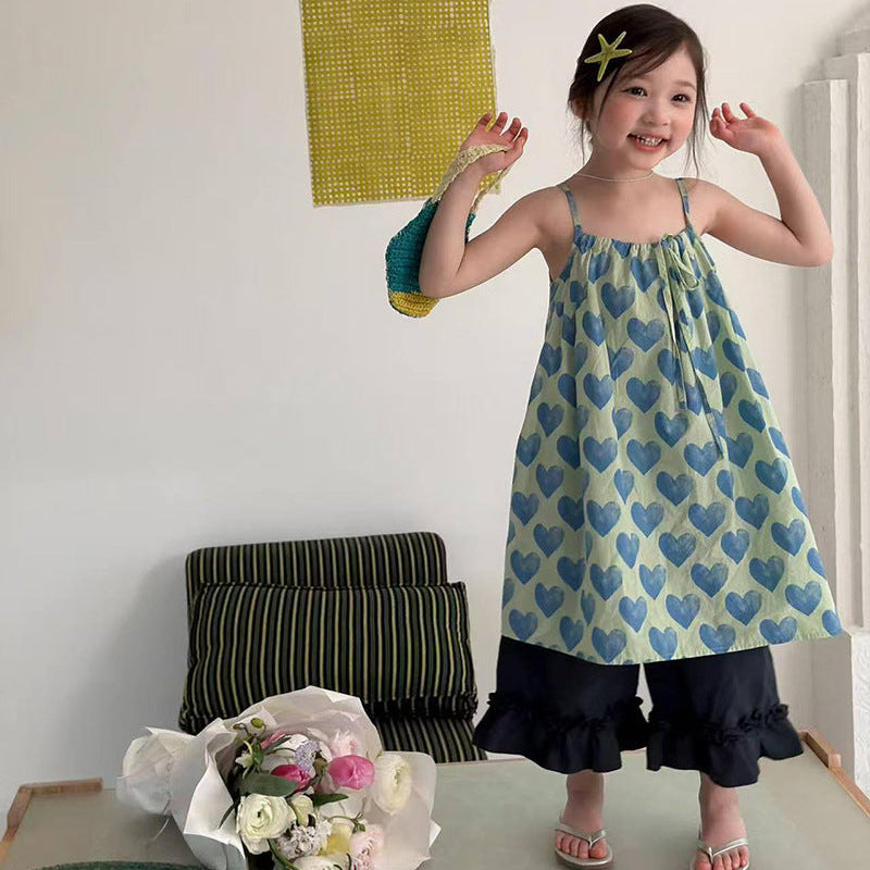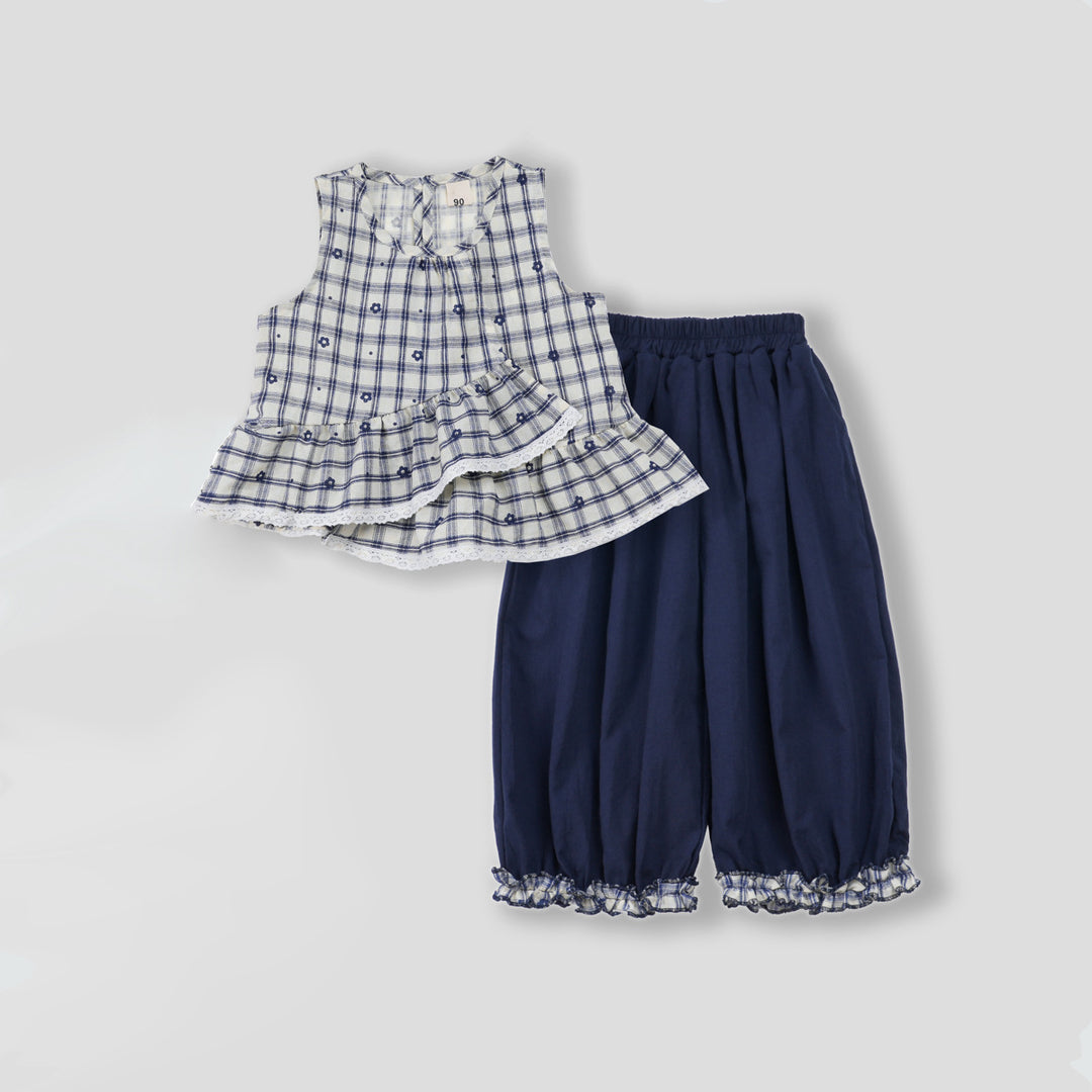【90-140】花柄&チェック柄フリルヘムセットアップ