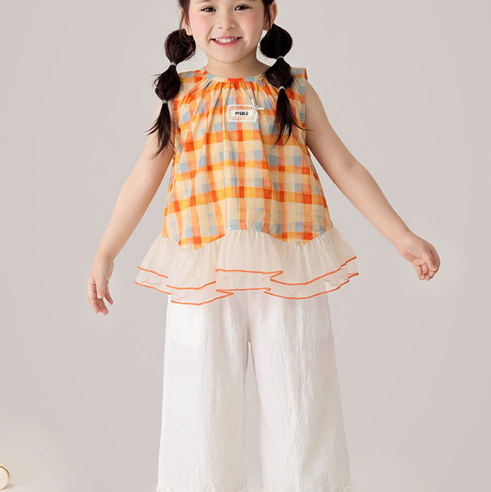 【90-150】マルチカラーギンガムチェックノースリーブ