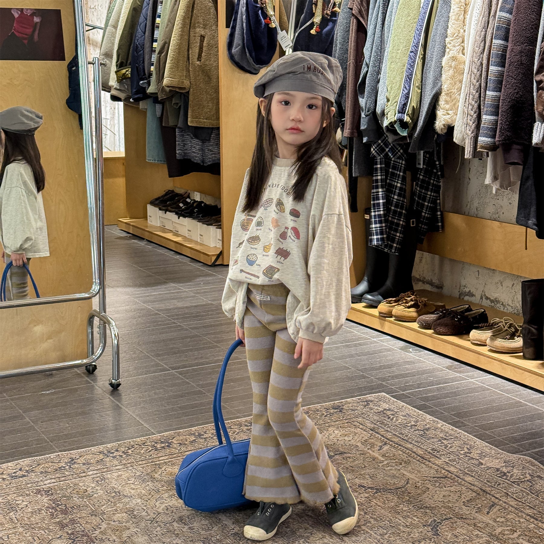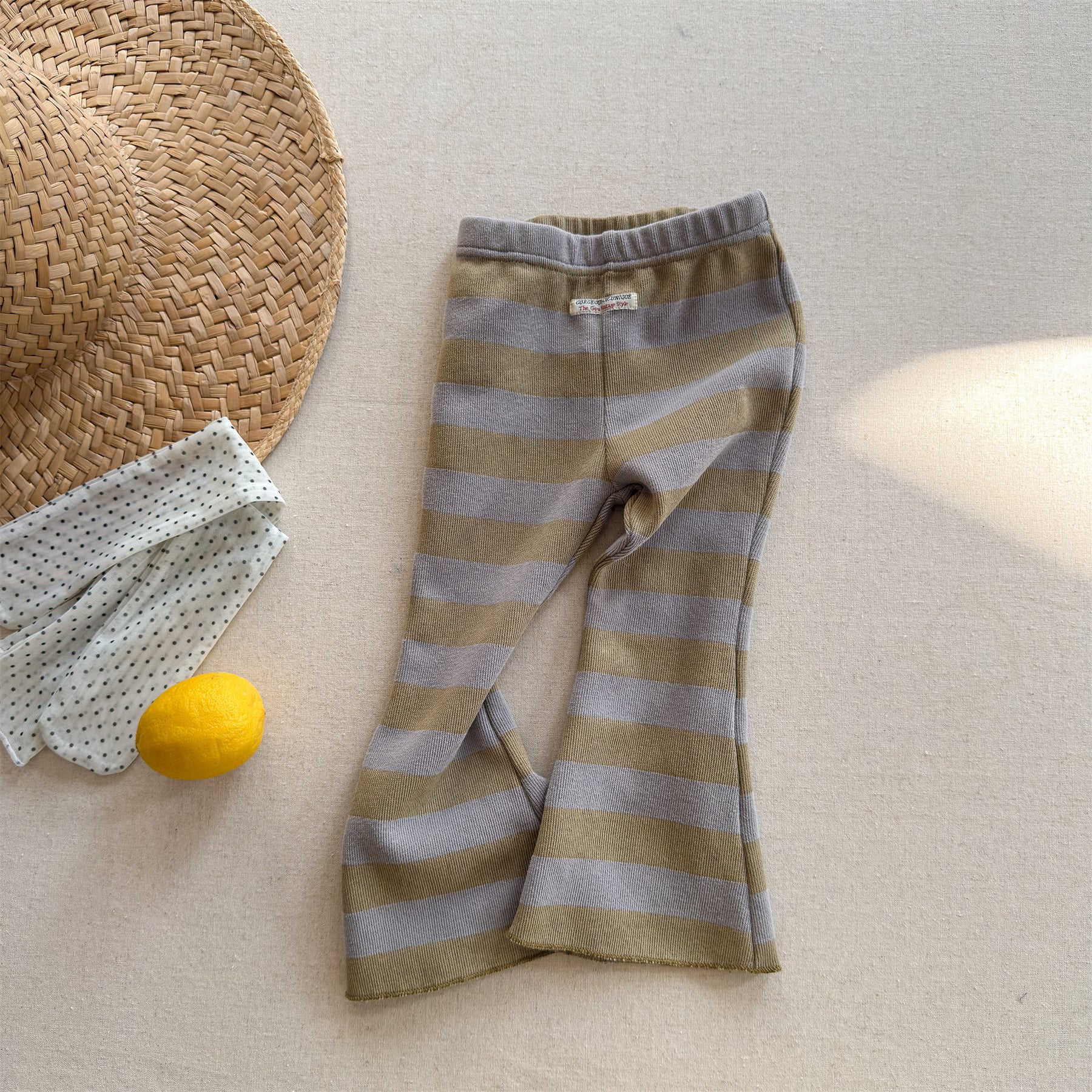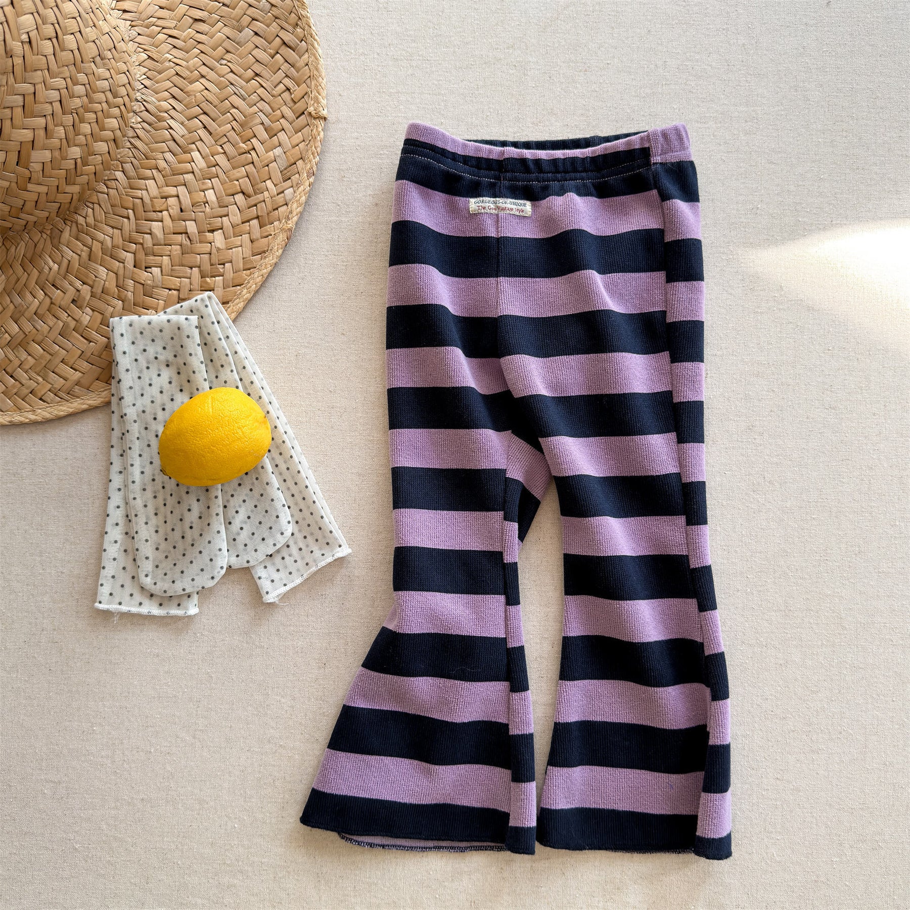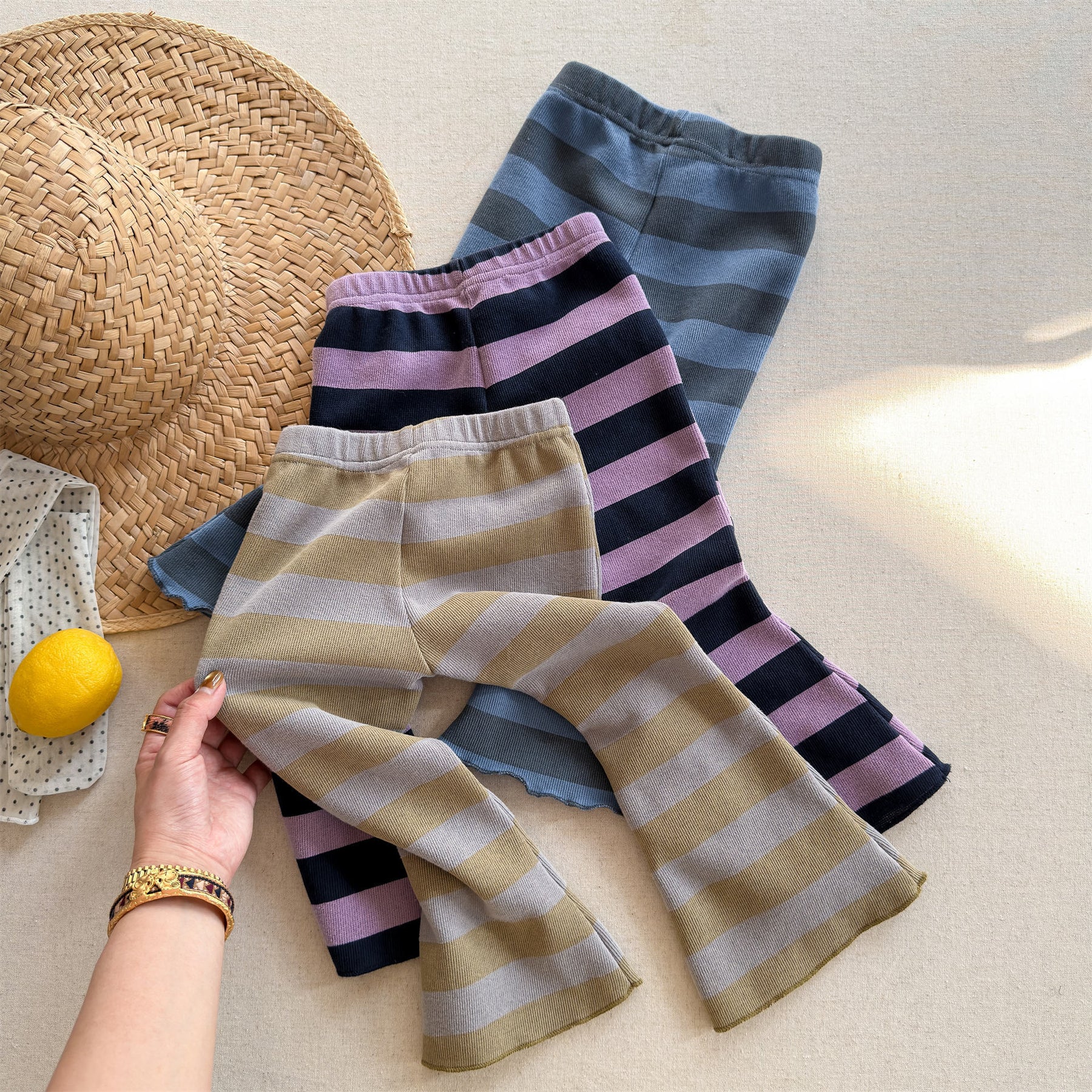 【80-130】太ボーダー柄フレアパンツ