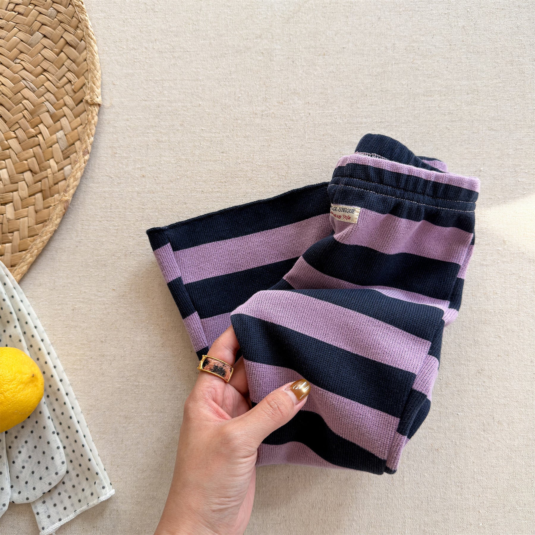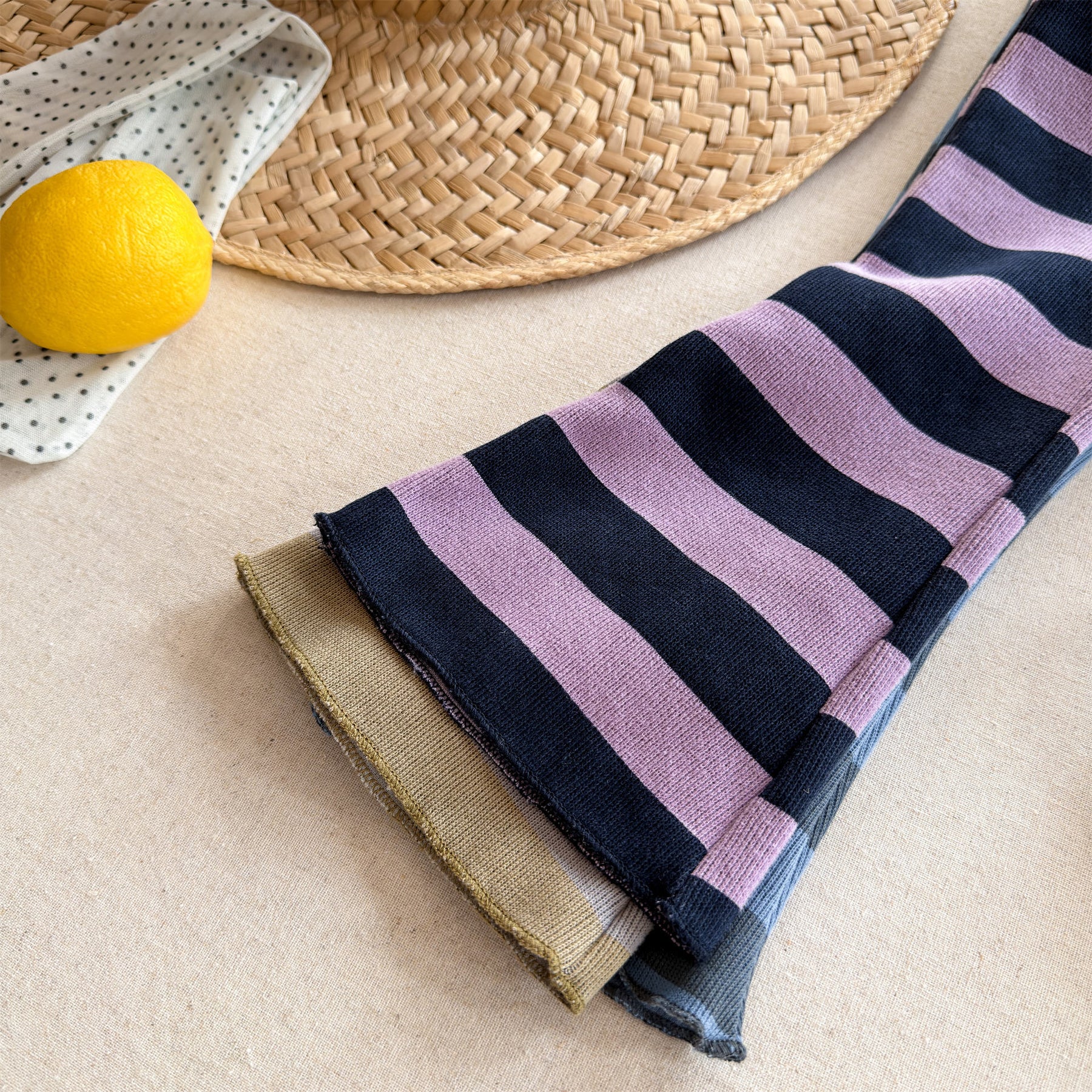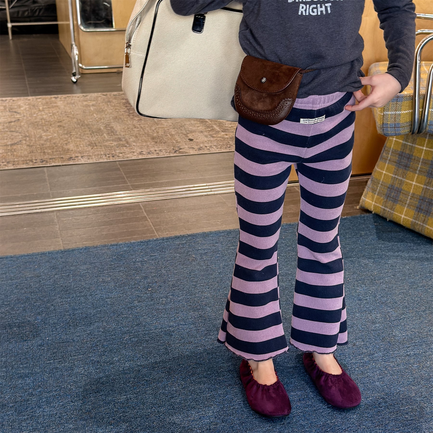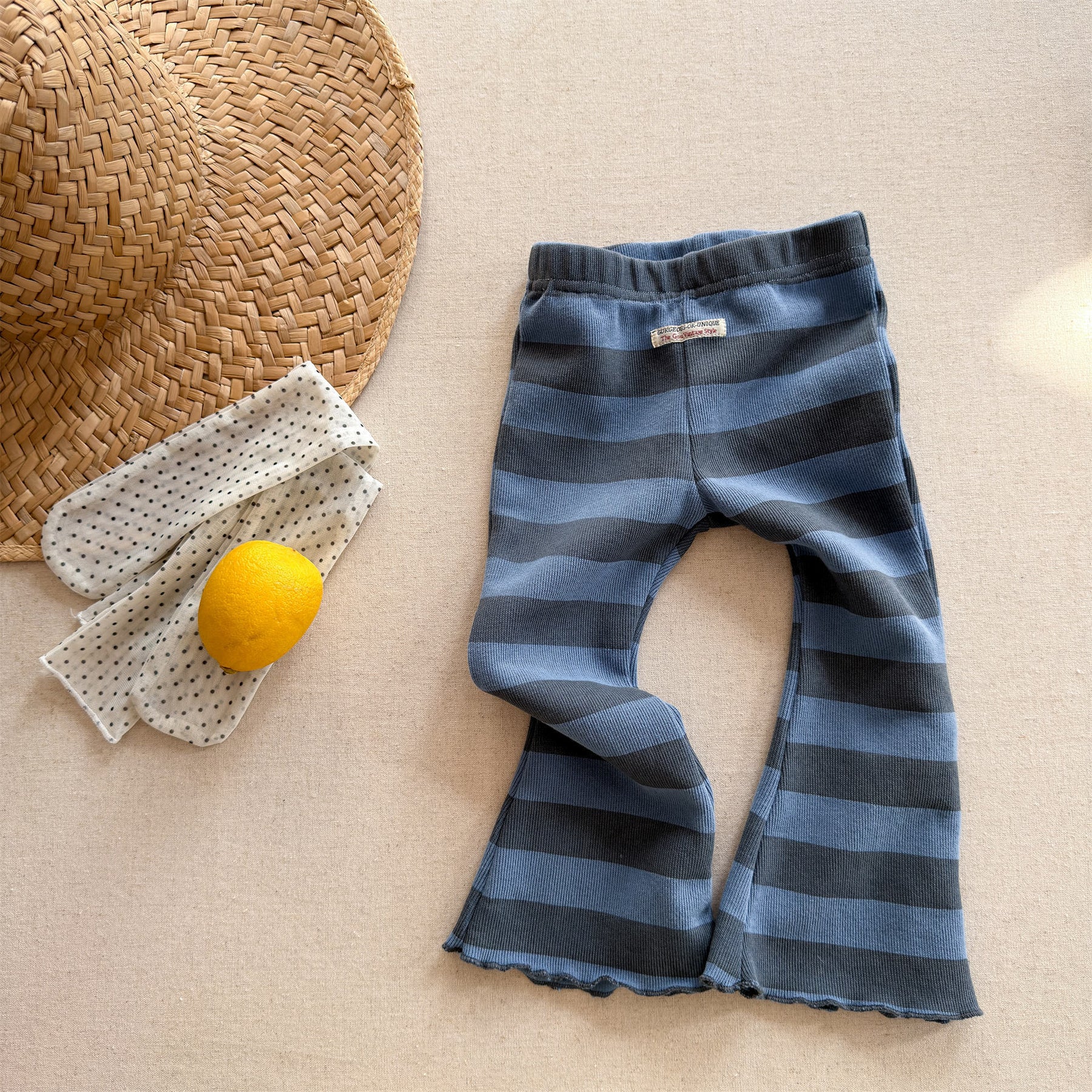 【80-130】太ボーダー柄フレアパンツ
