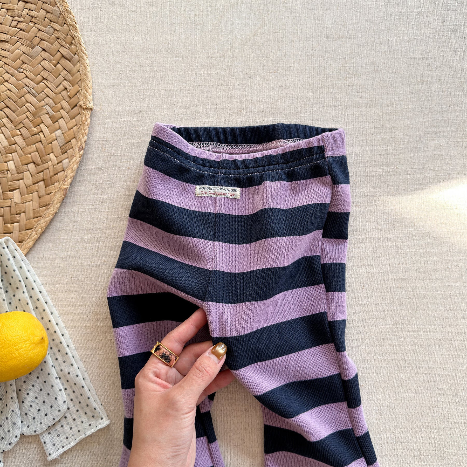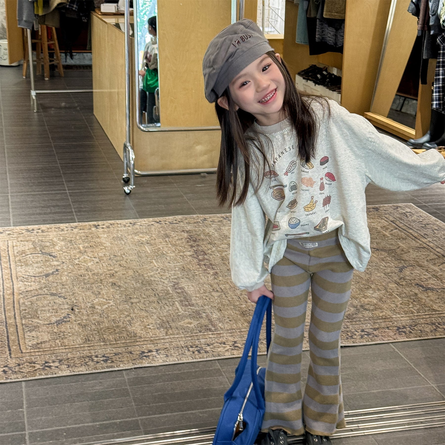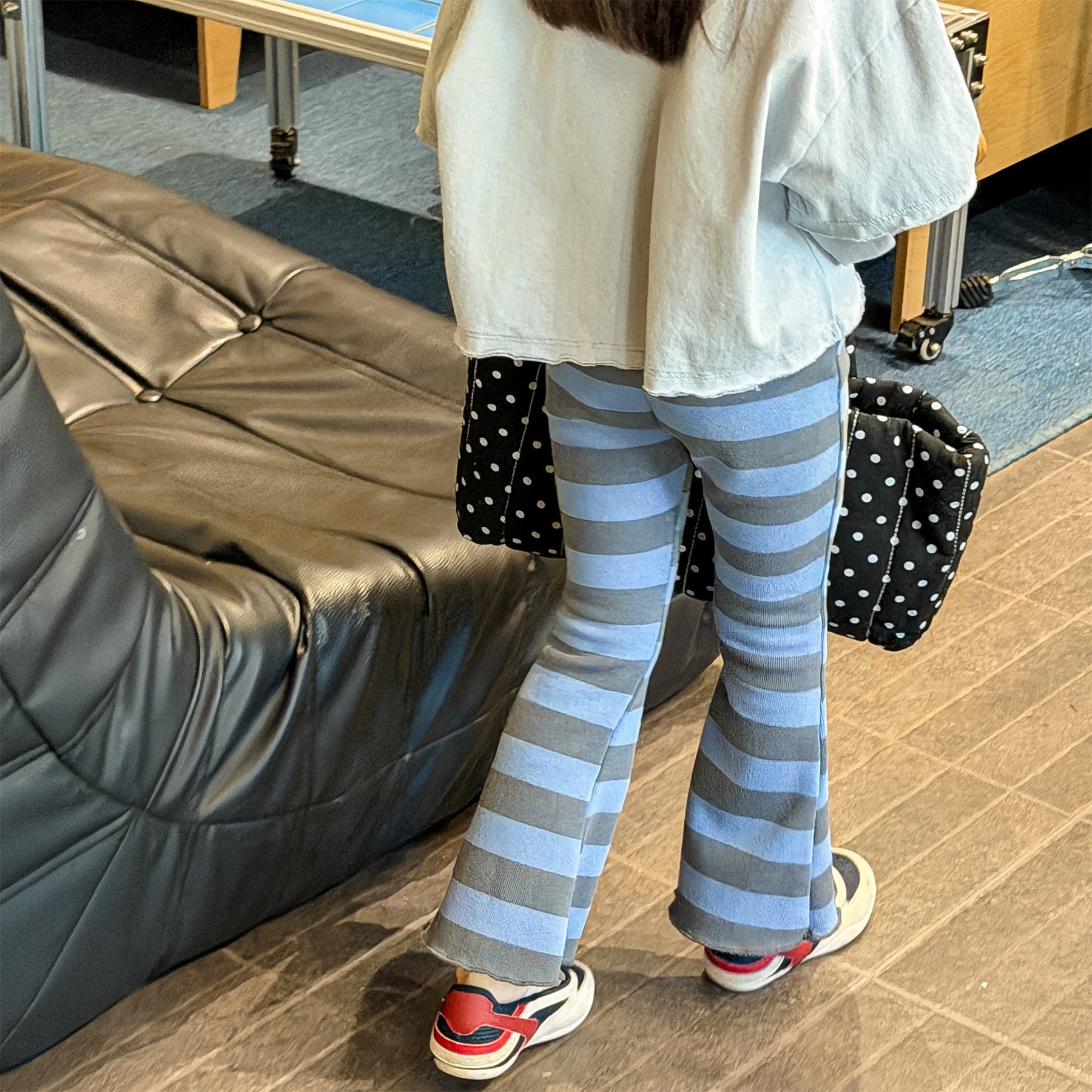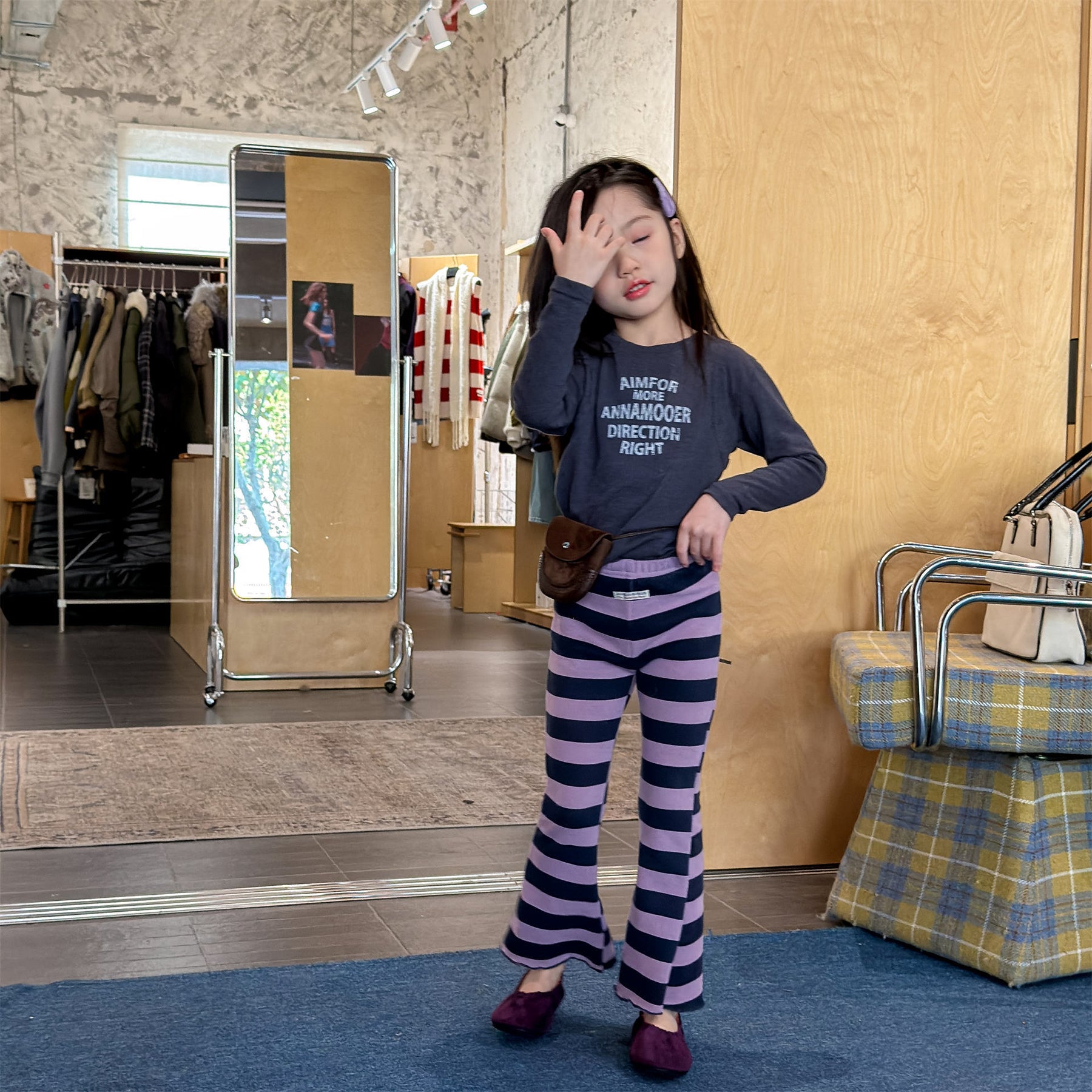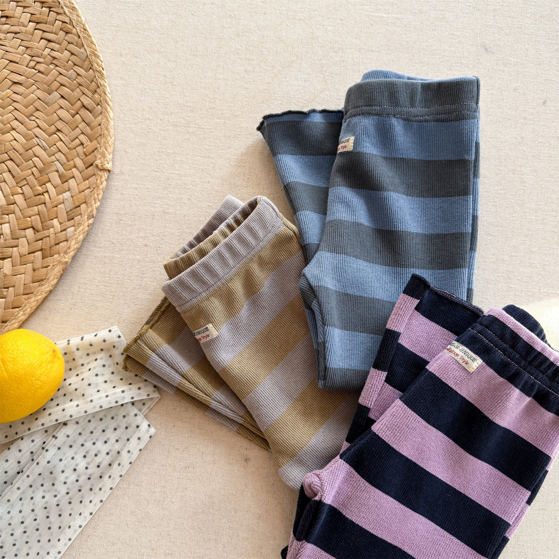 【80-130】太ボーダー柄フレアパンツ