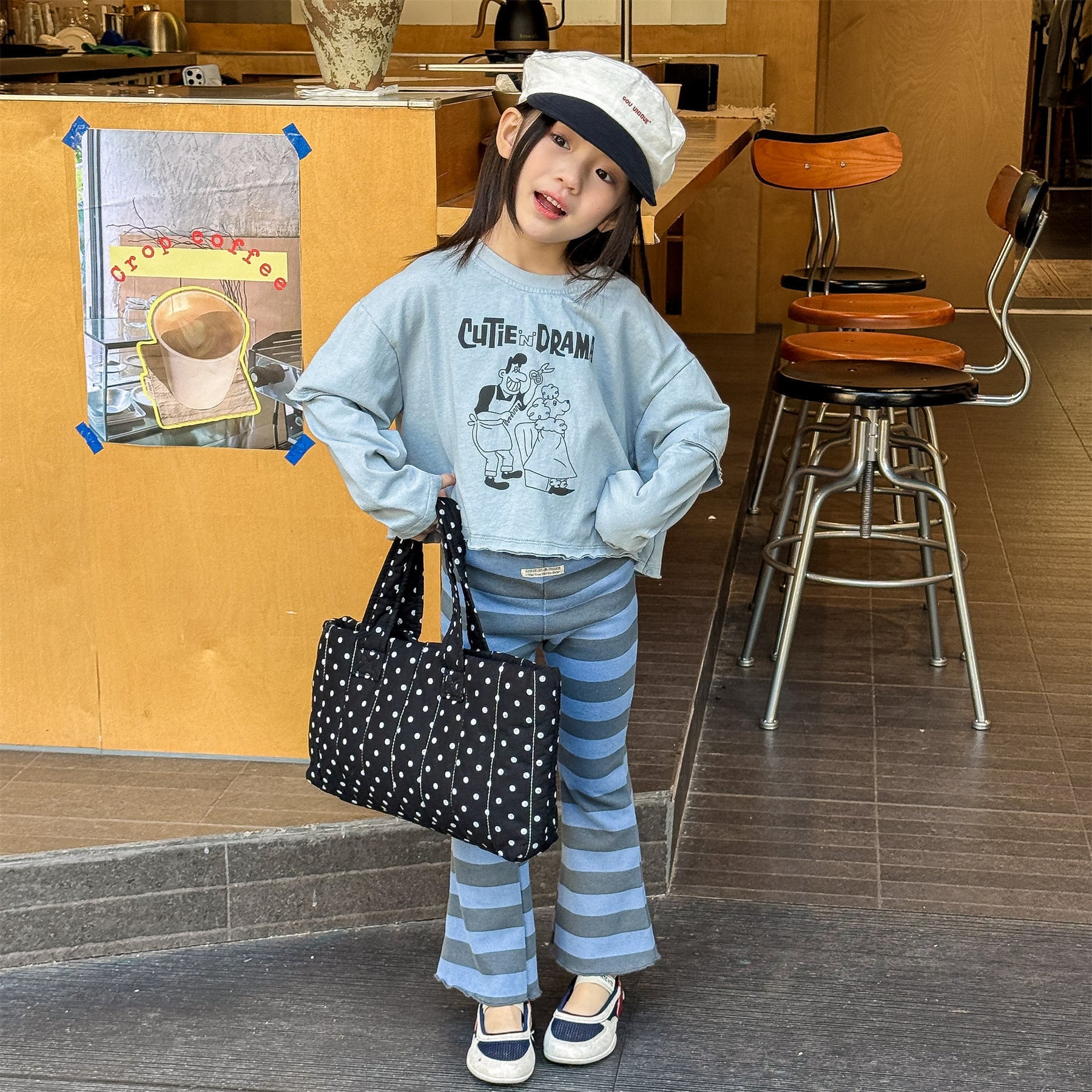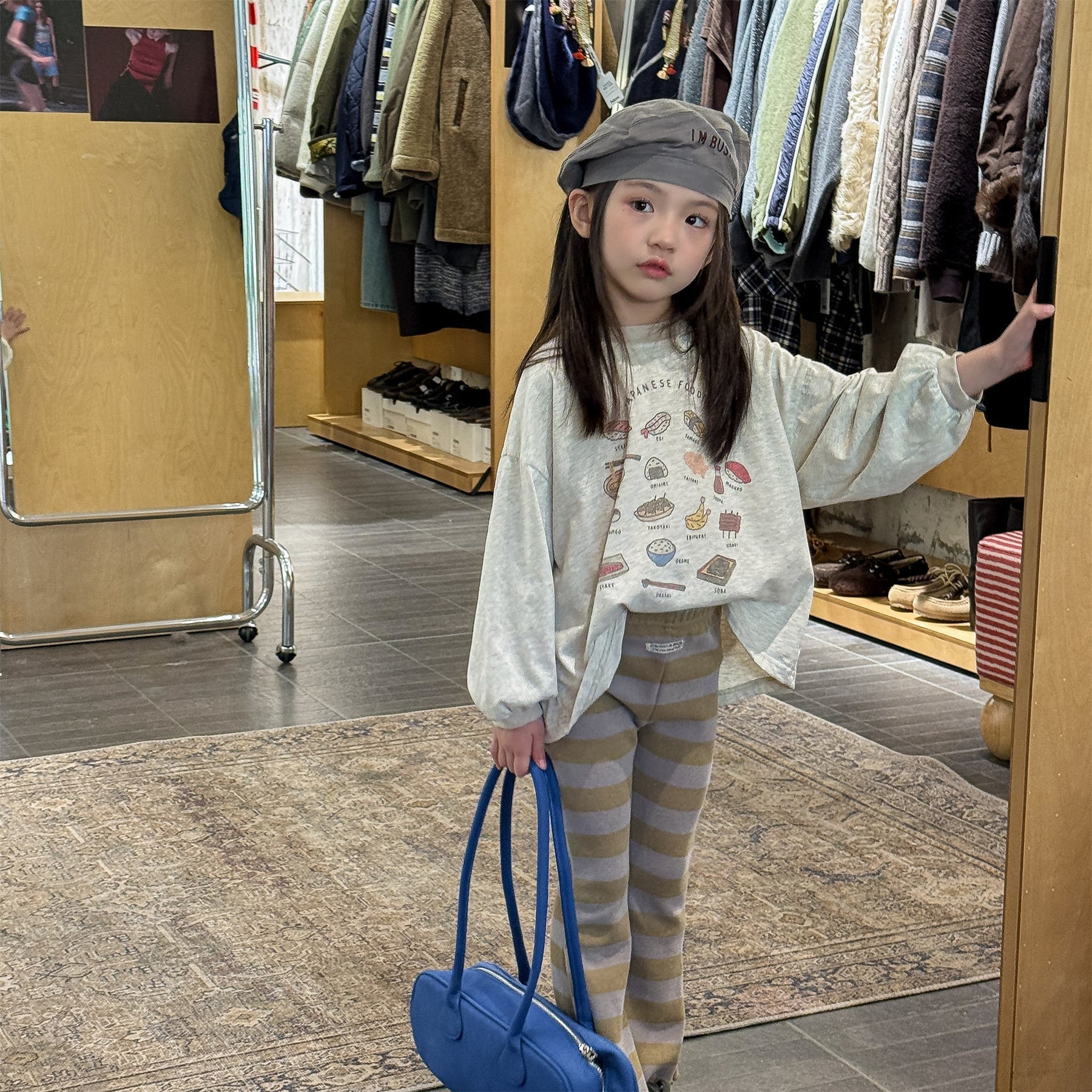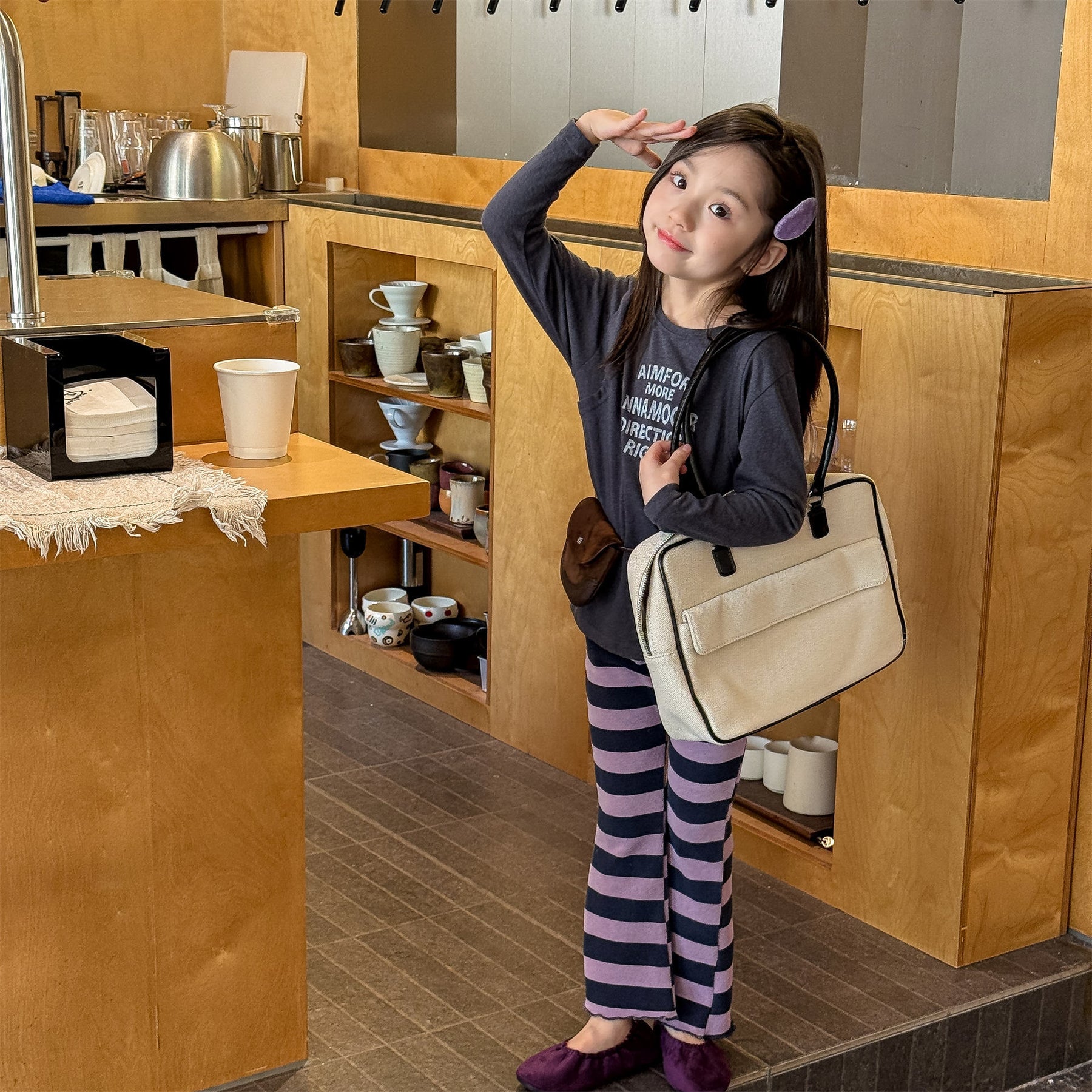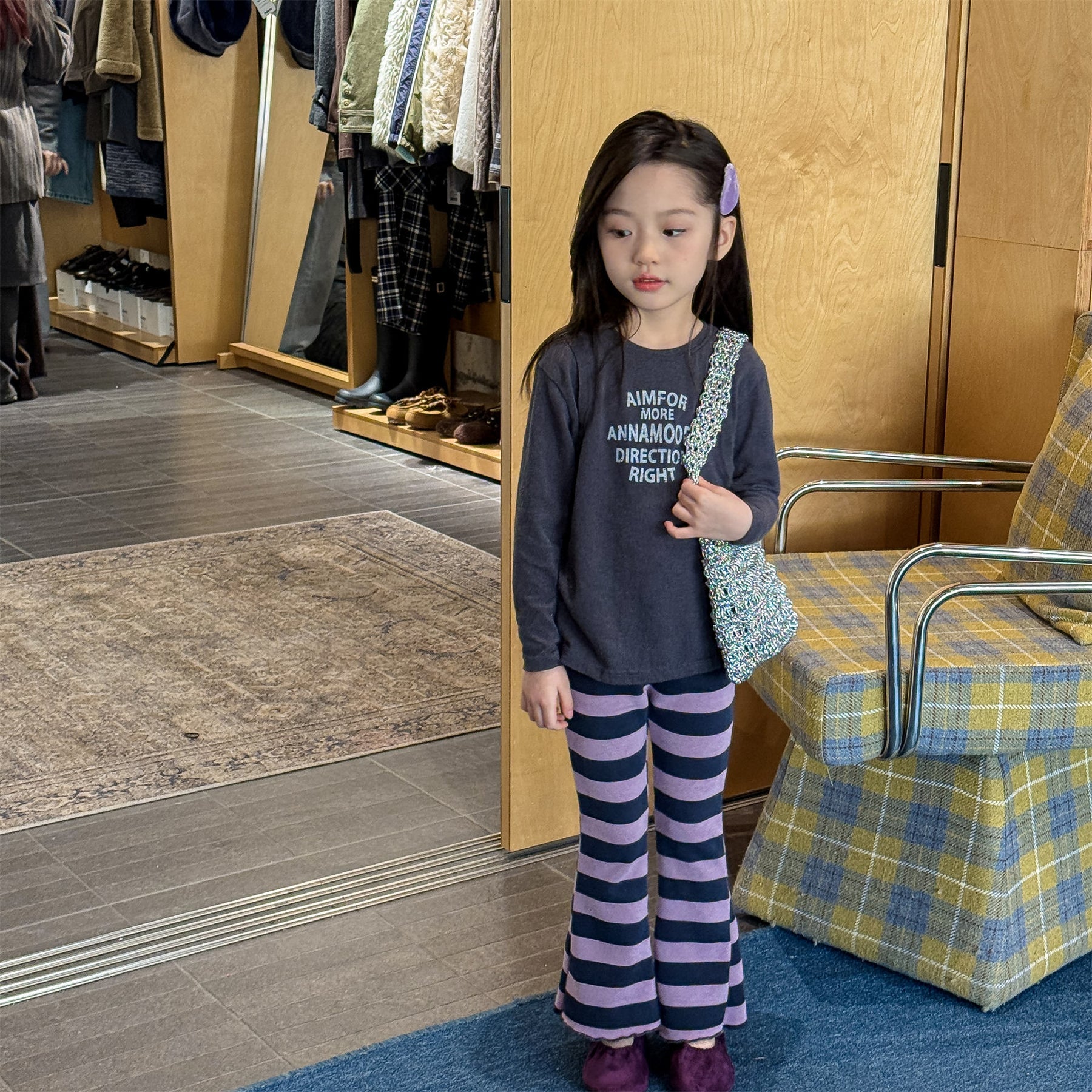 【80-130】太ボーダー柄フレアパンツ