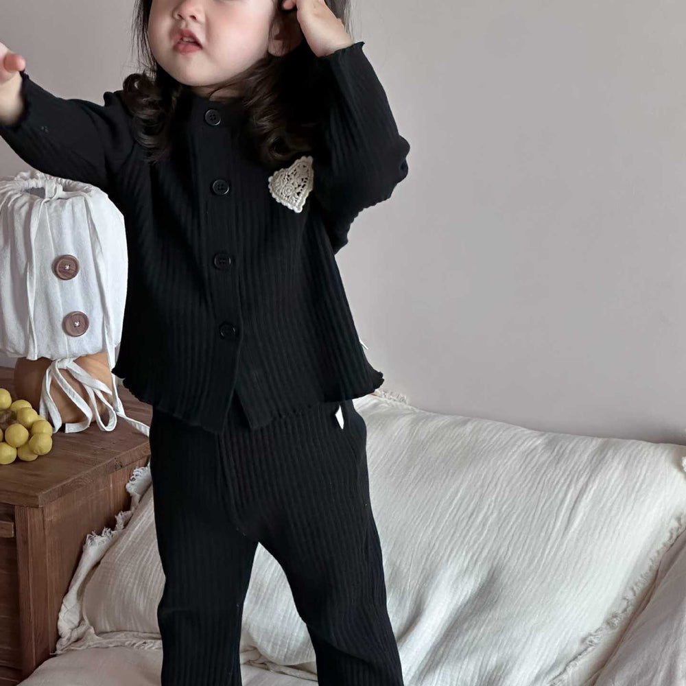 【73-110】ワンポイントハードリブカーディガン×ロングパンツセット
