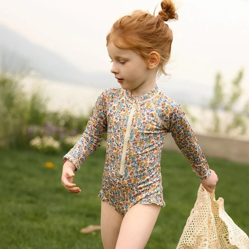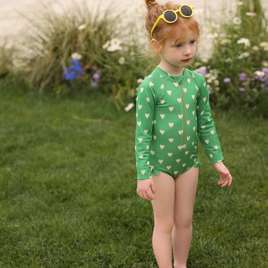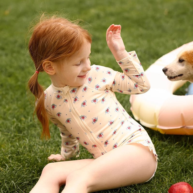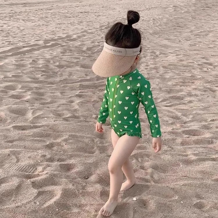 【90-150】フロントジップ総柄スイムウェア