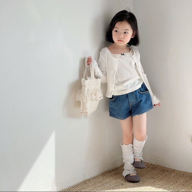 【80-130】フリルヘムカーデ×ロングパンツセット