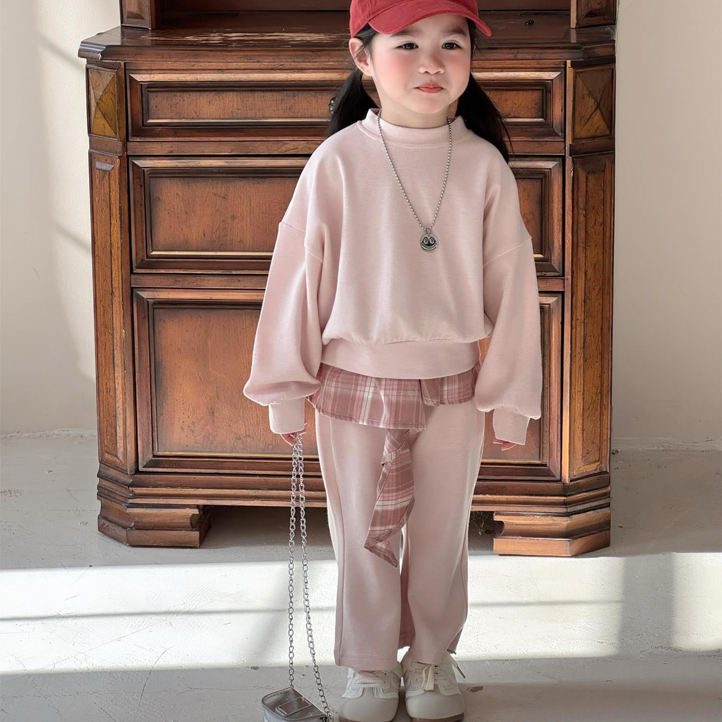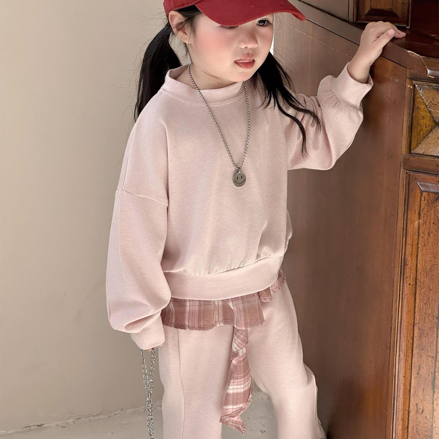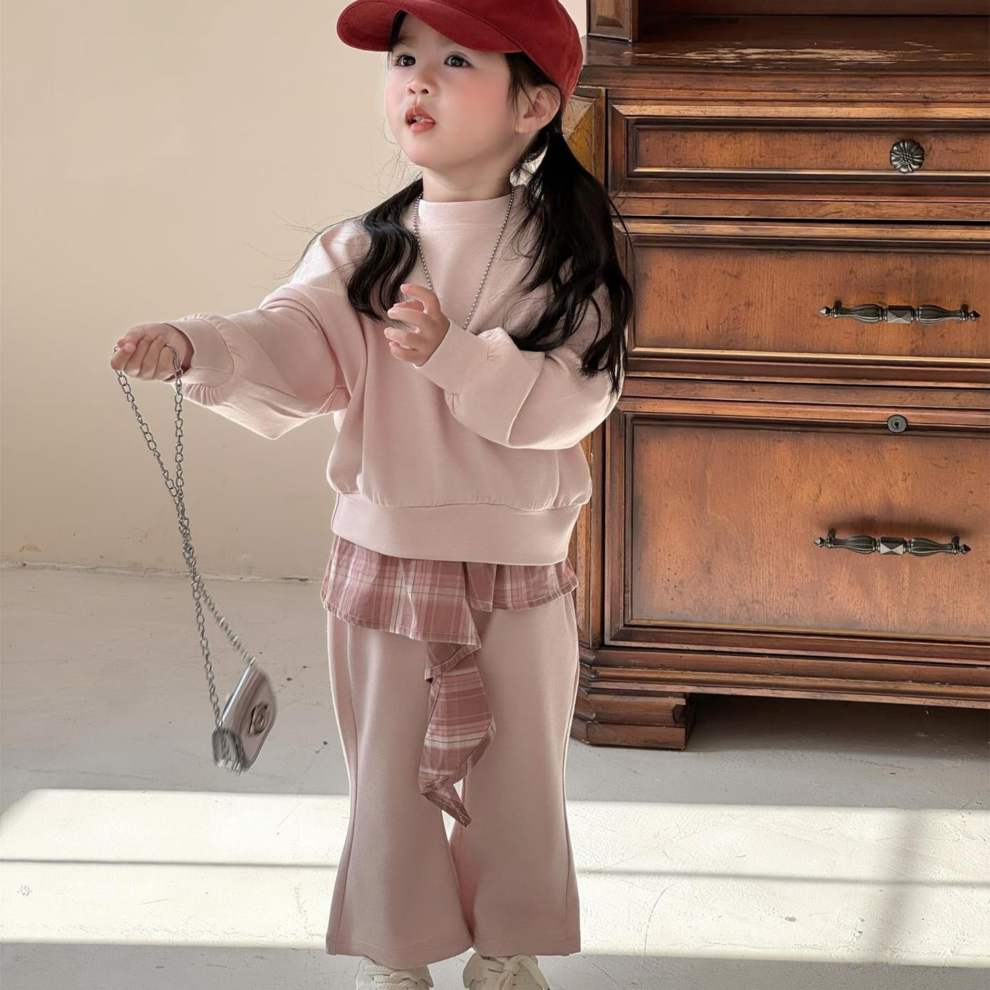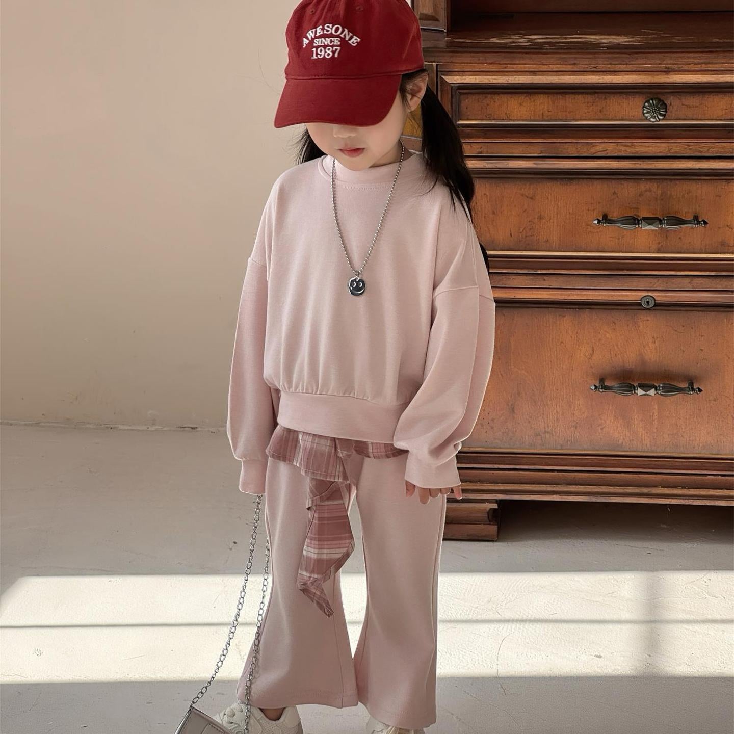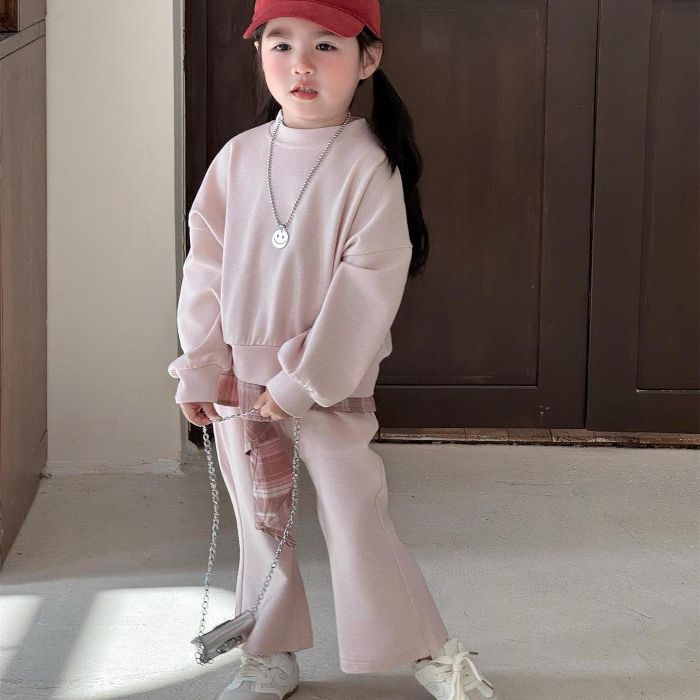 【90-140】レイヤード風トレーナー×フレアパンツセット