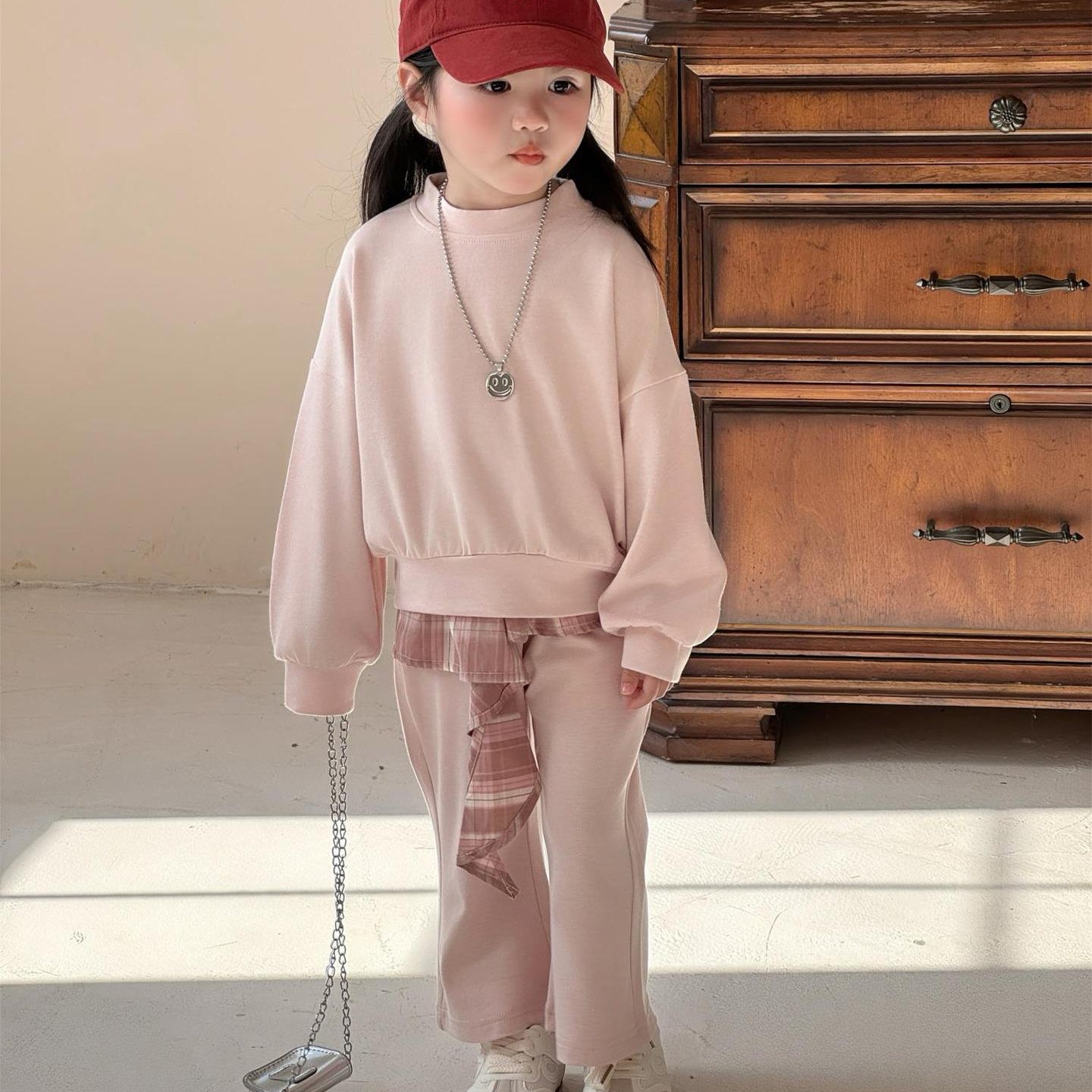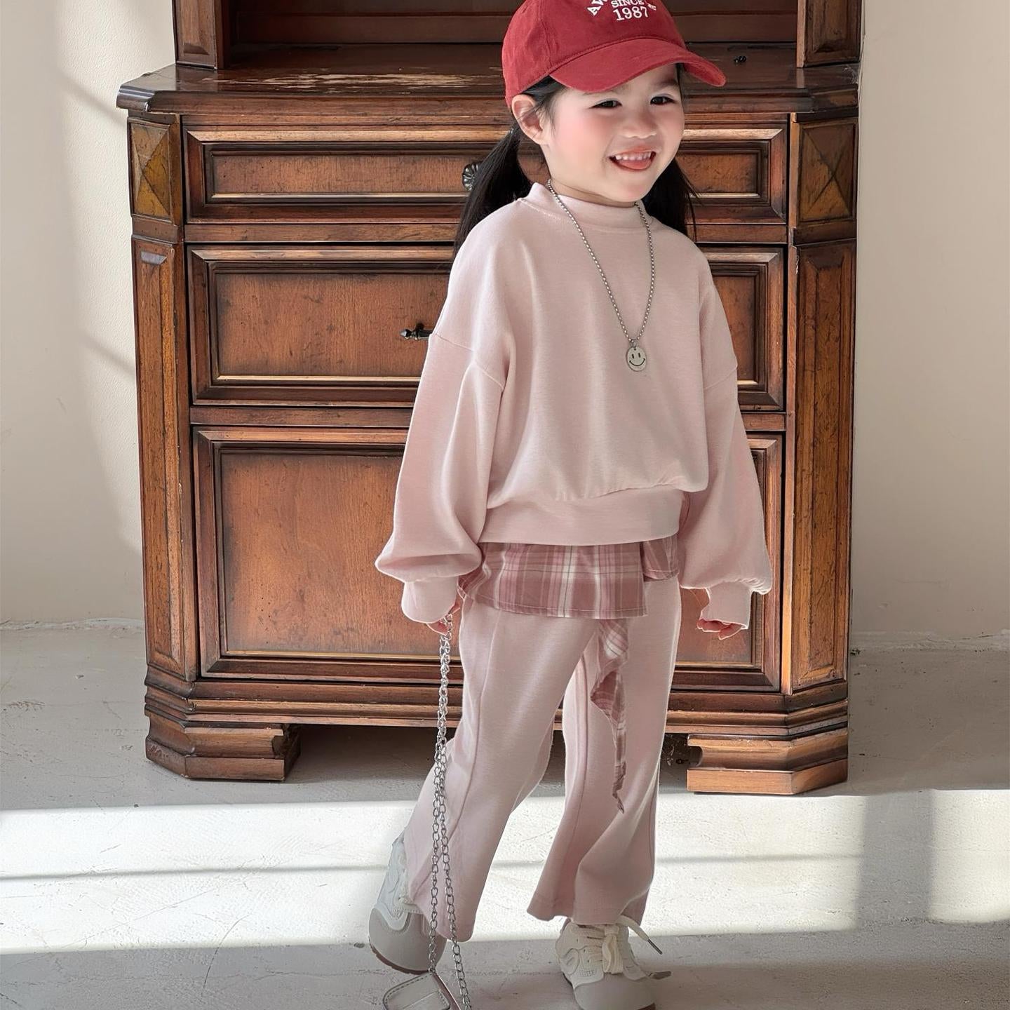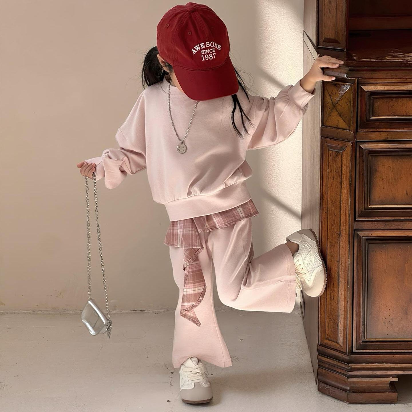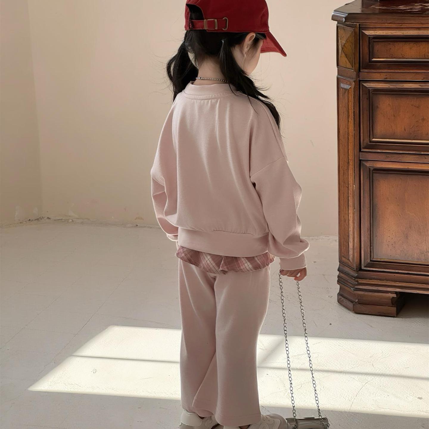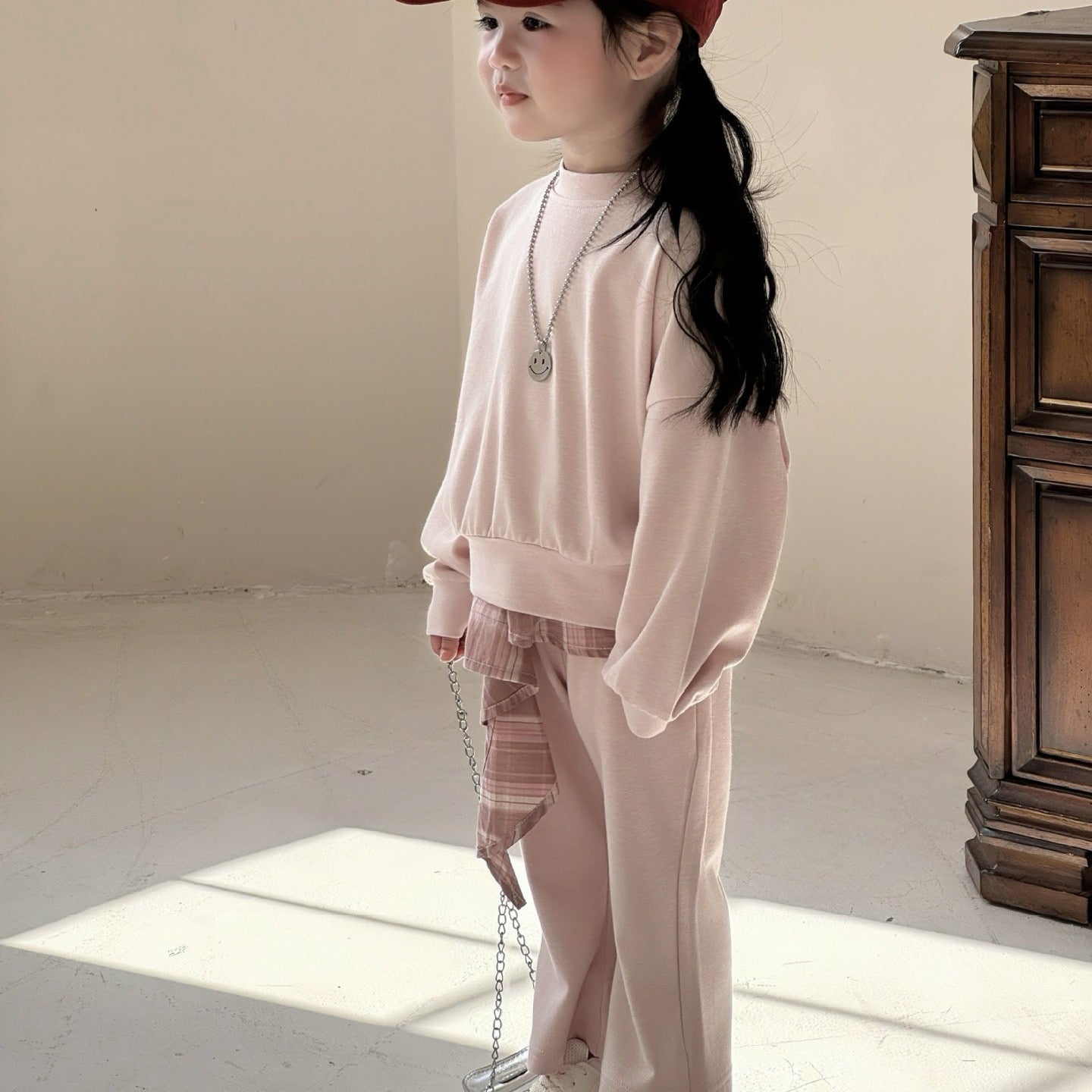【90-140】レイヤード風トレーナー×フレアパンツセット