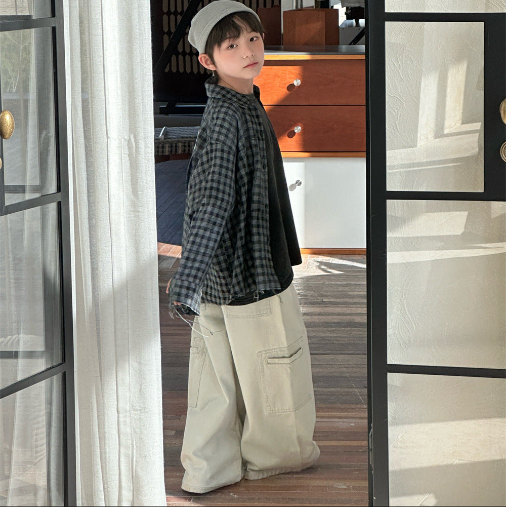 【90-140】シンプルチェック柄シャツ