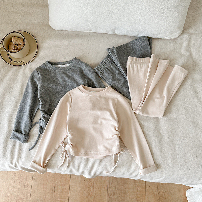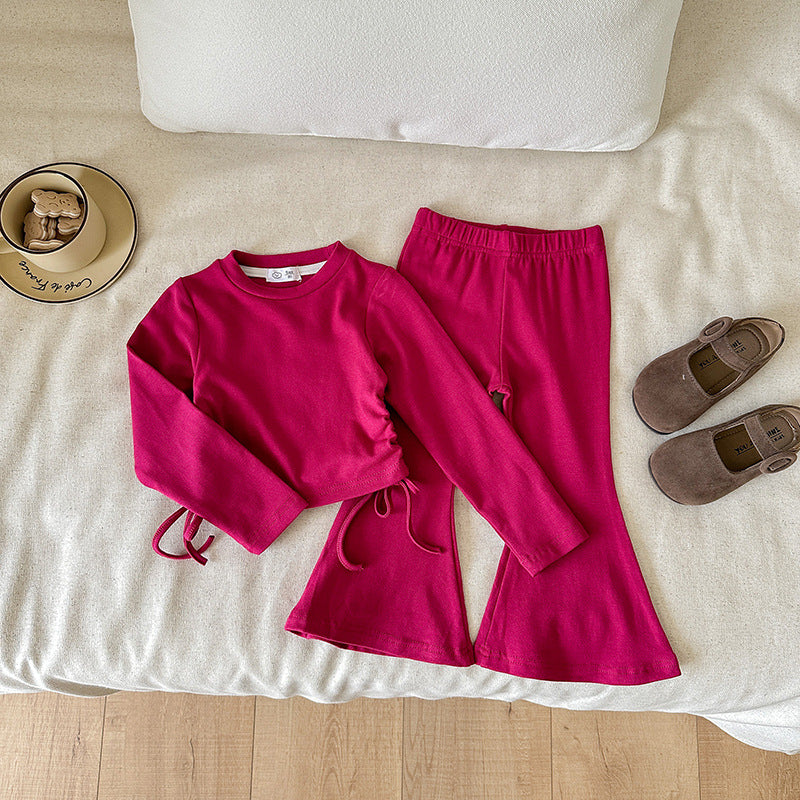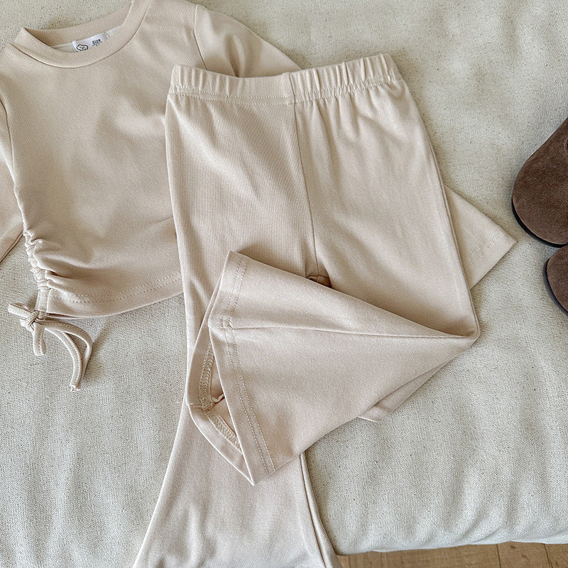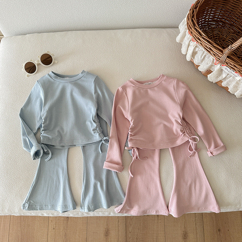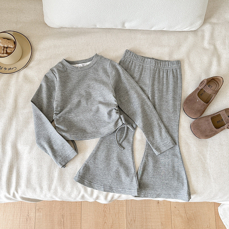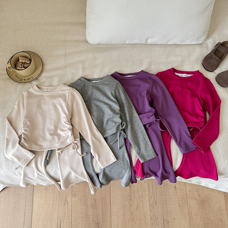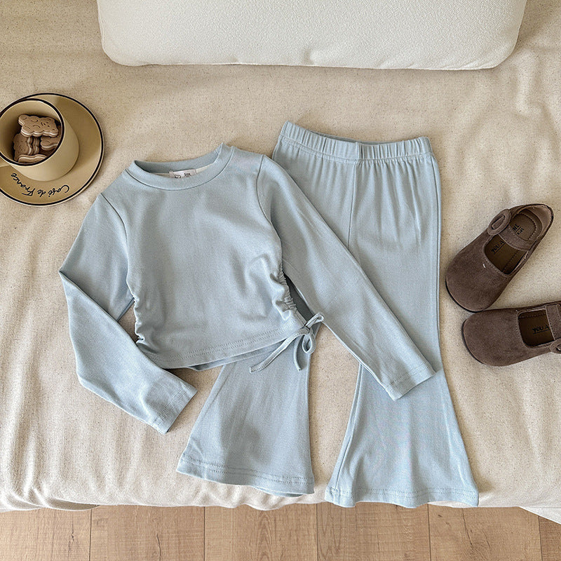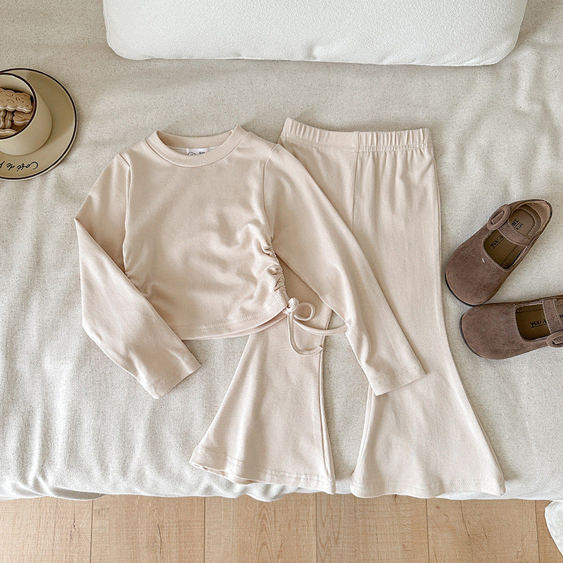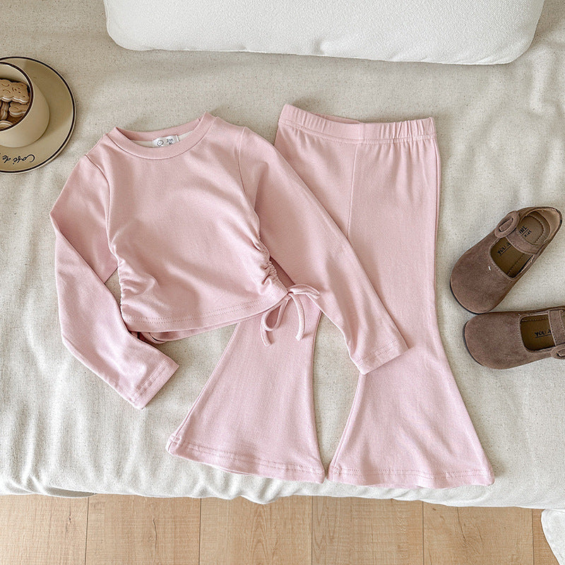 【90-140】ウエストシャーリングトップス×フレアパンツセット