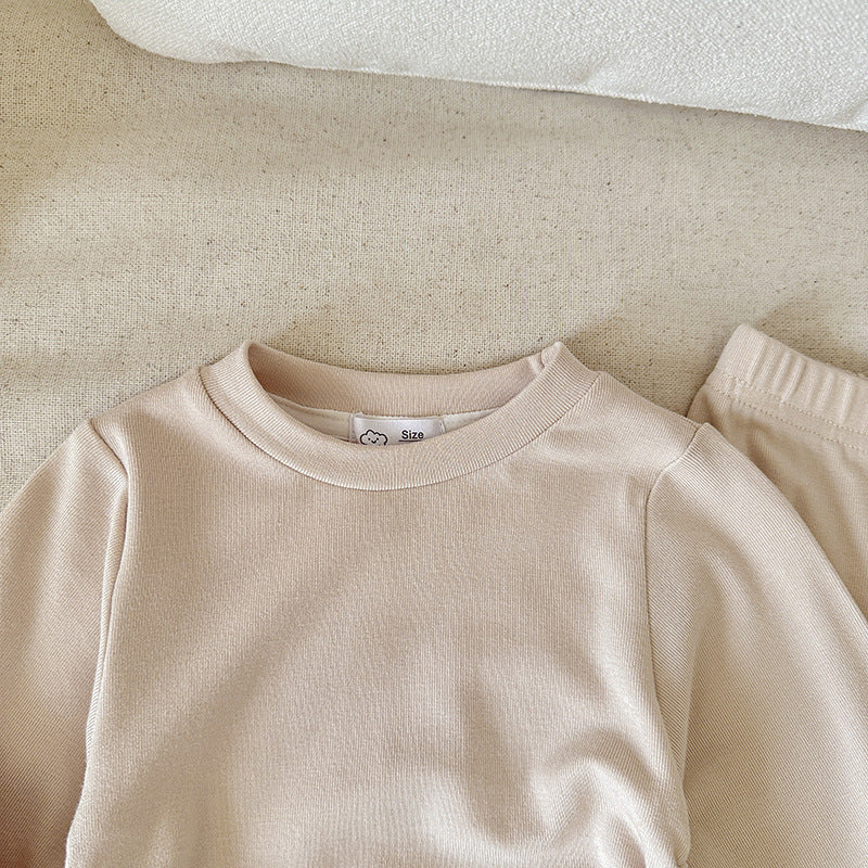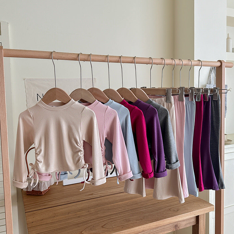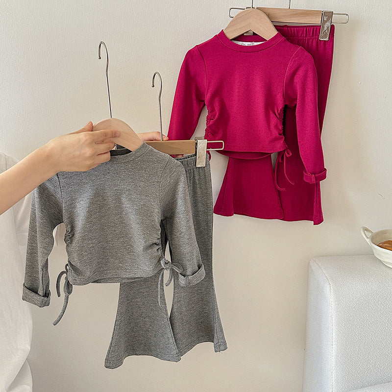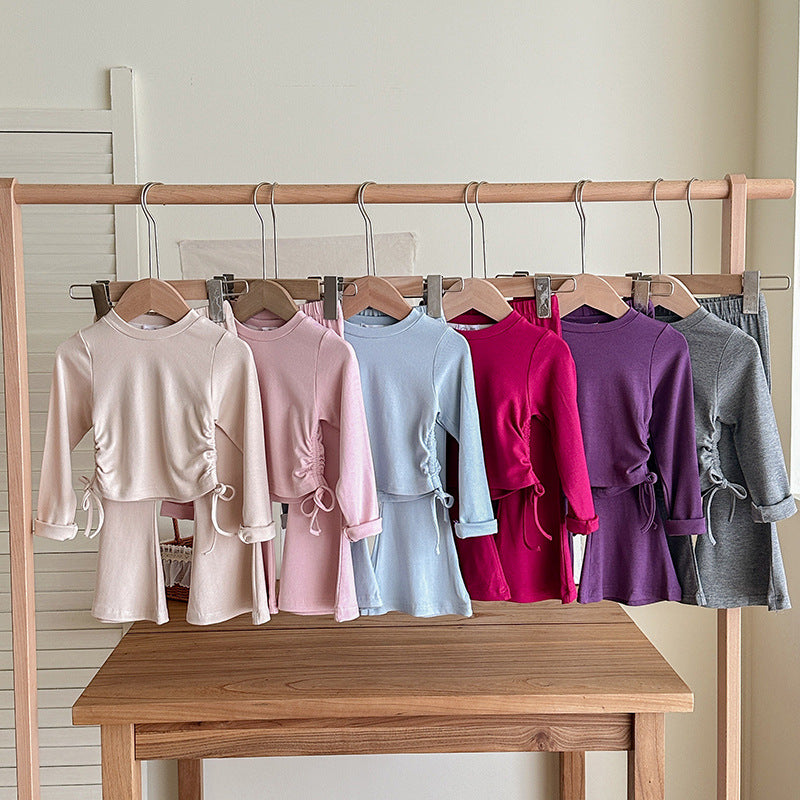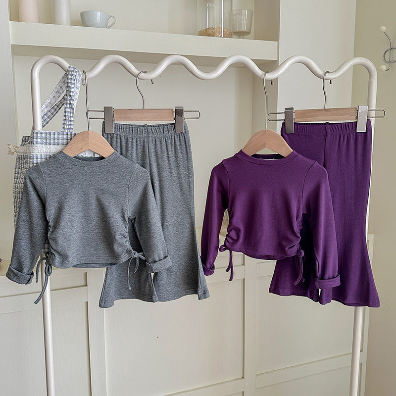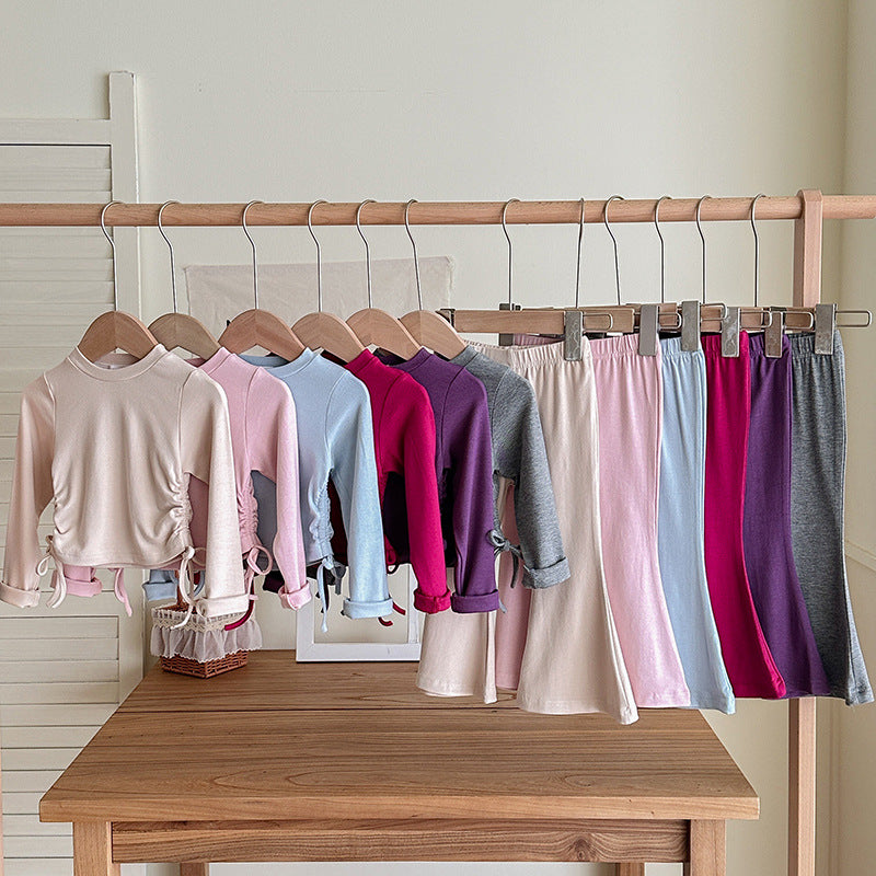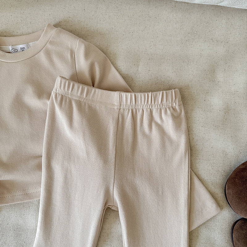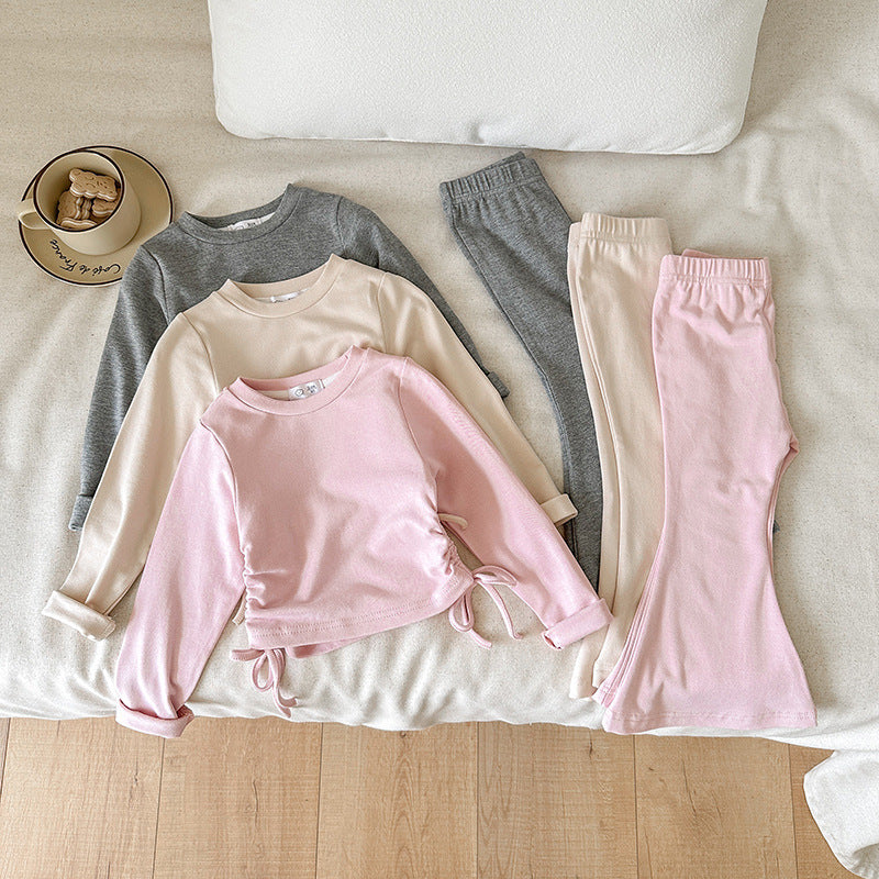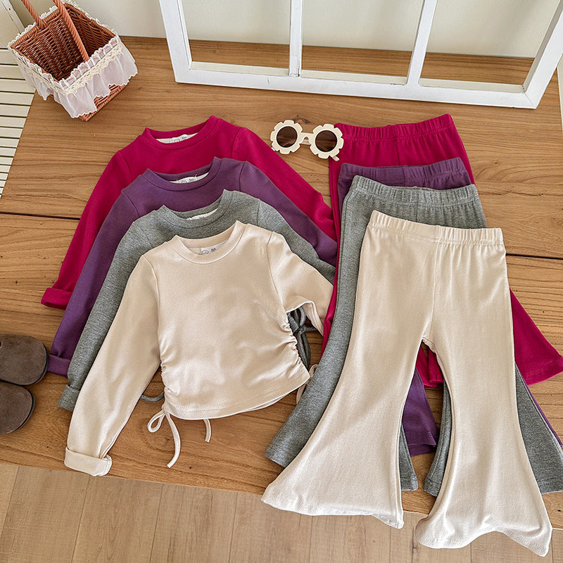 【90-140】ウエストシャーリングトップス×フレアパンツセット