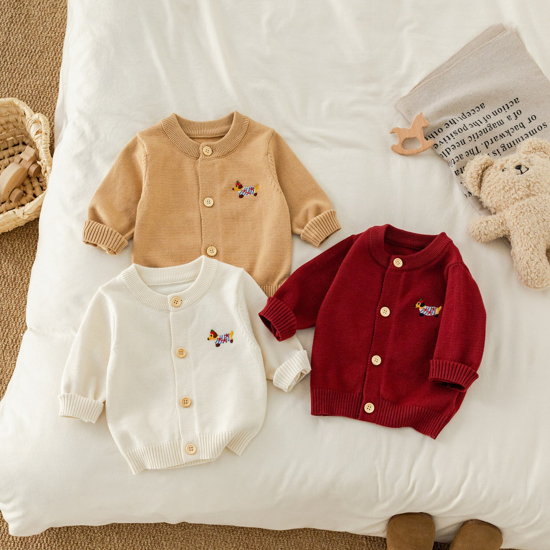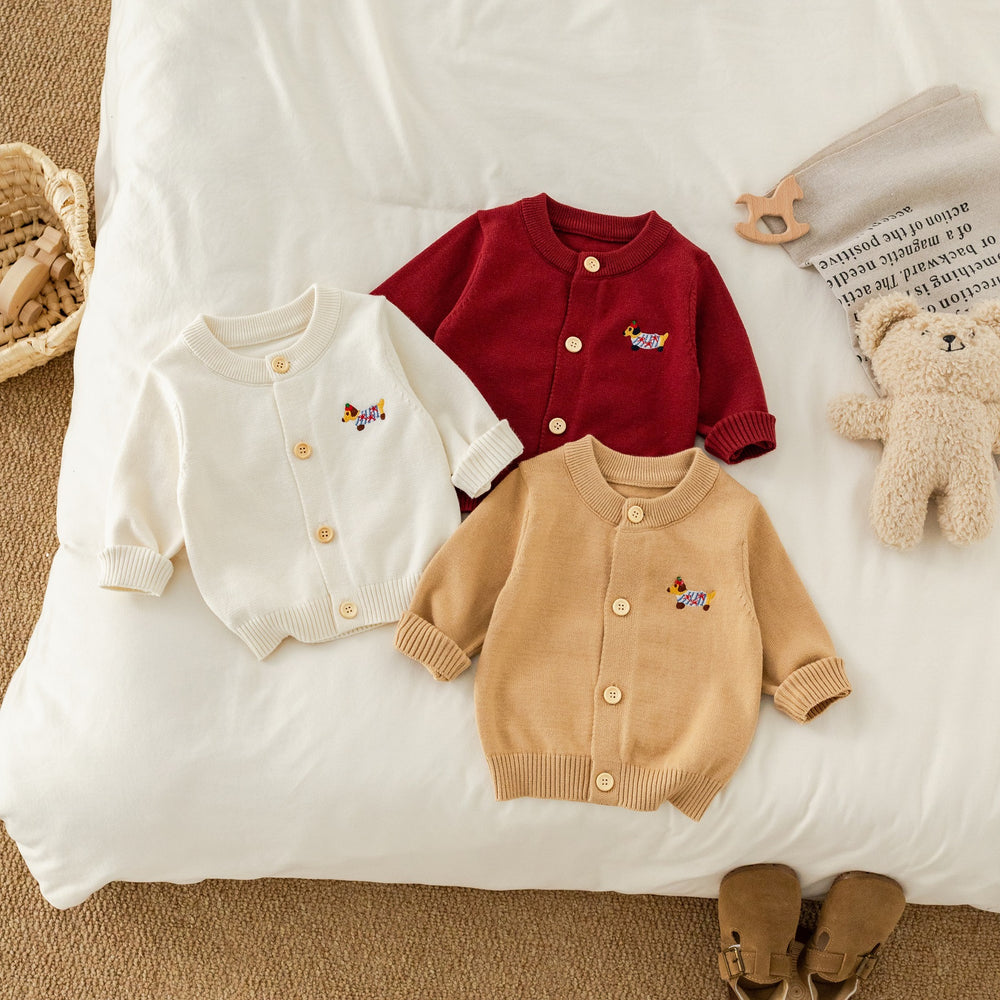 【73-100】ワンポイント刺繍ニットカーディガン