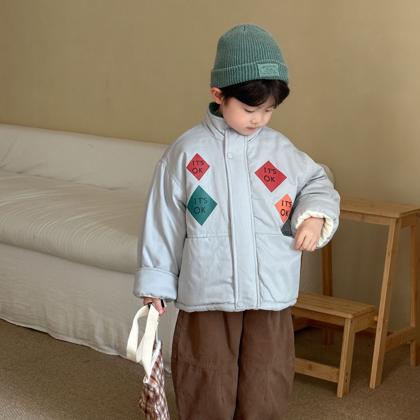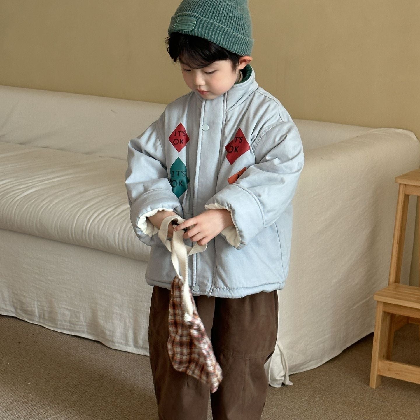 • 多少の仕様変更(ボタンのデザインやステッチカラーの変更など)や、品質にばらつきがある事がございます。ご了承の上、お買い求めくださいますようお願いいたします。