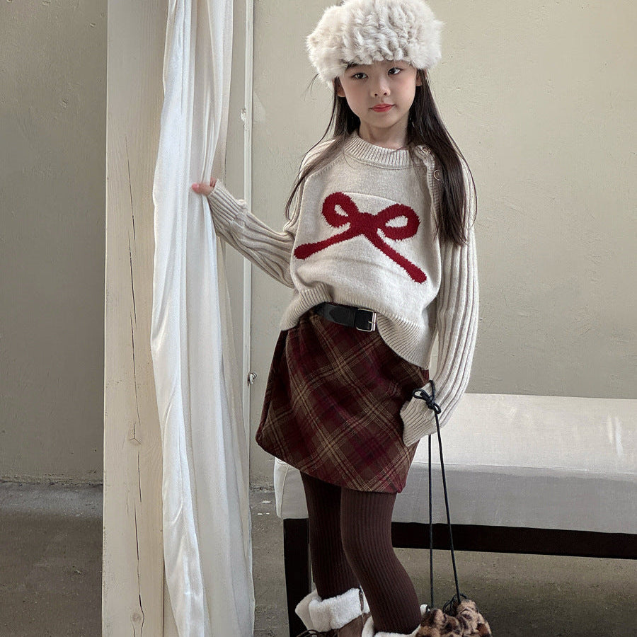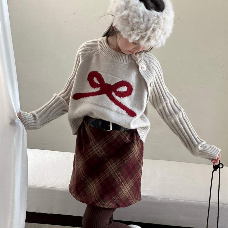 【90-150】ショルダーボタンニットトップス