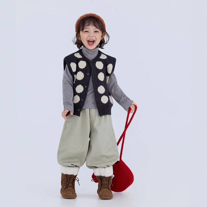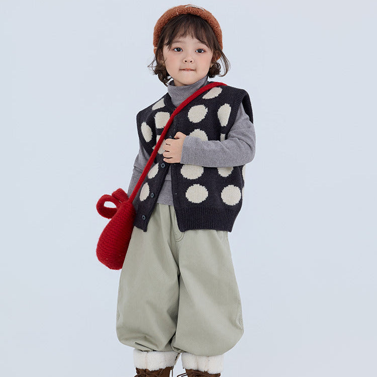【90-150】ビッグドット柄ニットベスト
