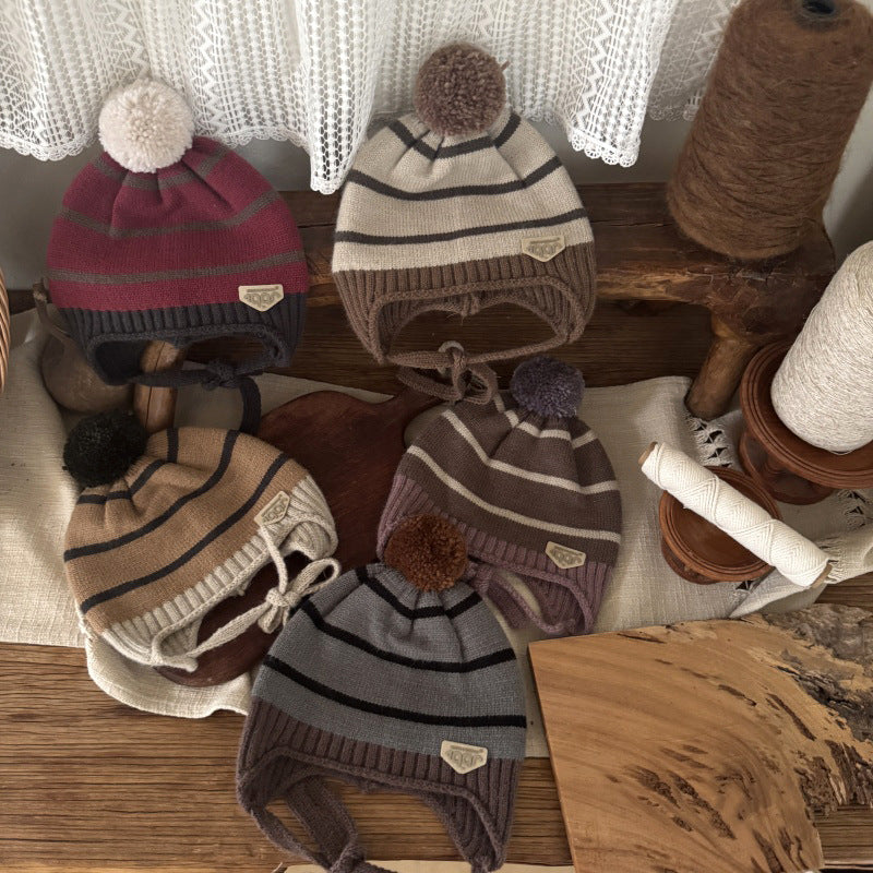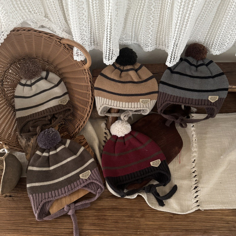 【48-52cm】あご紐付きボーダーニット帽