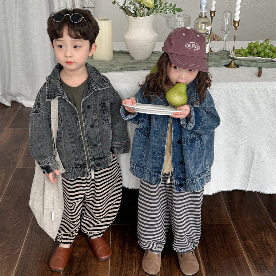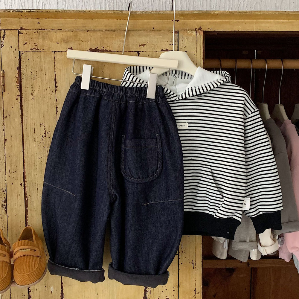 【90-140】ラインデザインボールデニムパンツ