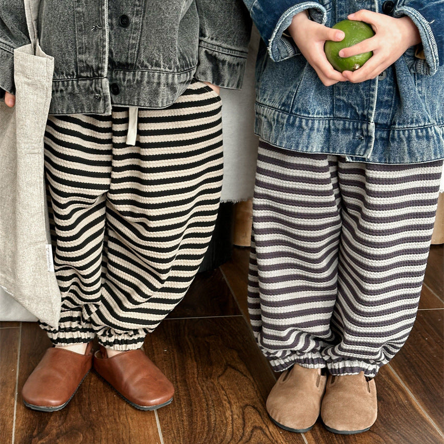 【80-140】ボーダー柄リラックスパンツ