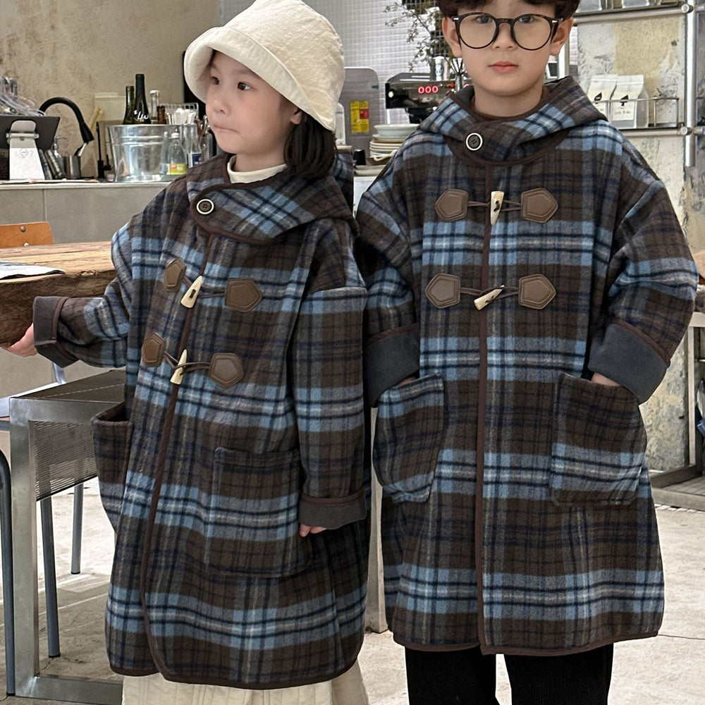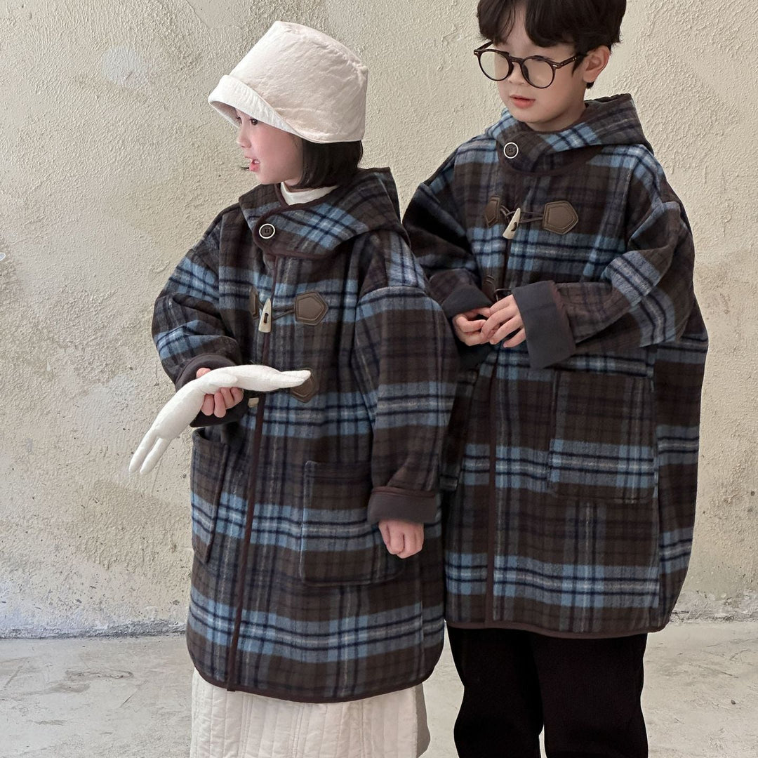 【90-150】チェック柄ミドル丈コート