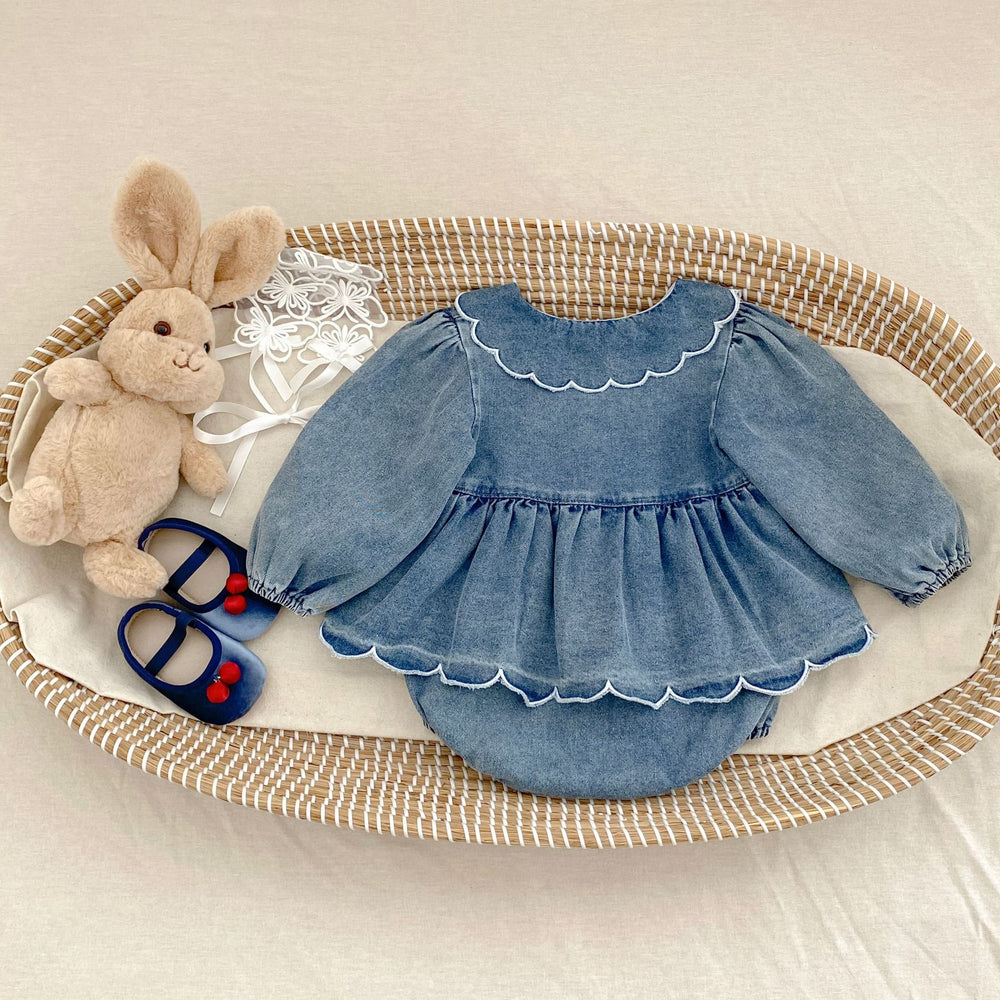 【73-90】スカラップデザイン長袖ロンパース