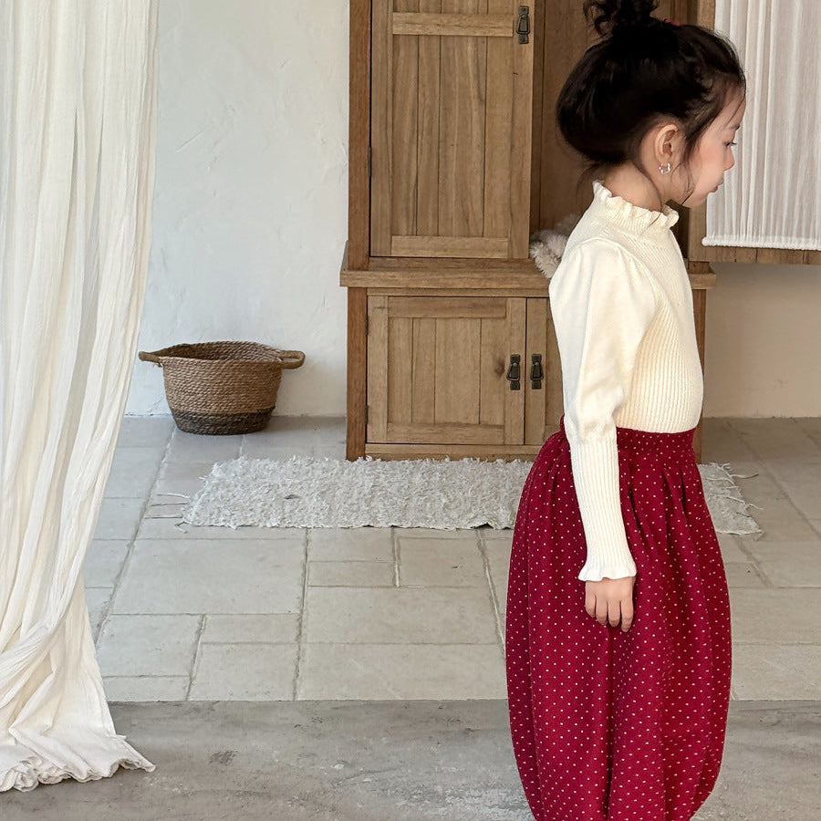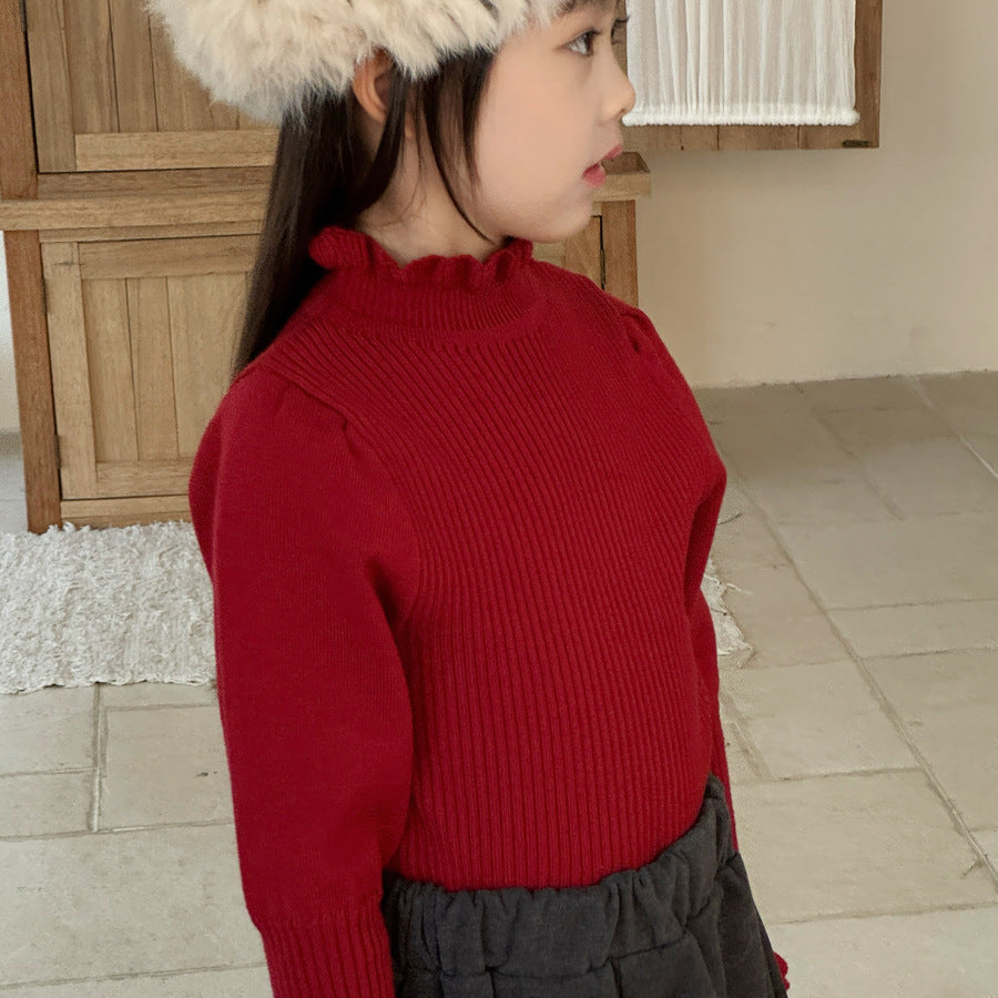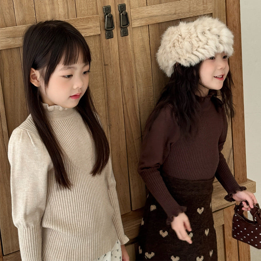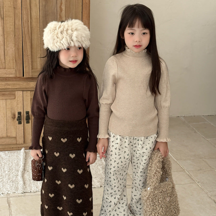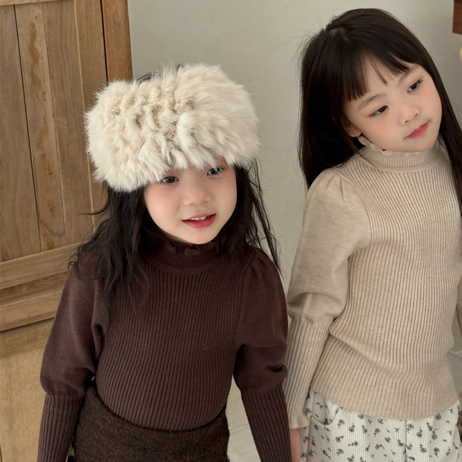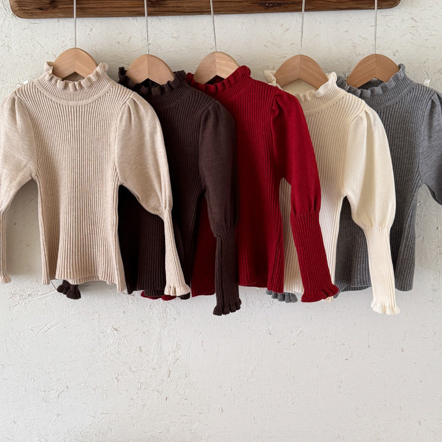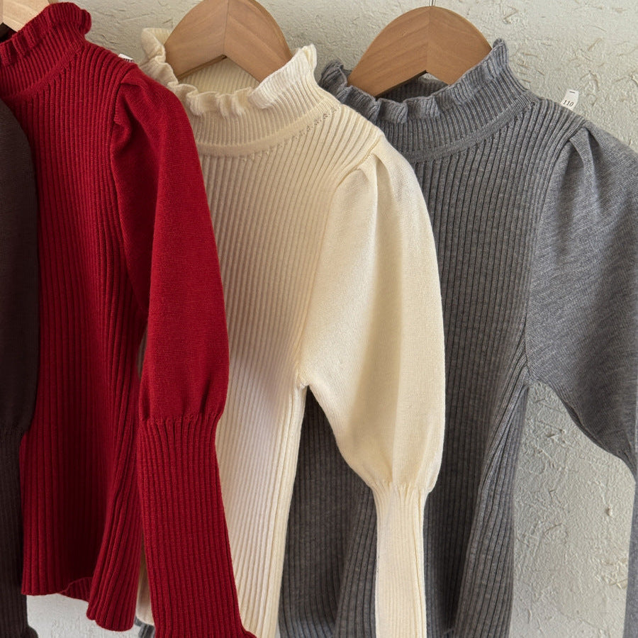 【90-150】パフスリーブハイネックセーター