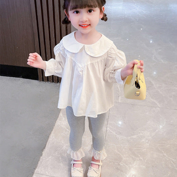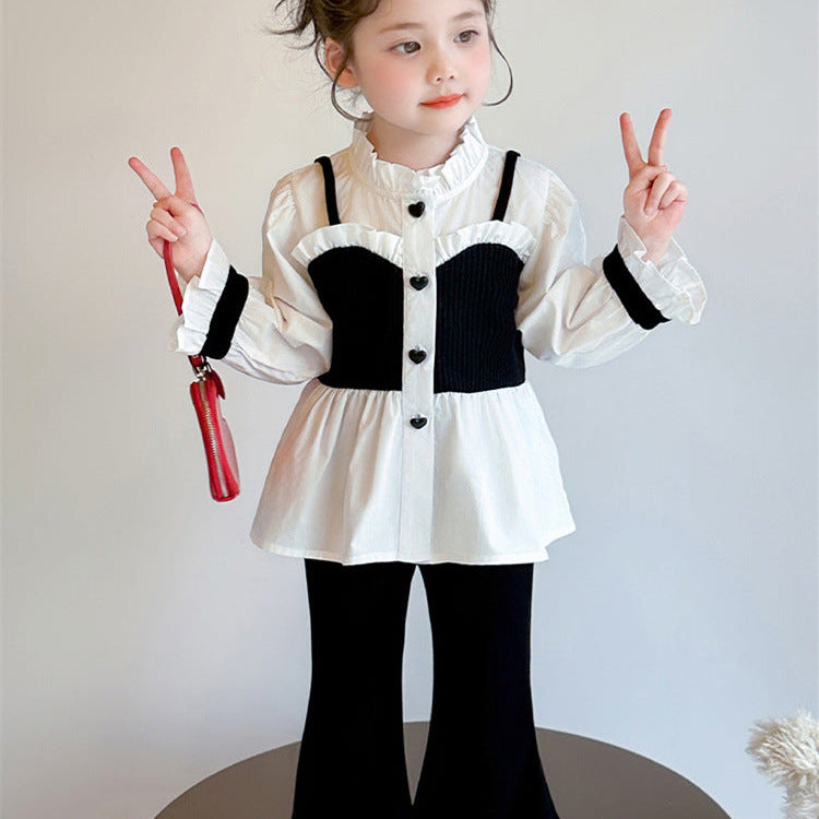 【90-140】レイヤード風シャツ×フレアパンツセット