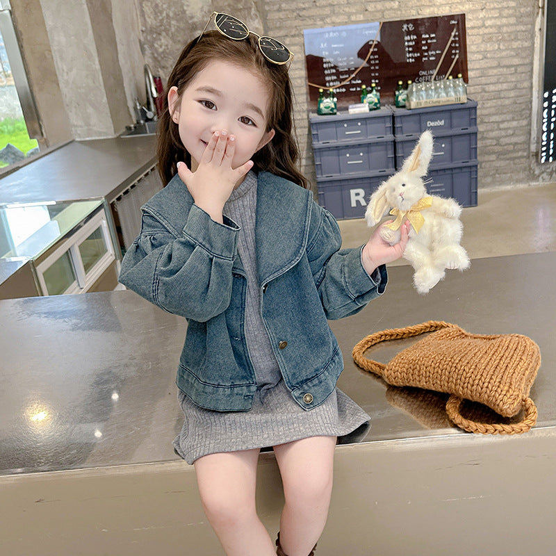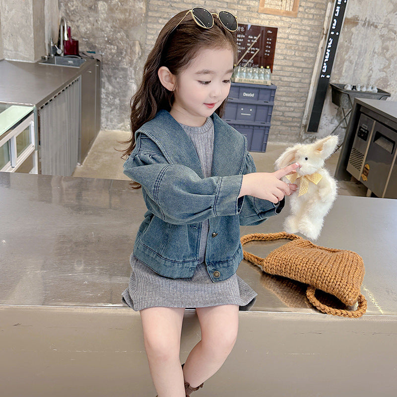 【90-140】ニットワンピース×デニムジャケットセット