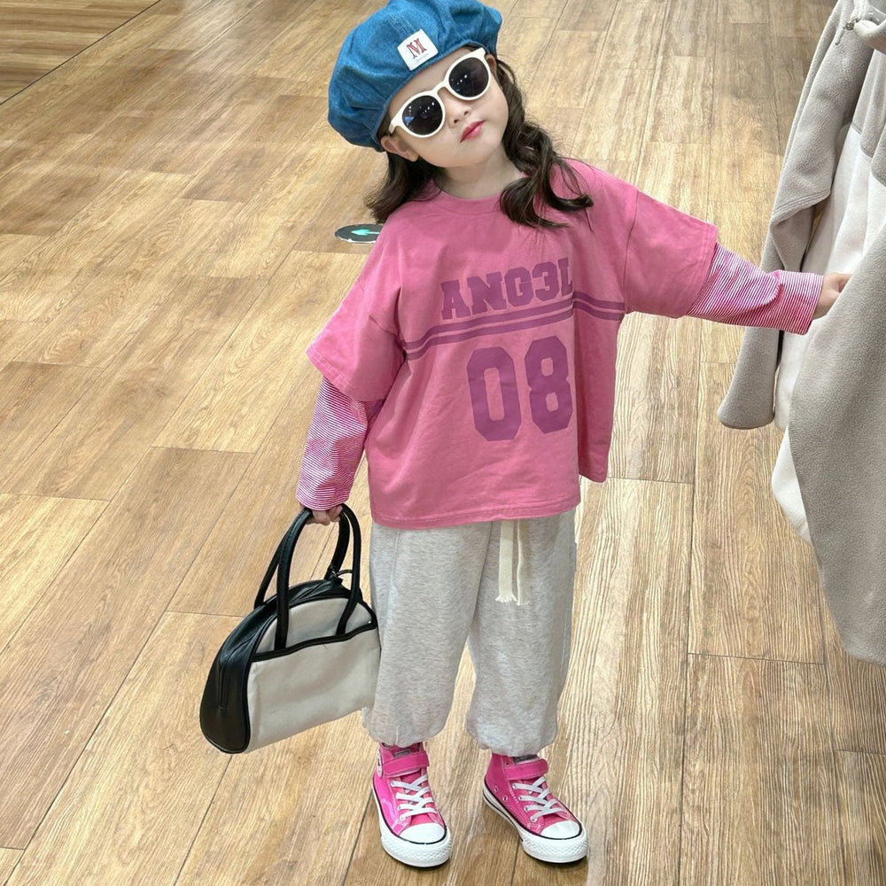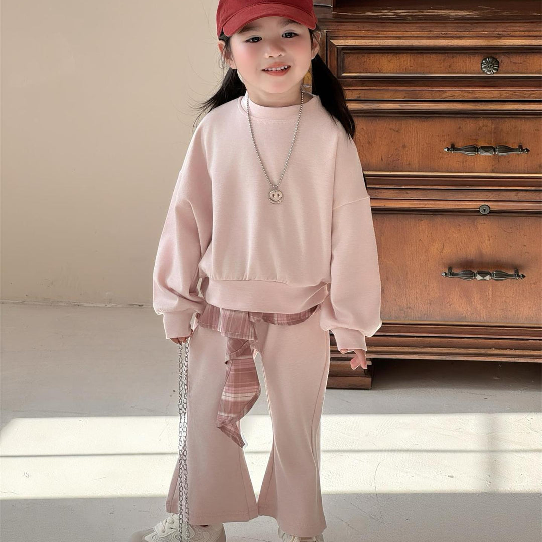 【90-140】レイヤード風トレーナー×フレアパンツセット