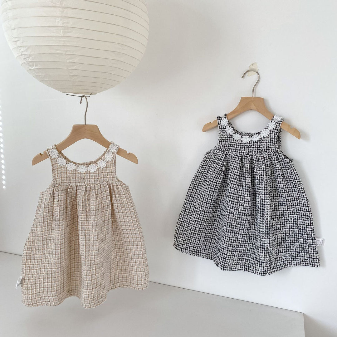 【80-130】フラワーモチーフチェック柄ワンピース