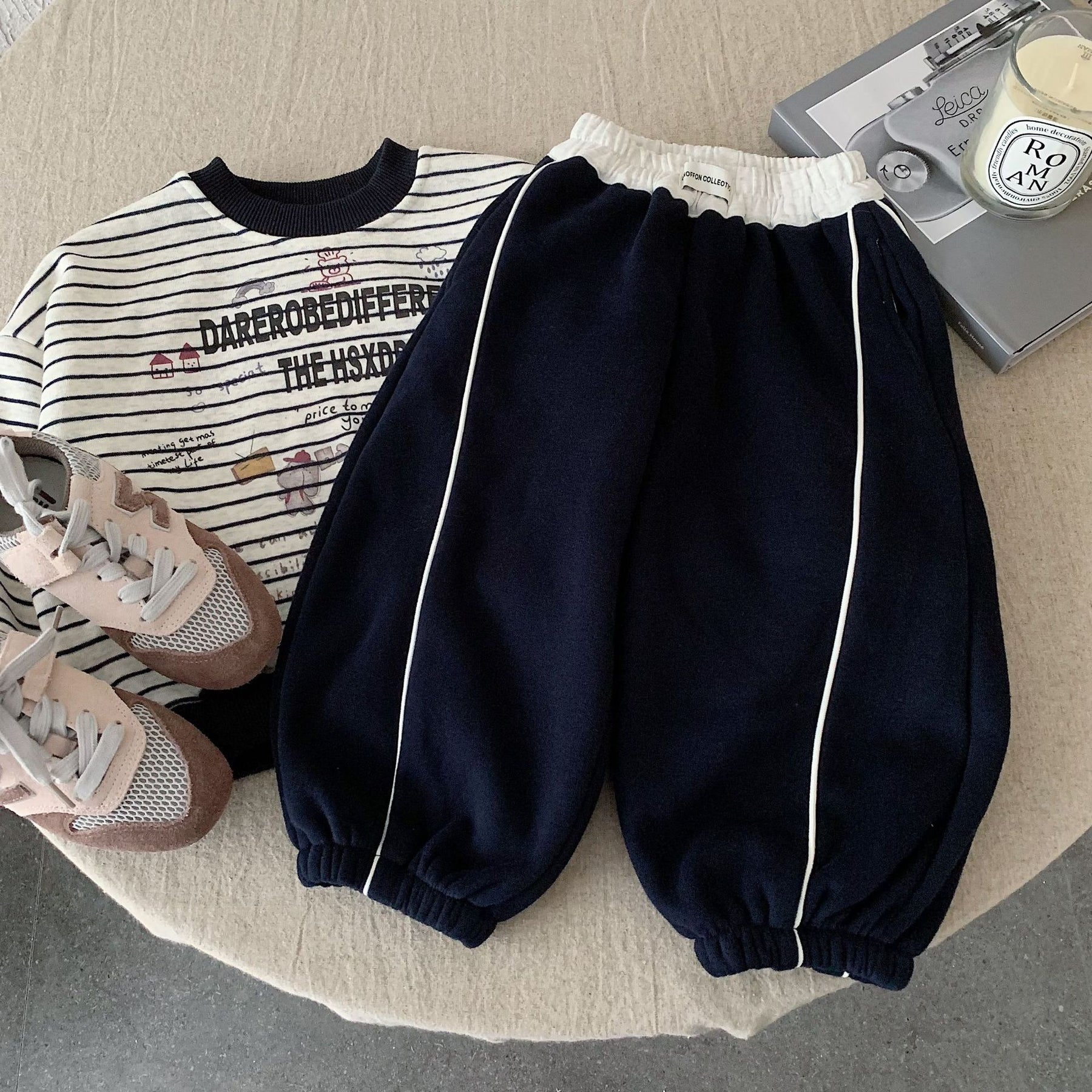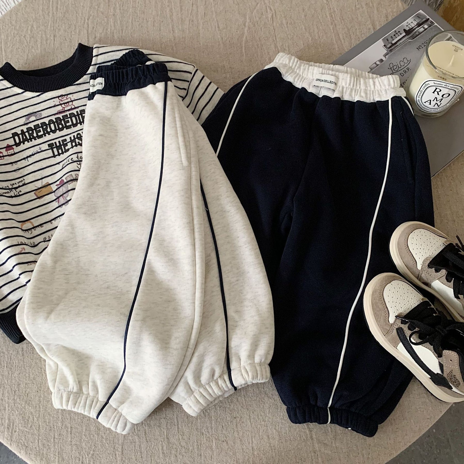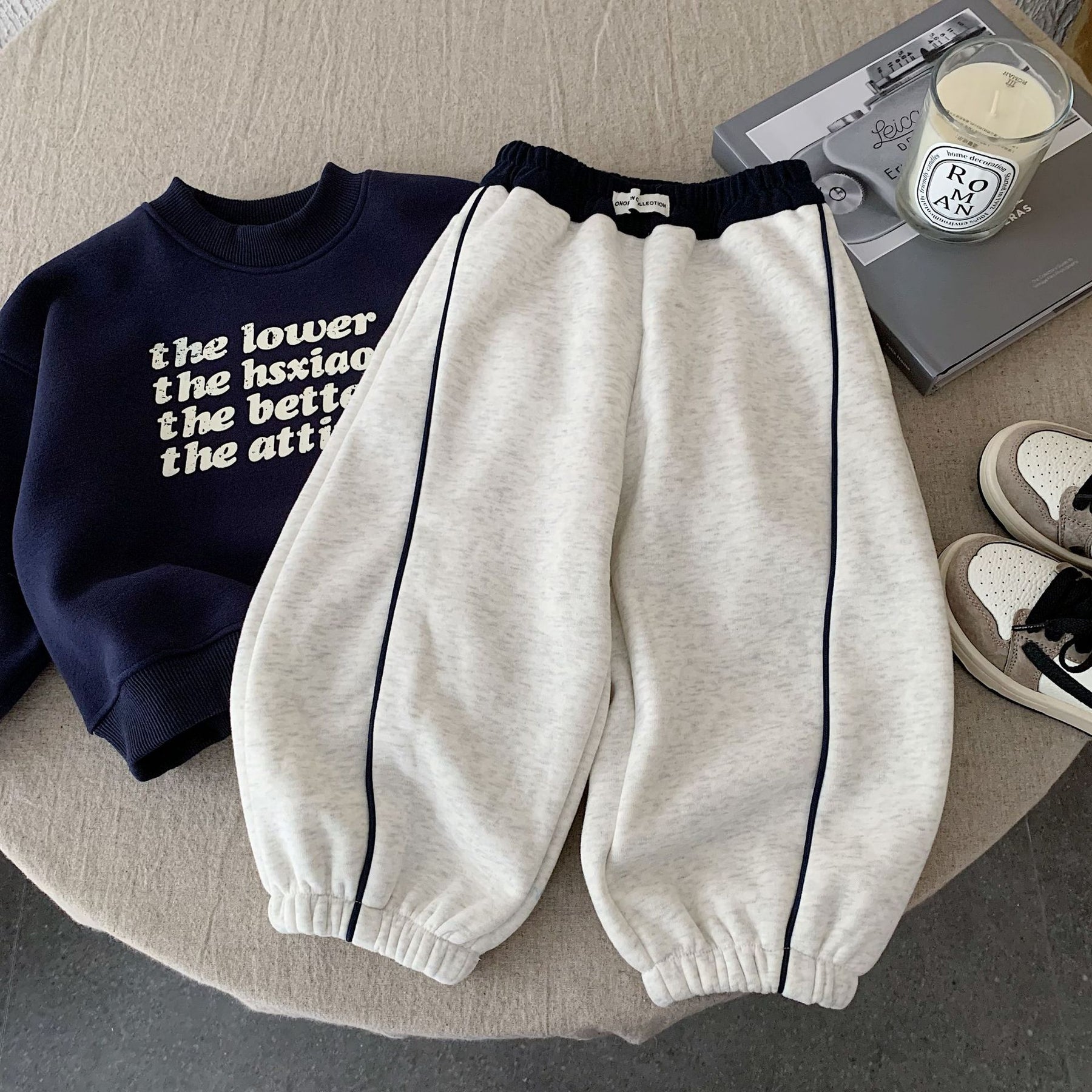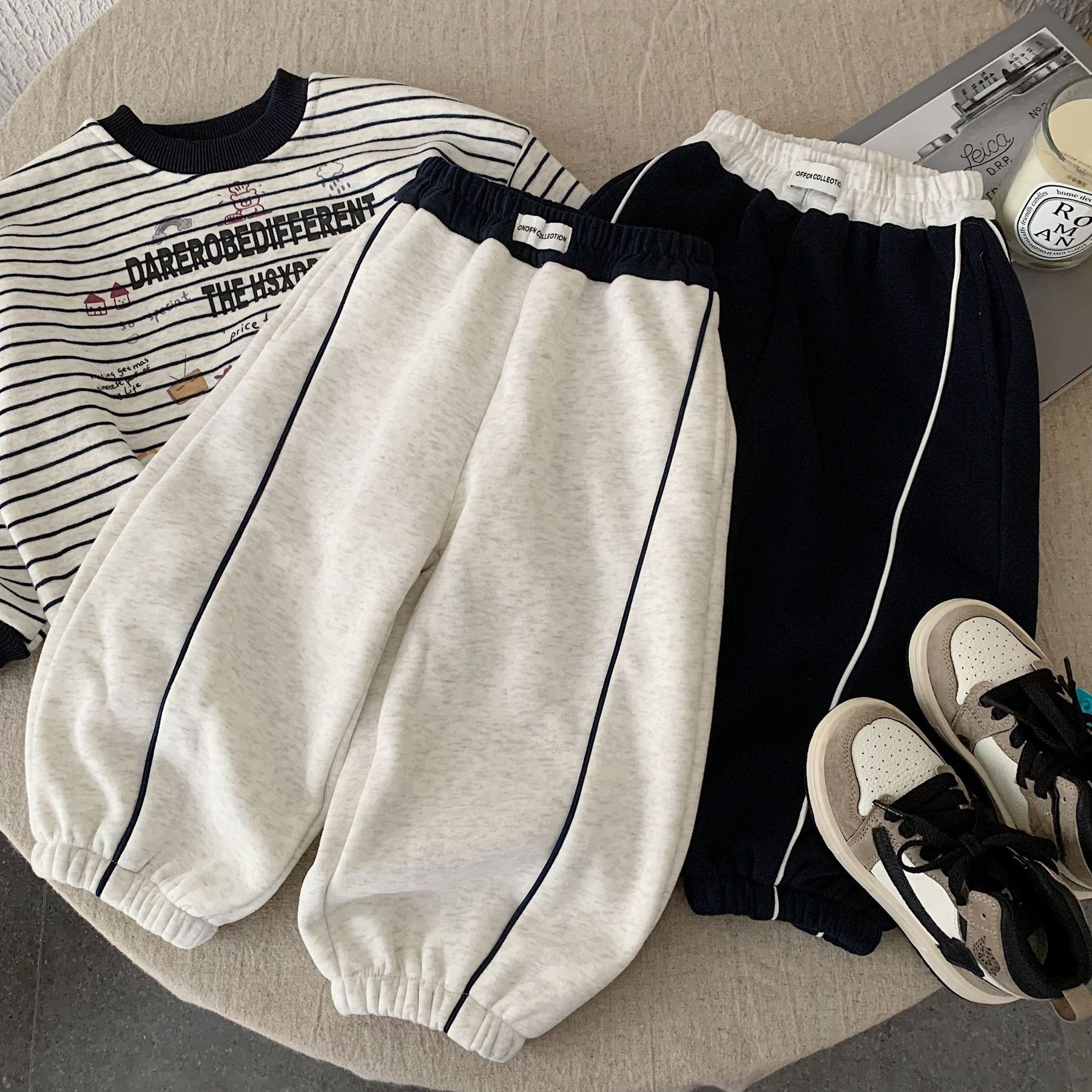 【90-140】ラインデザインあったかロングパンツ