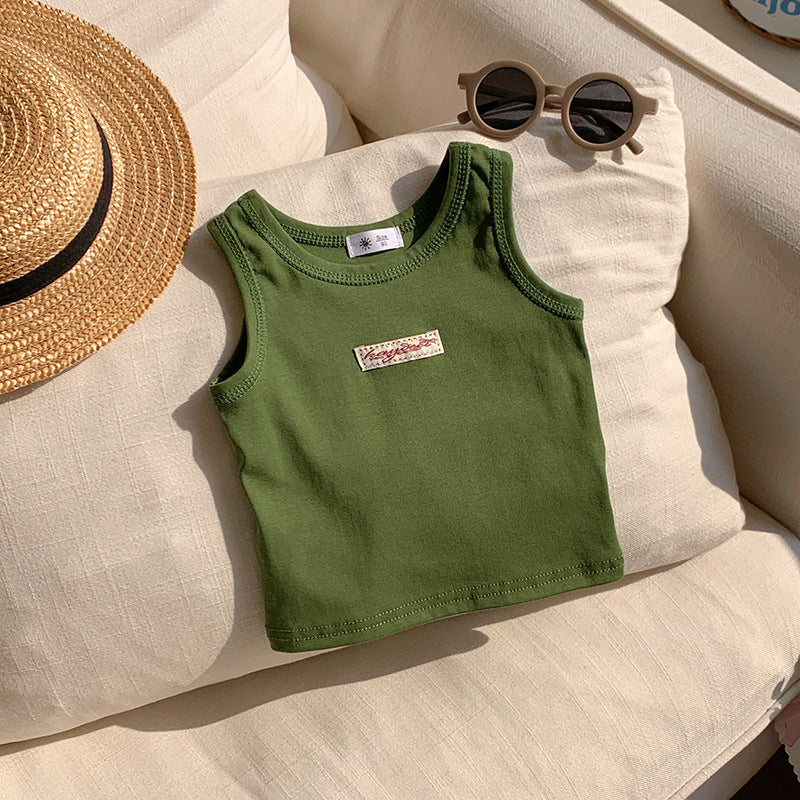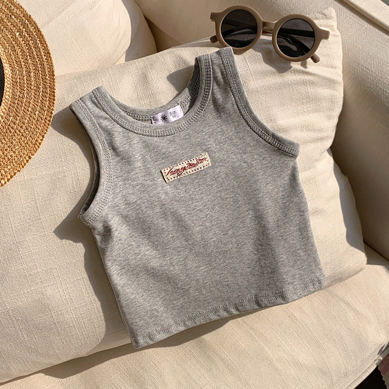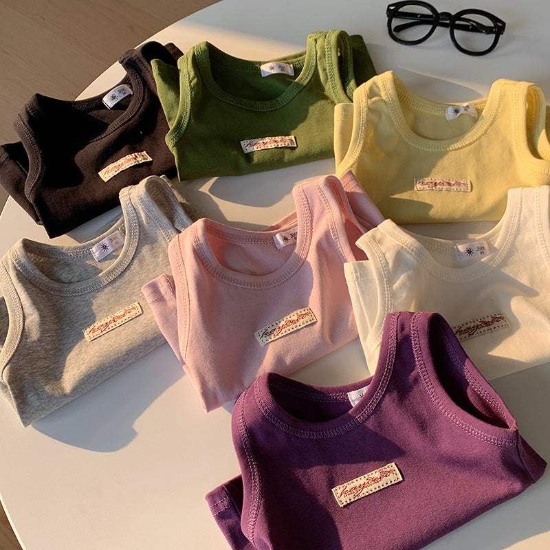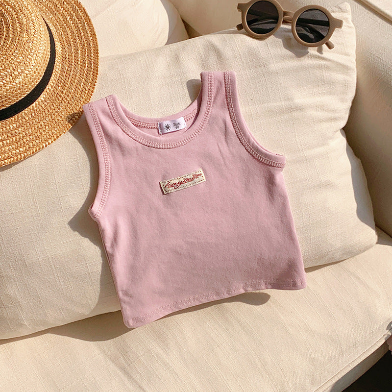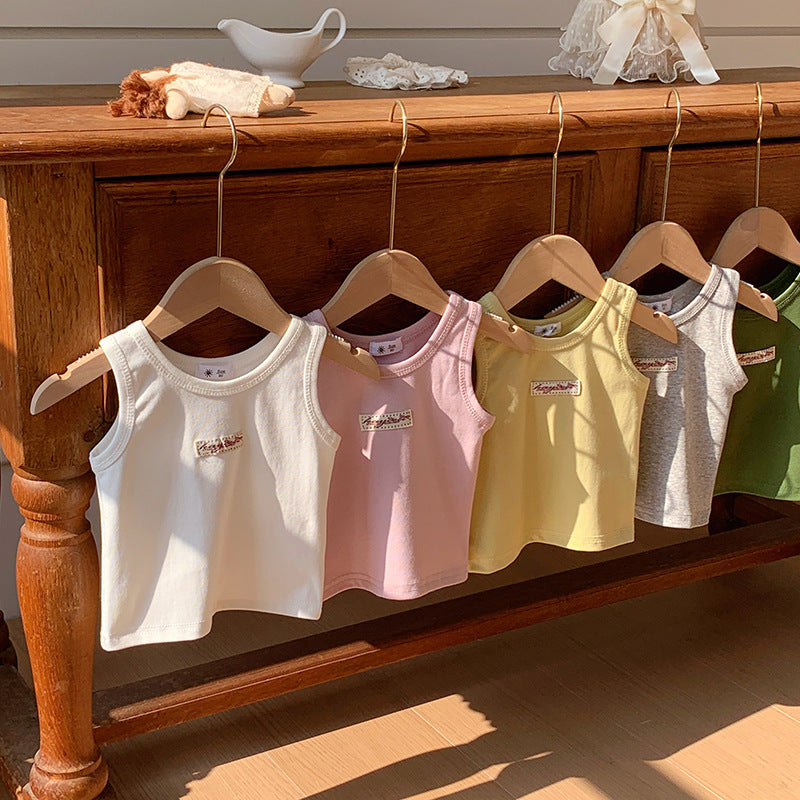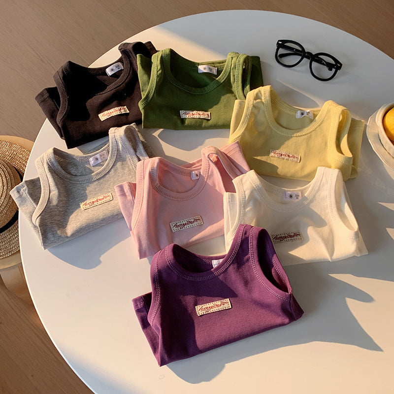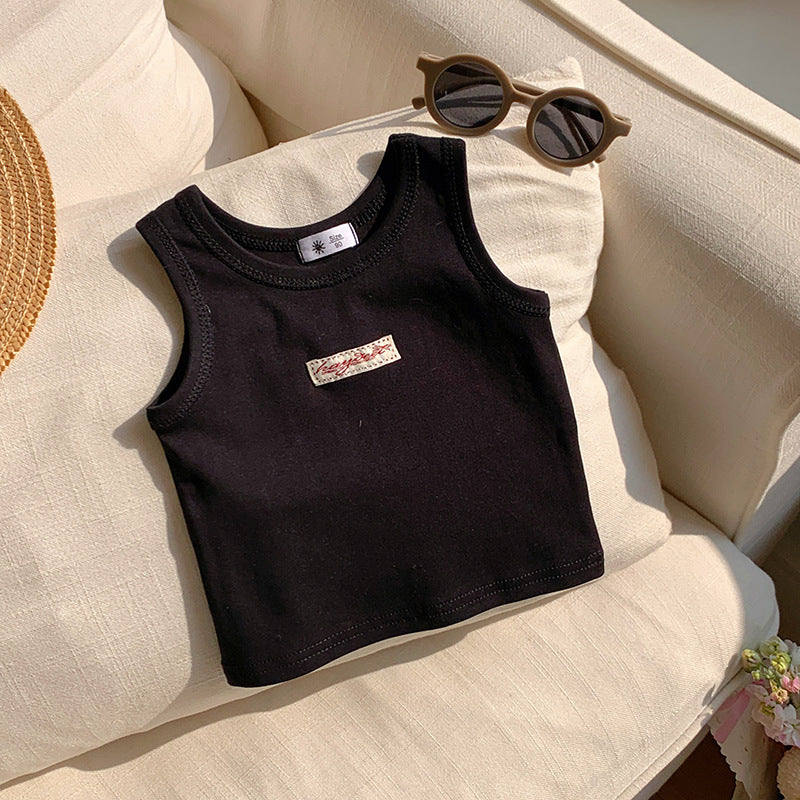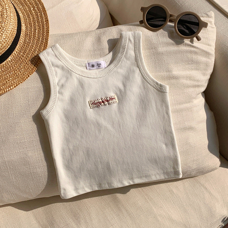 【90-150】ワンポイントワッペンノースリーブトップス