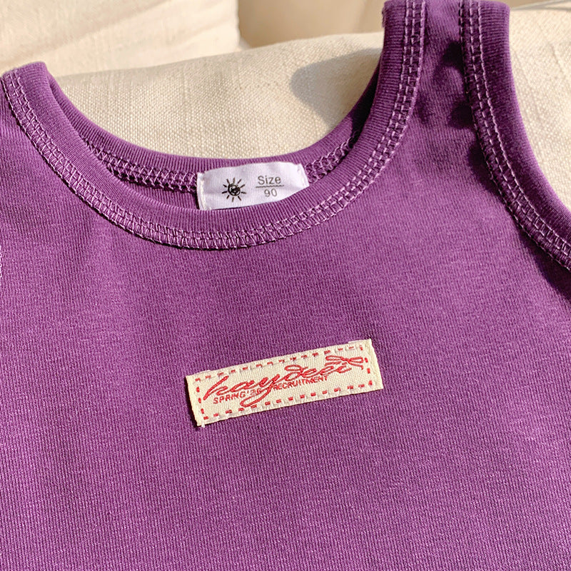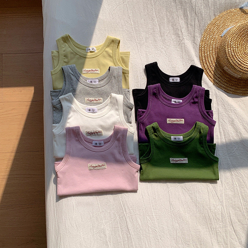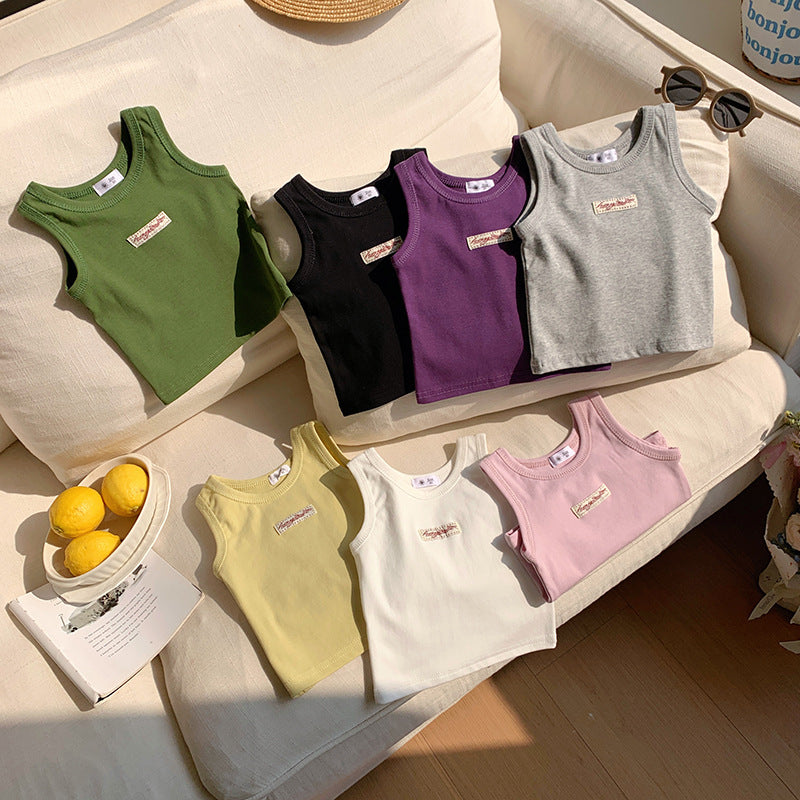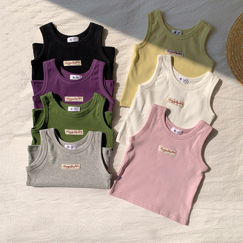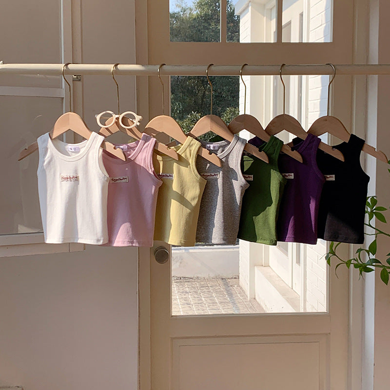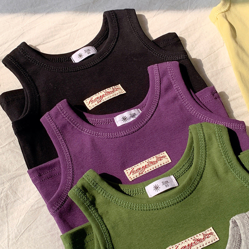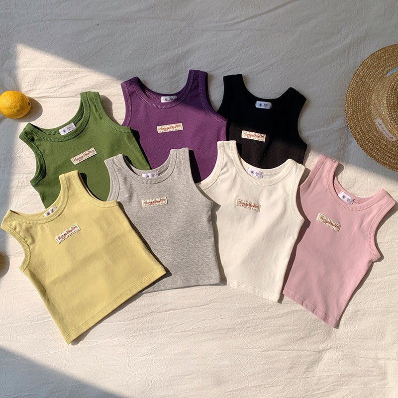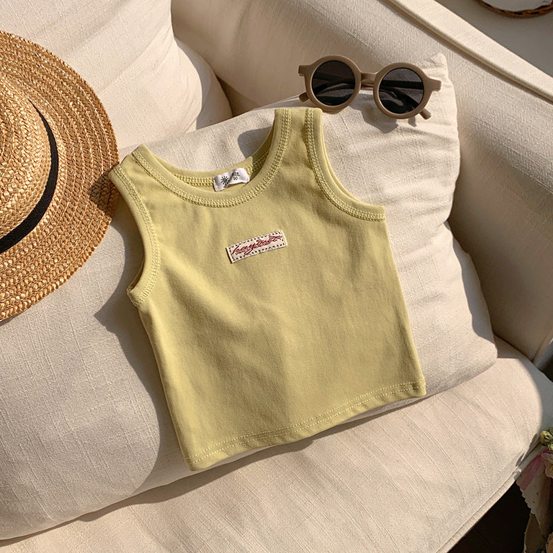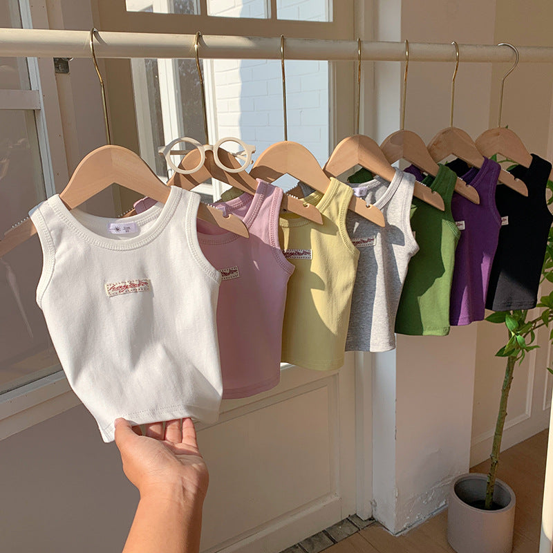 【90-150】ワンポイントワッペンノースリーブトップス