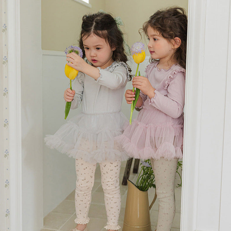 【80-130】レース&スリットデザインリブレギンスパンツ