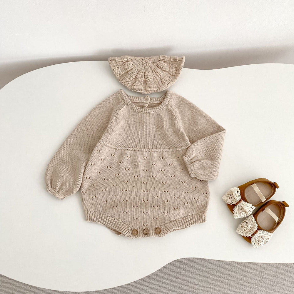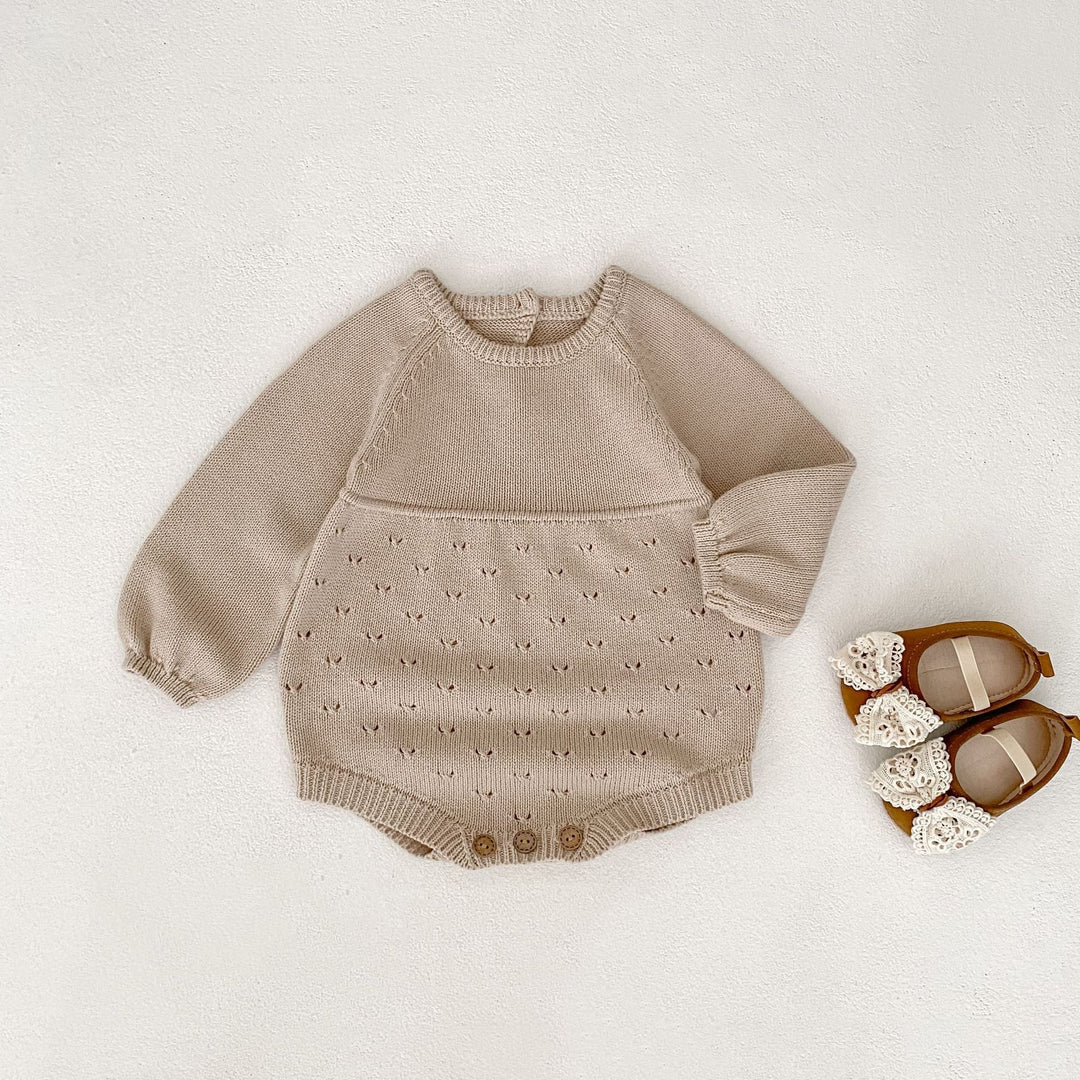 【73-90】シンプルニット長袖ロンパース