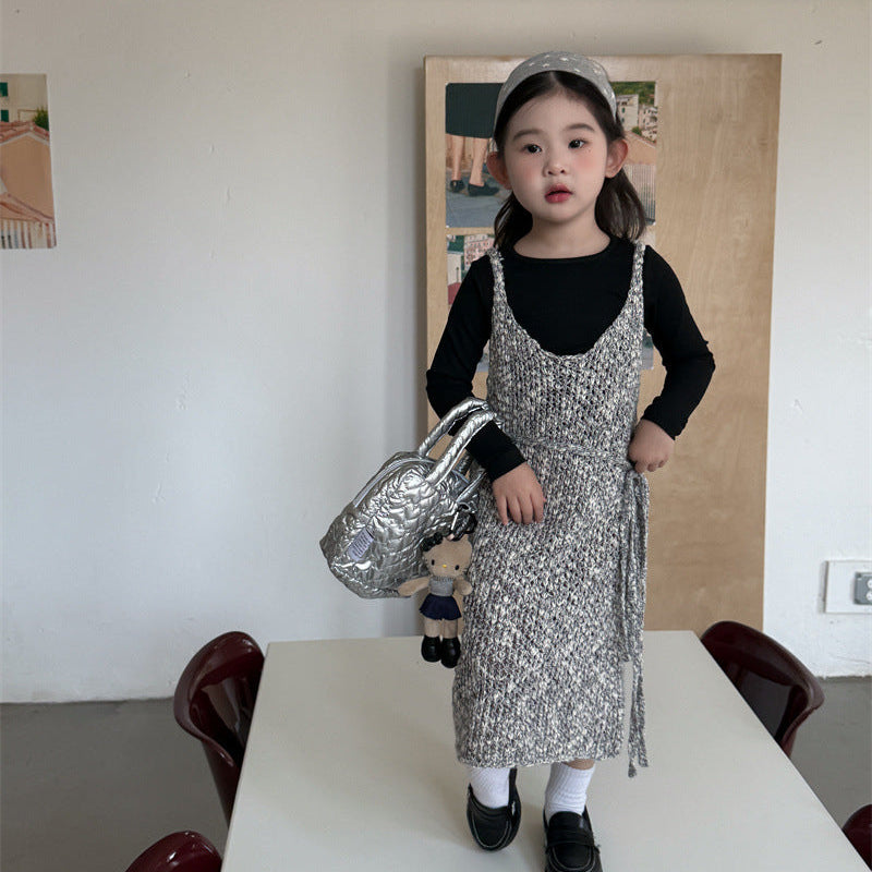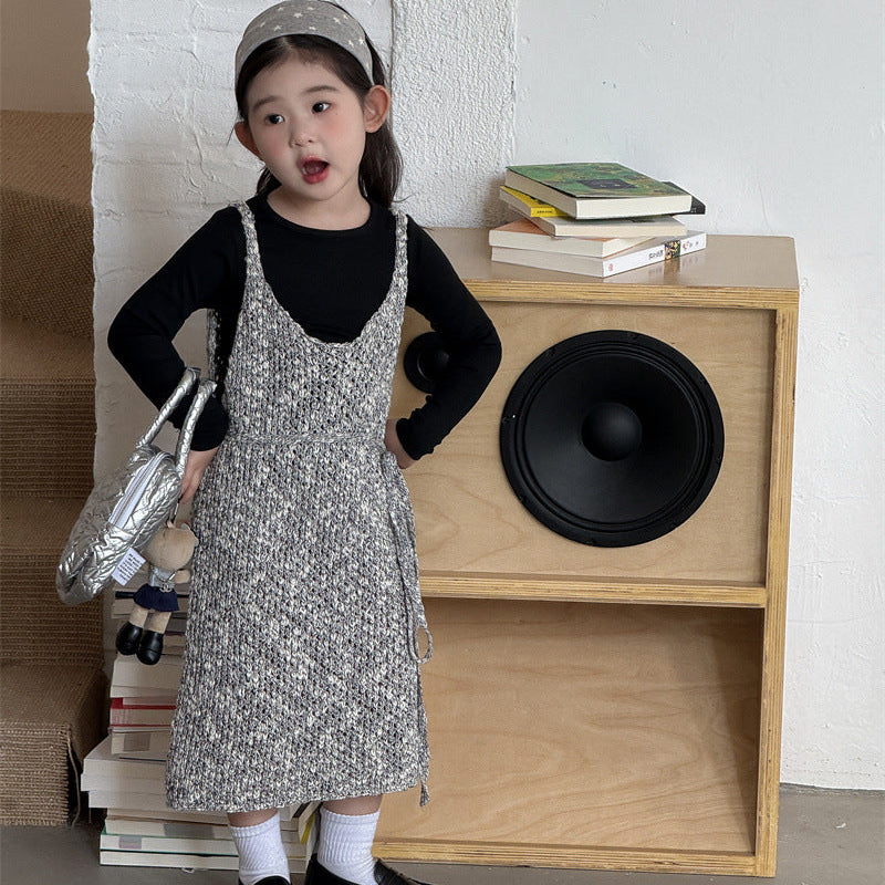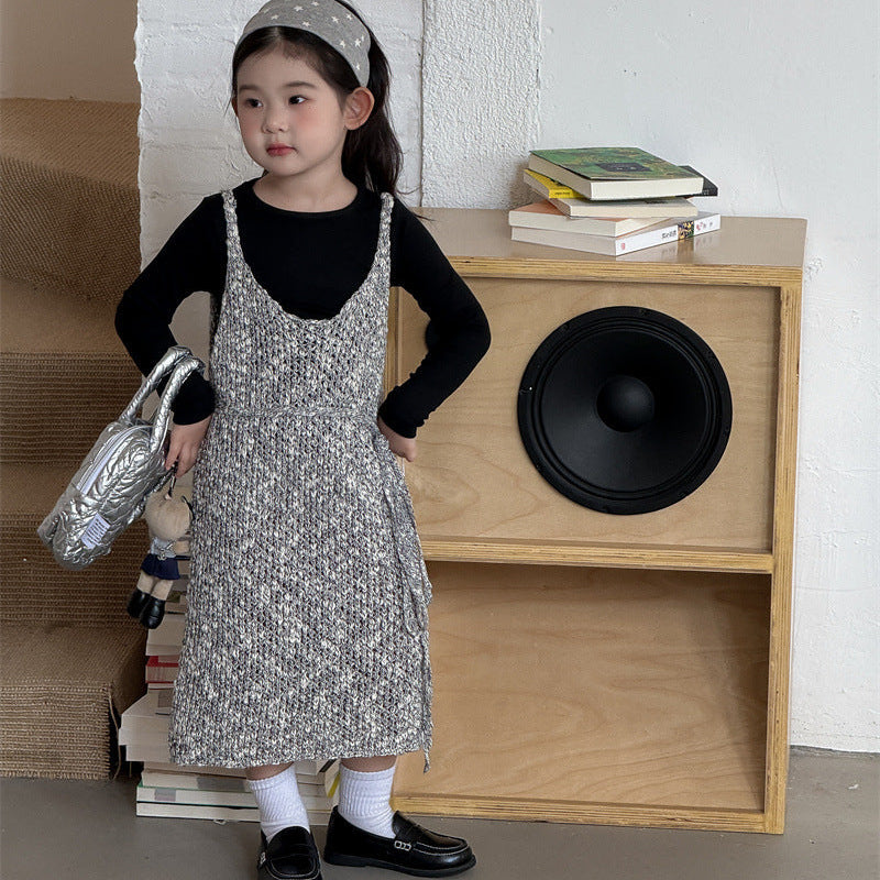 【100-140】バイカラーフリルヘムノースリーブワンピース