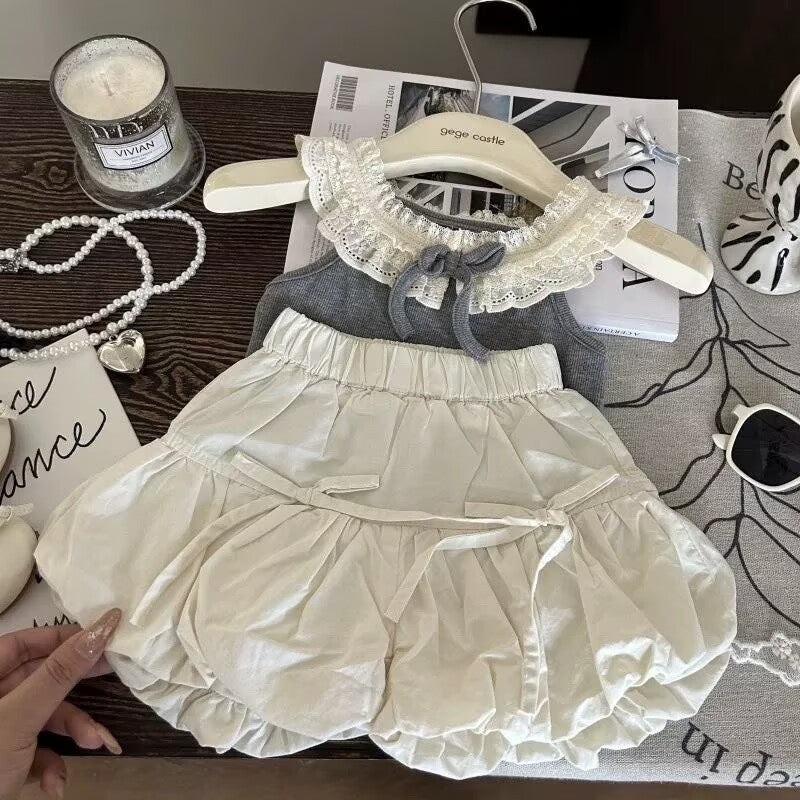 【100-140】レースカラートップス×バルーンパンツセット