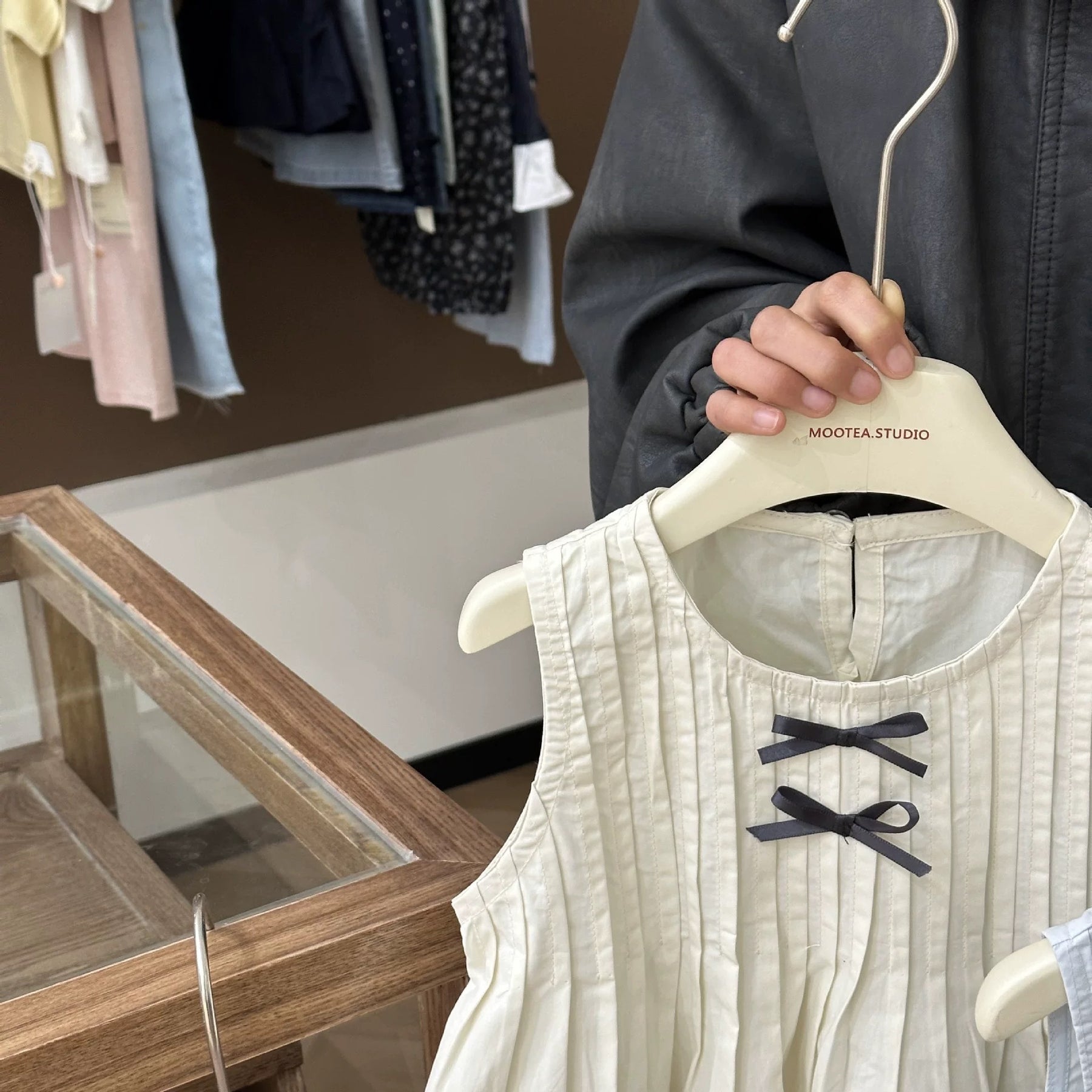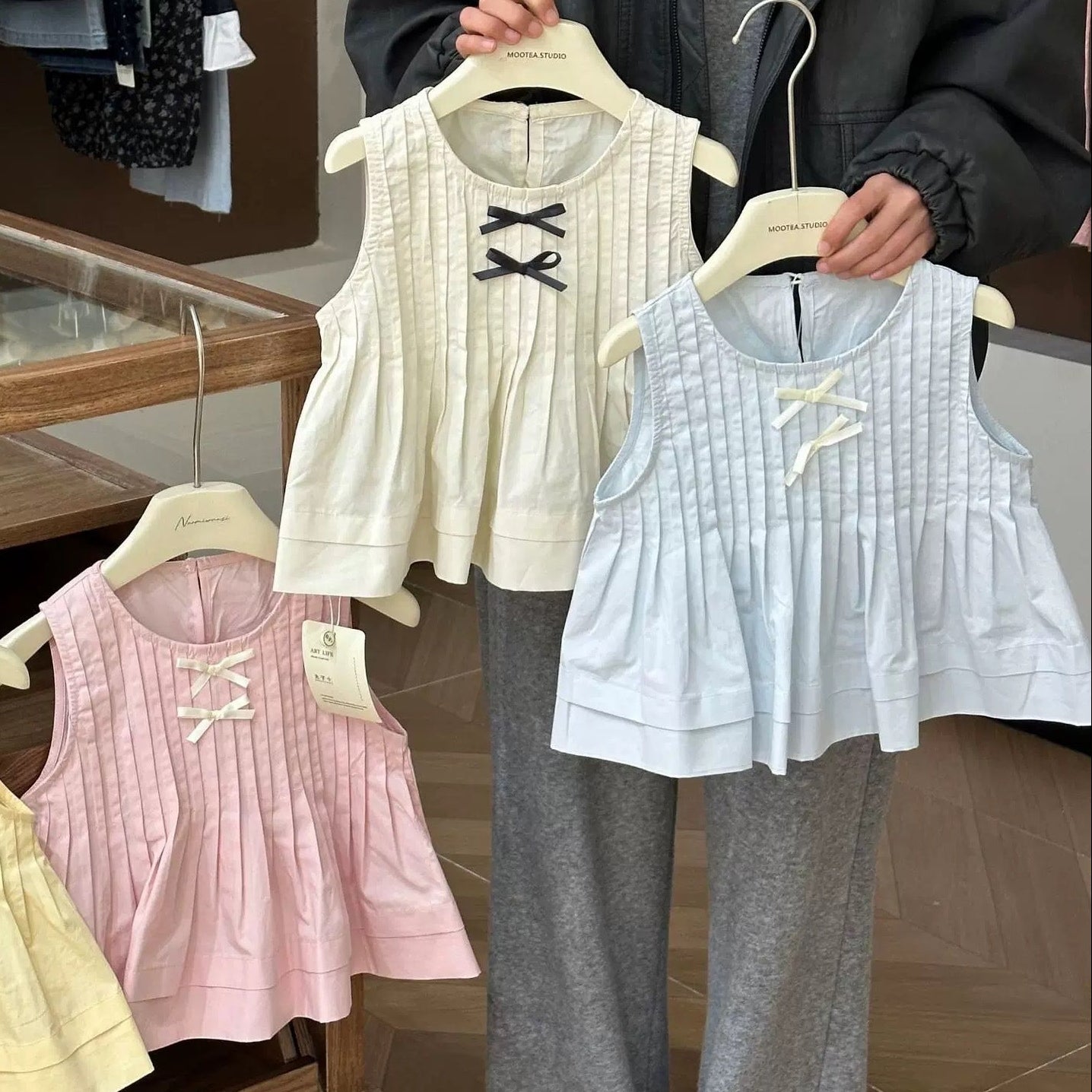 【90-140】プリーツデザインノースリーブトップス