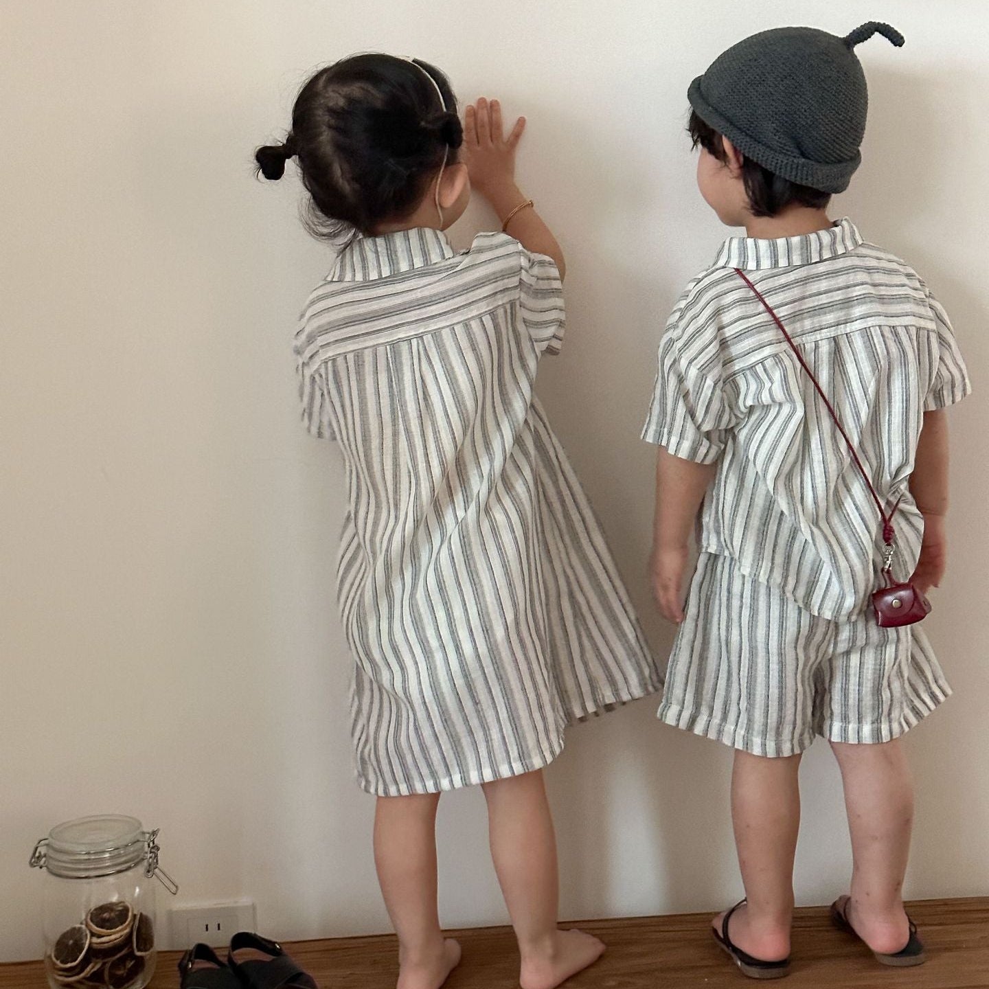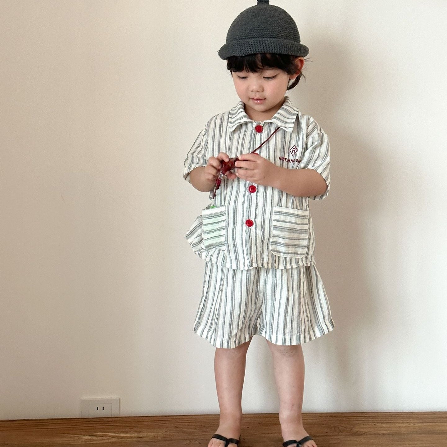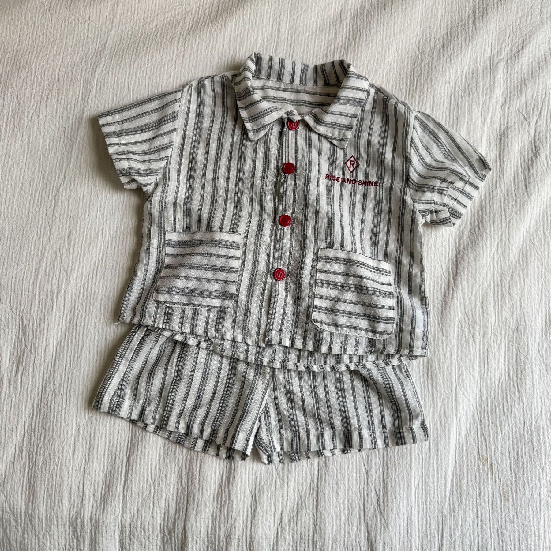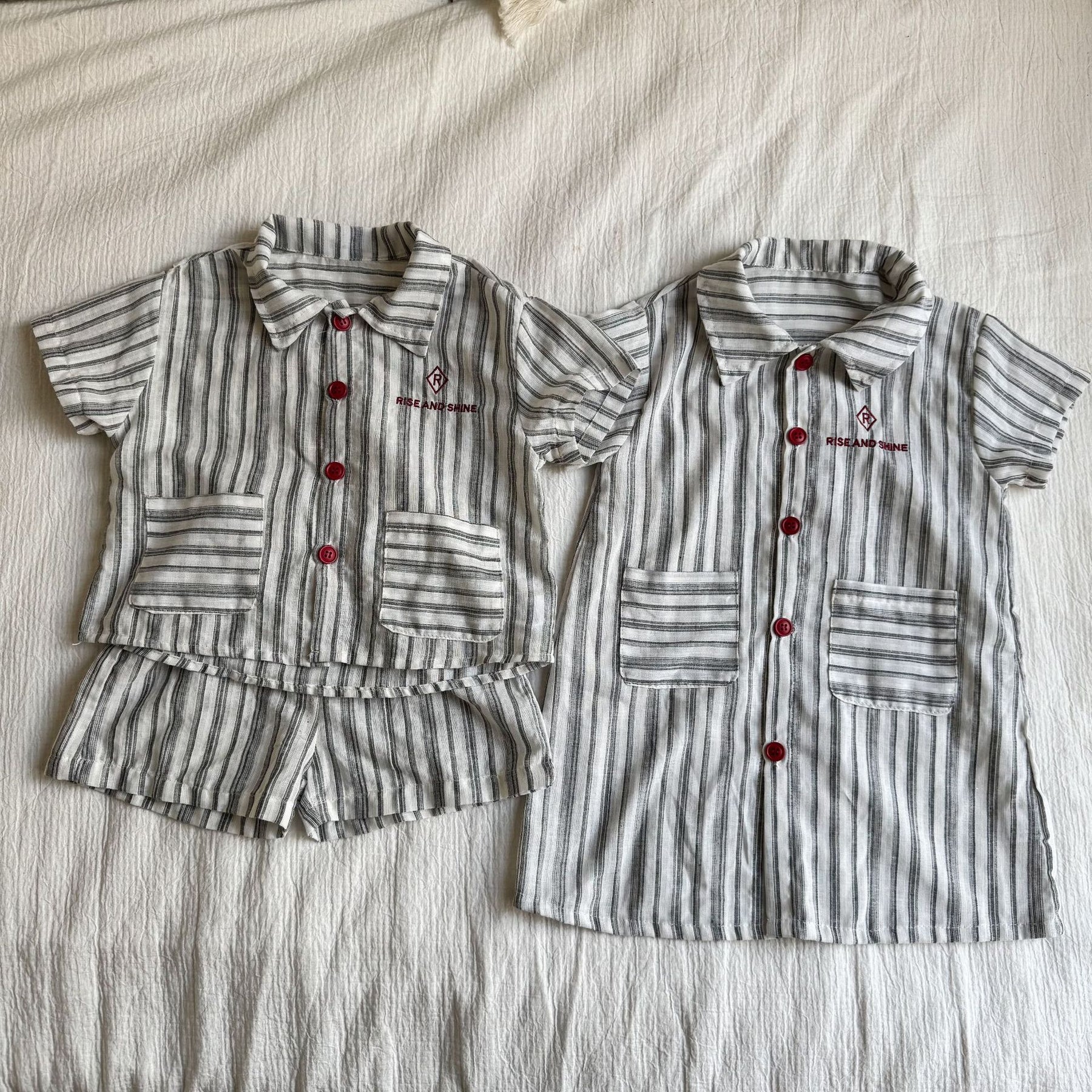 【80-150】ストライプデザイン半袖セットアップ