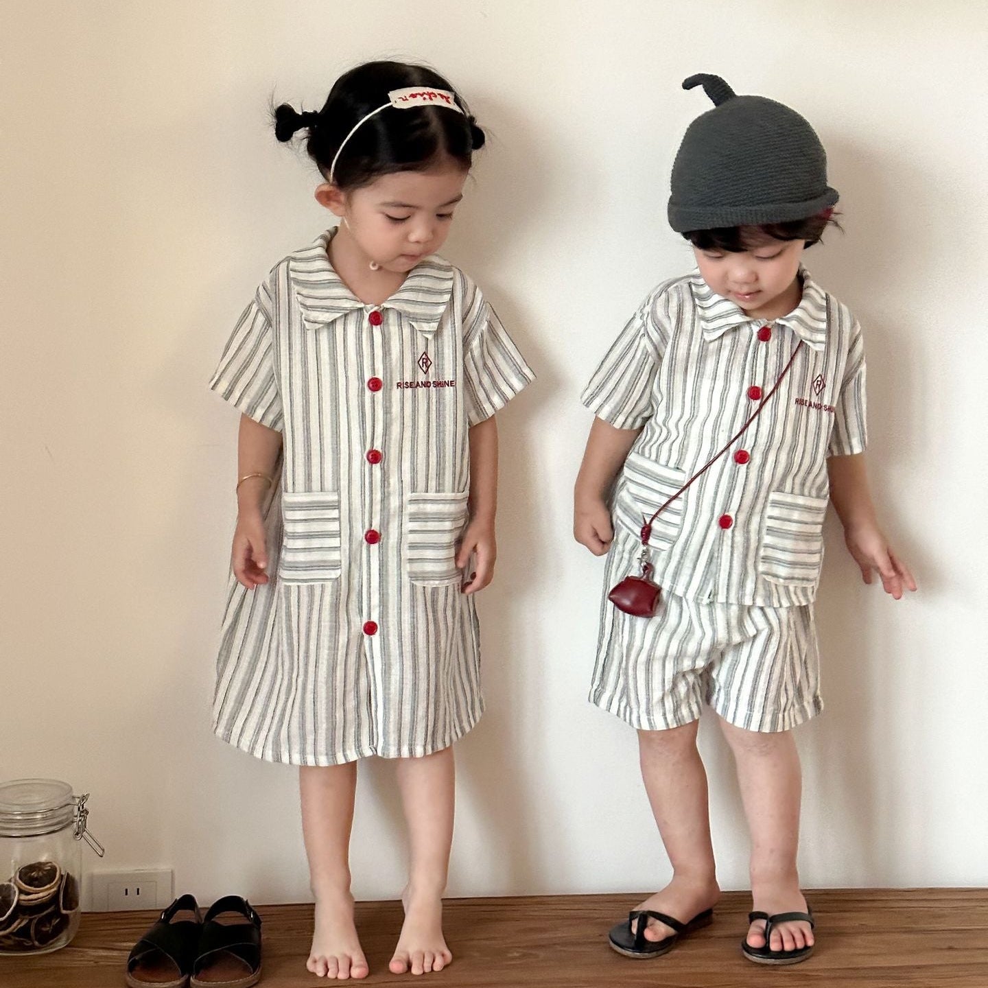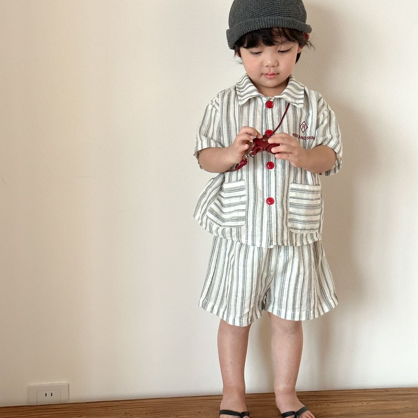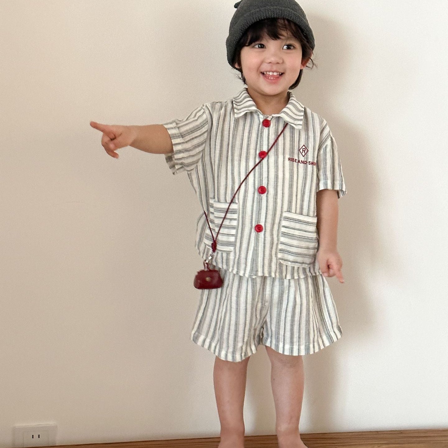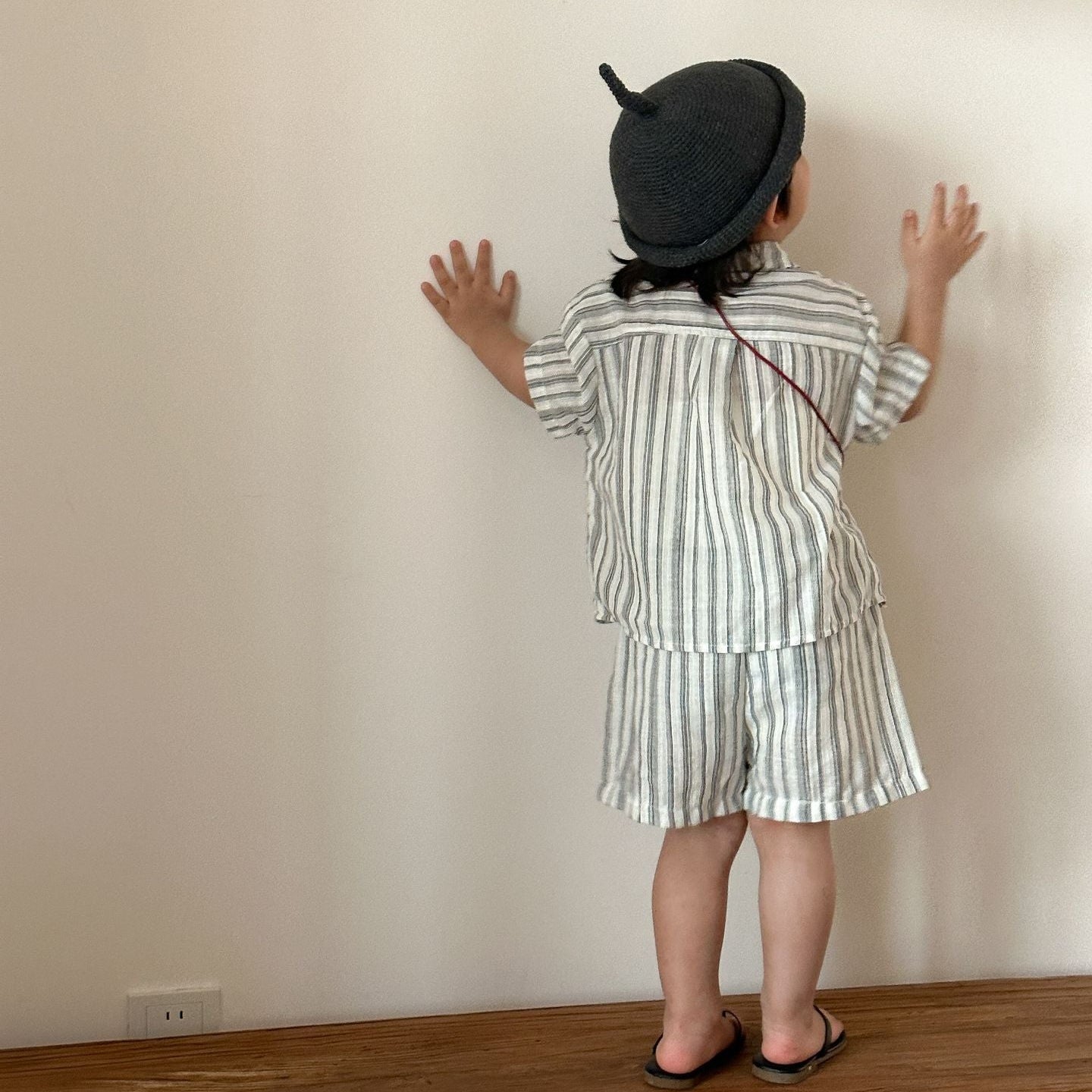 【80-150】ストライプデザイン半袖セットアップ