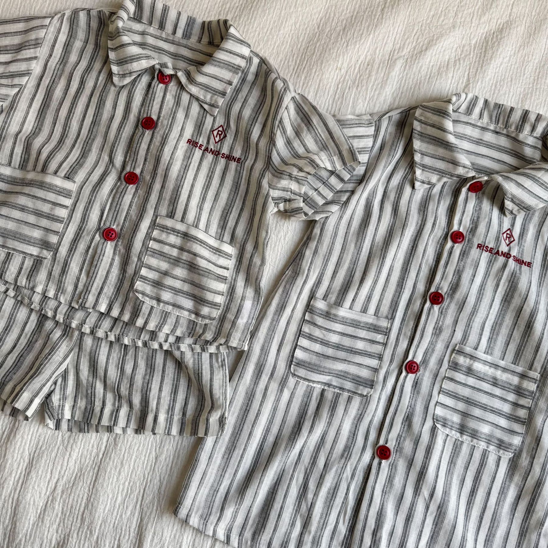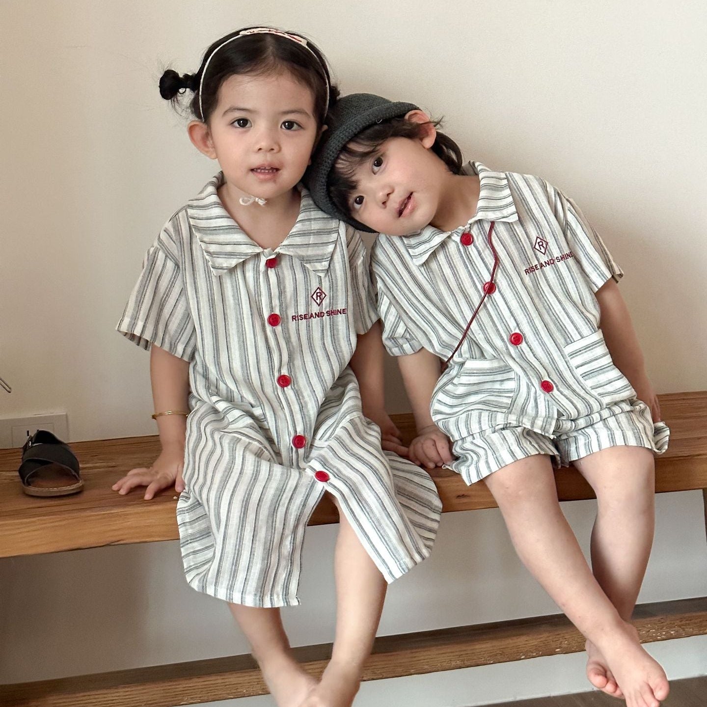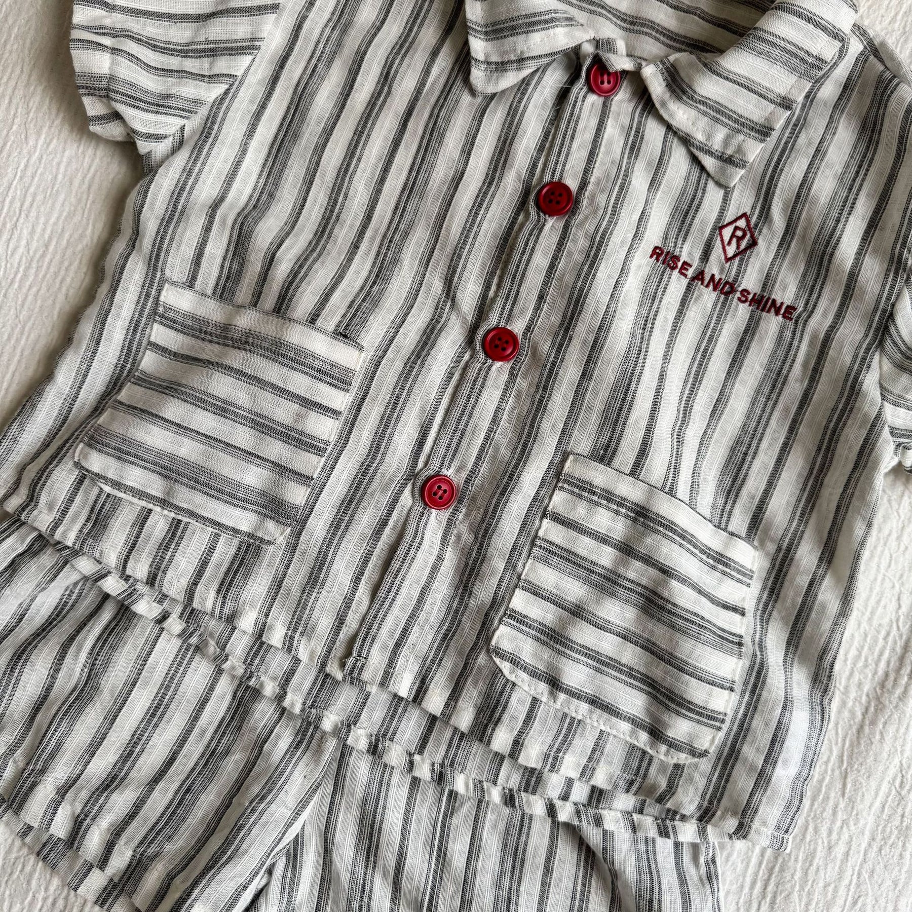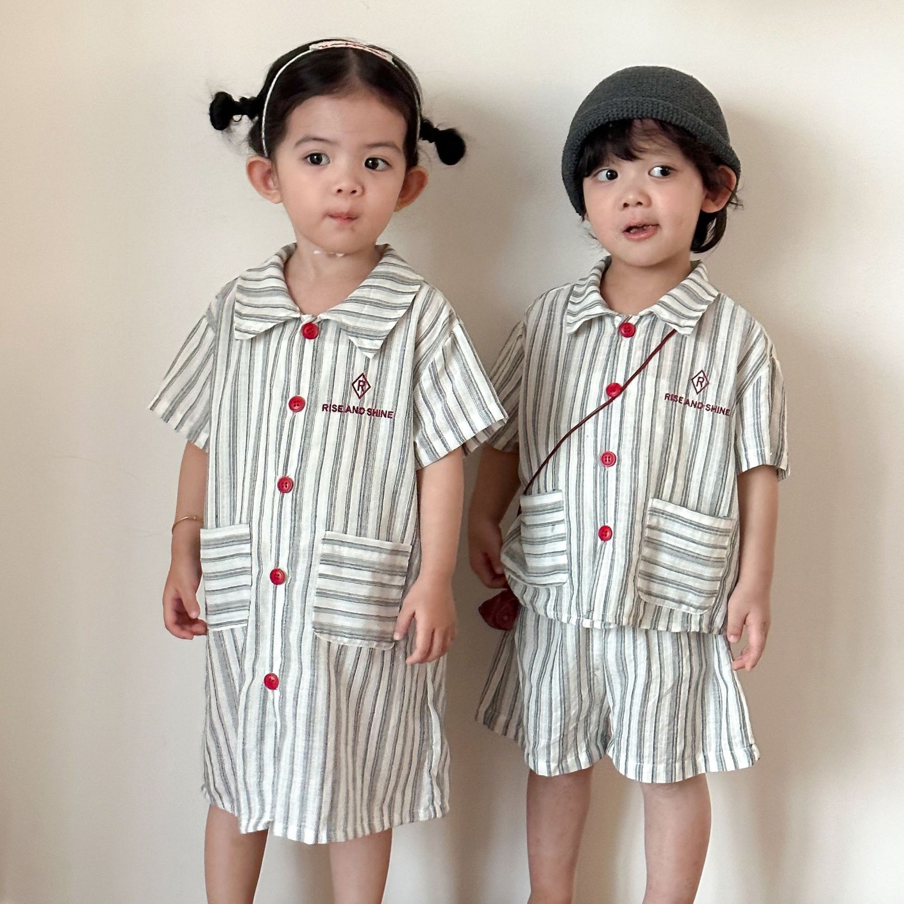 【80-150】ストライプデザイン半袖セットアップ
