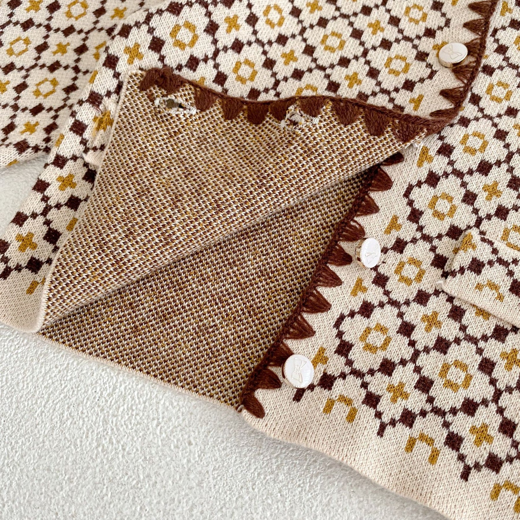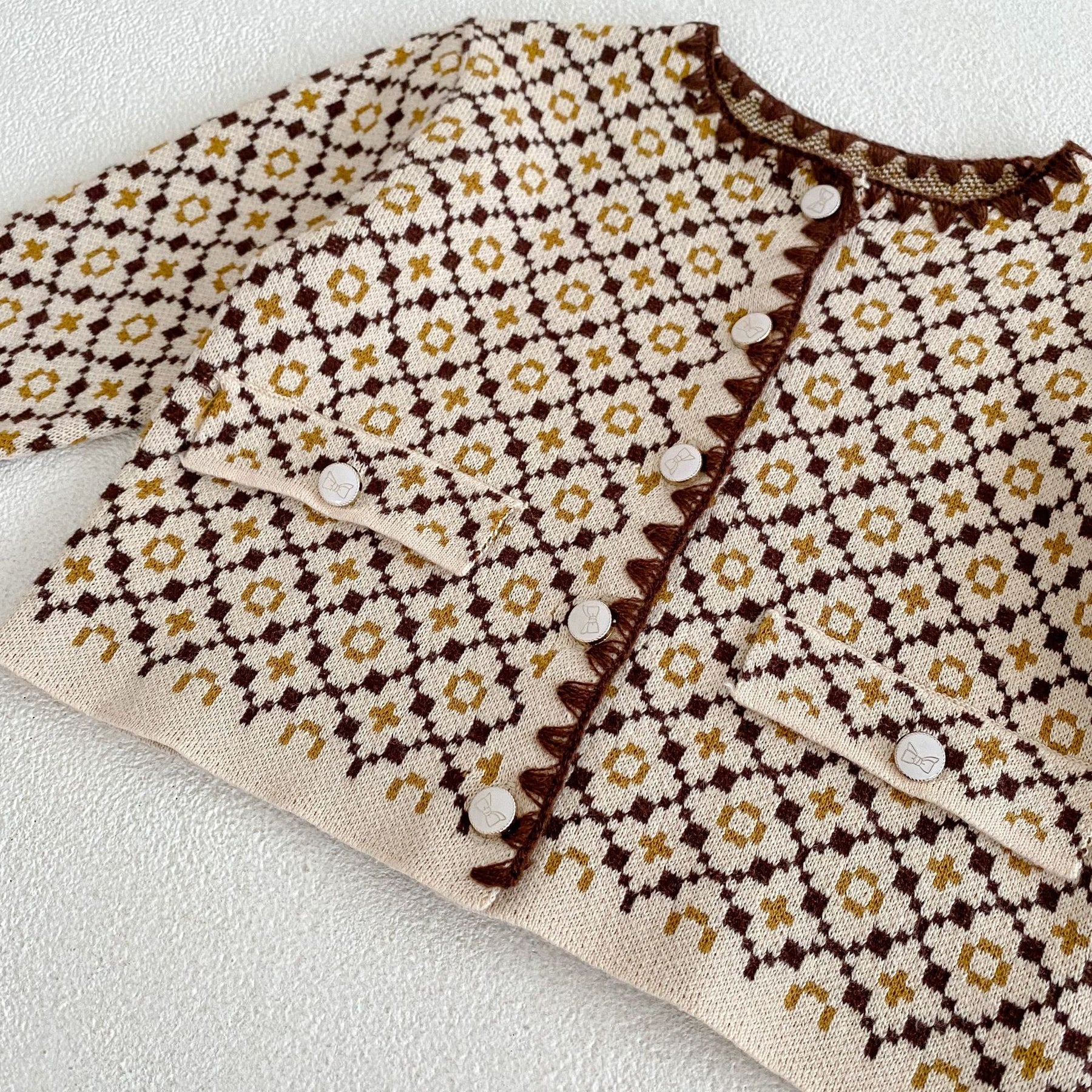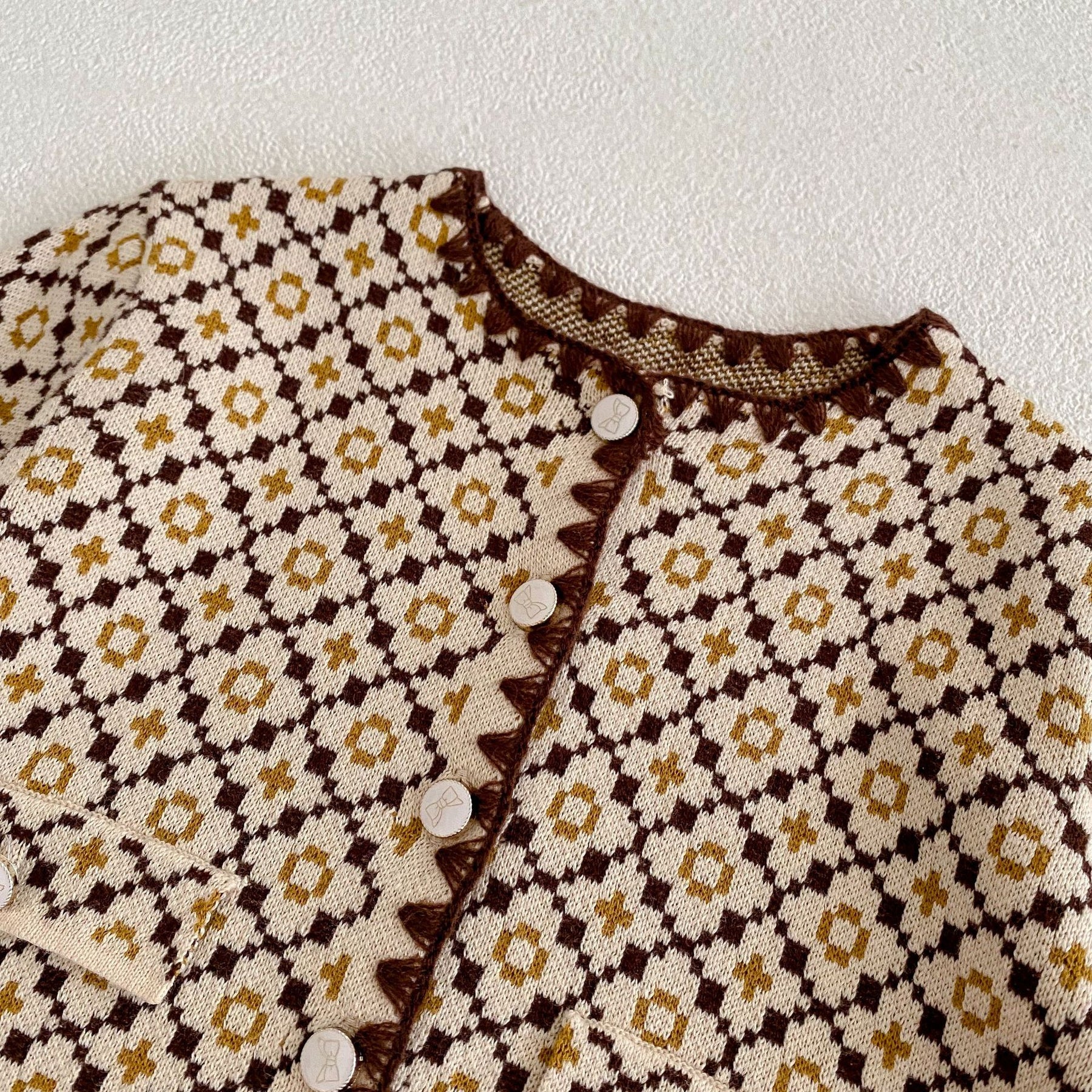 【73-100】リボン柄ボタン総柄カーディガン