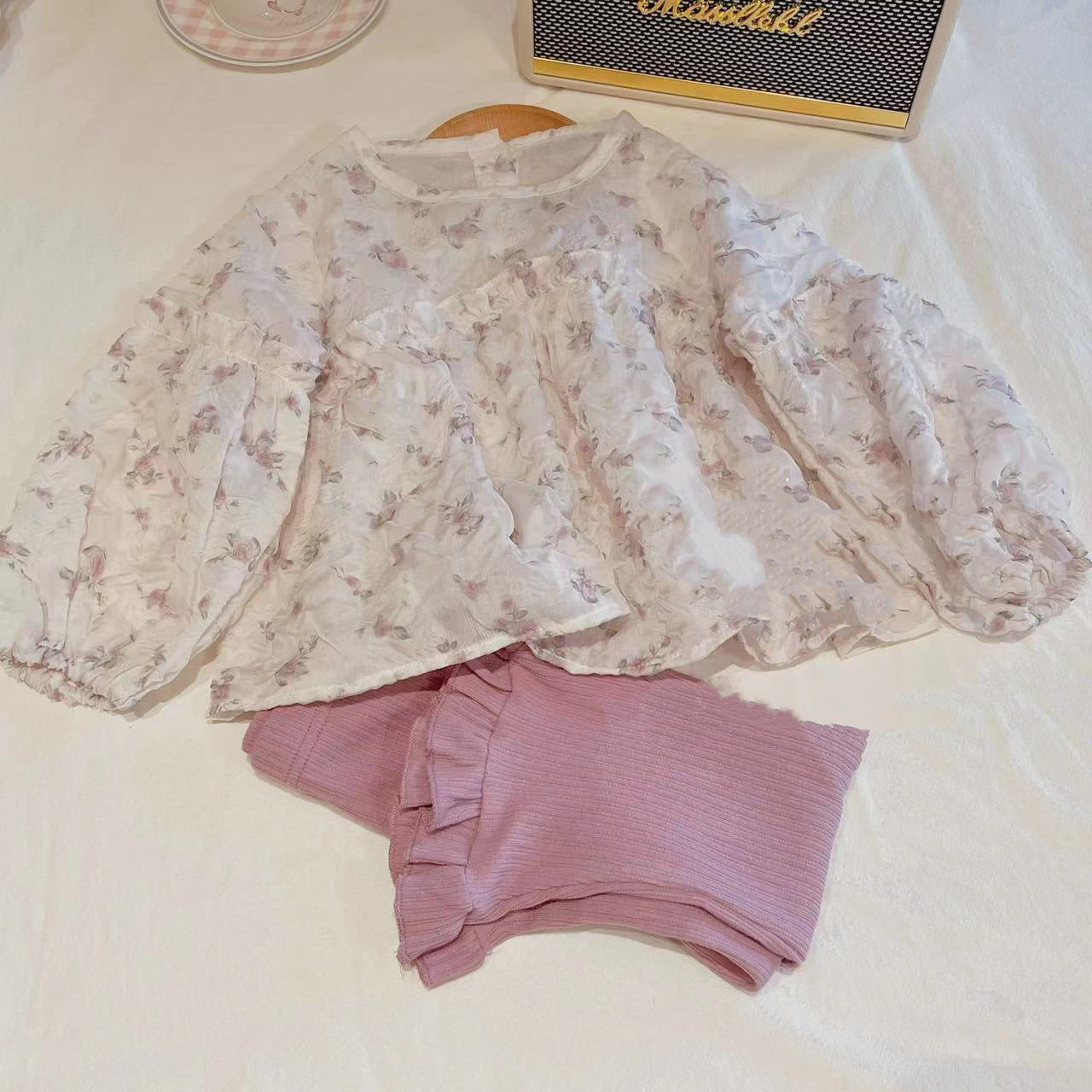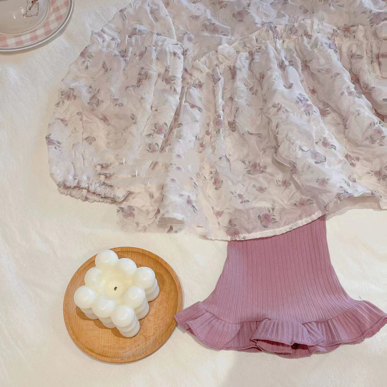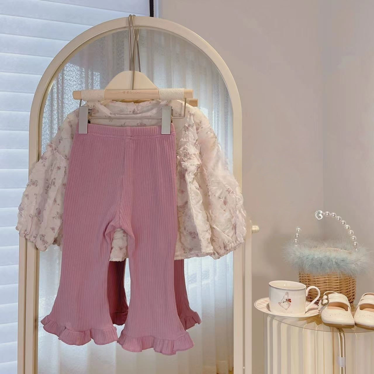 【90-140】花柄フレアプルオーバー×フレアヘムパンツセット