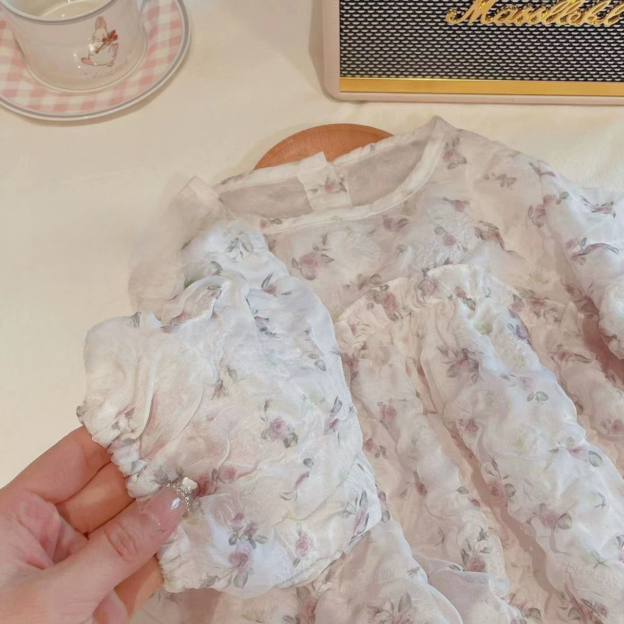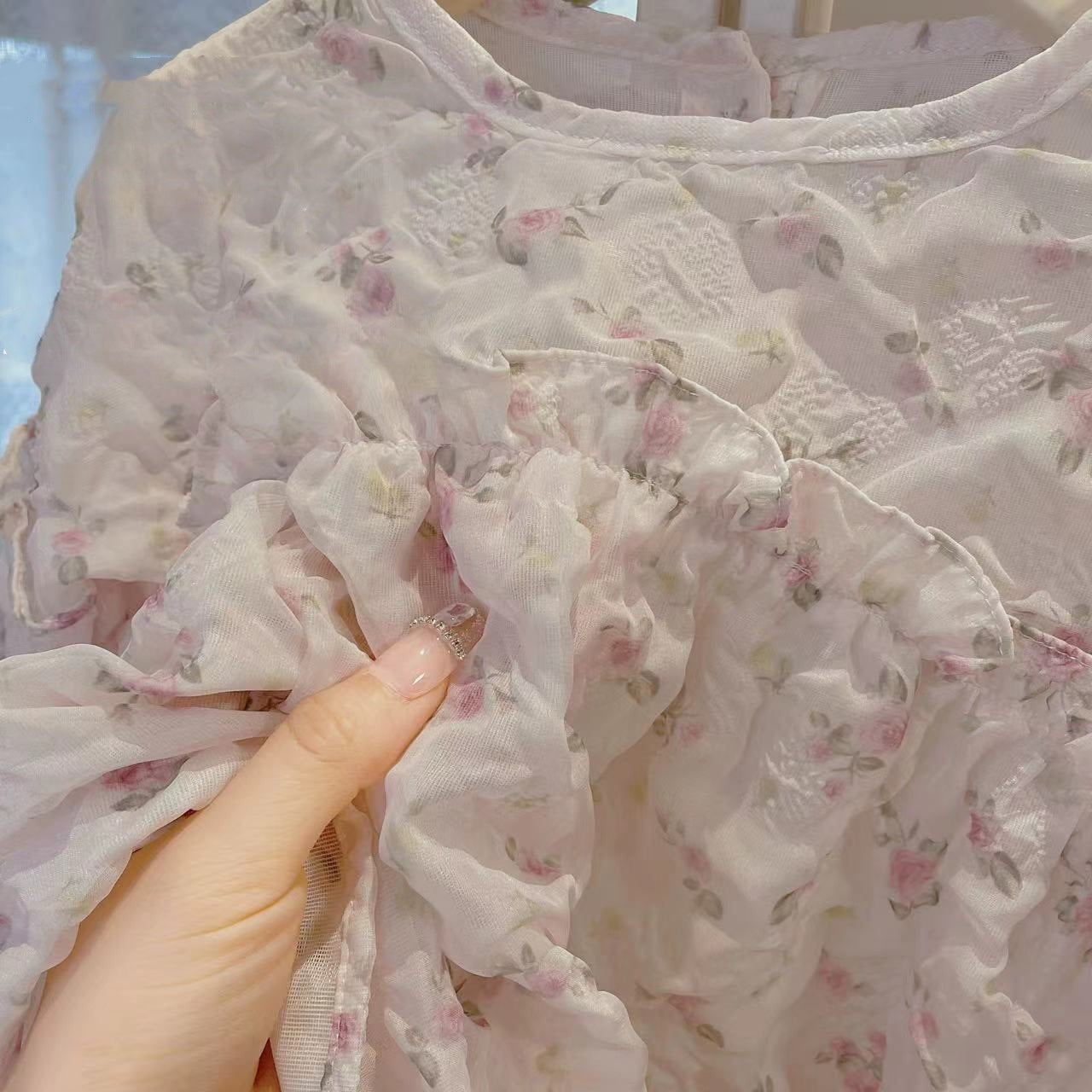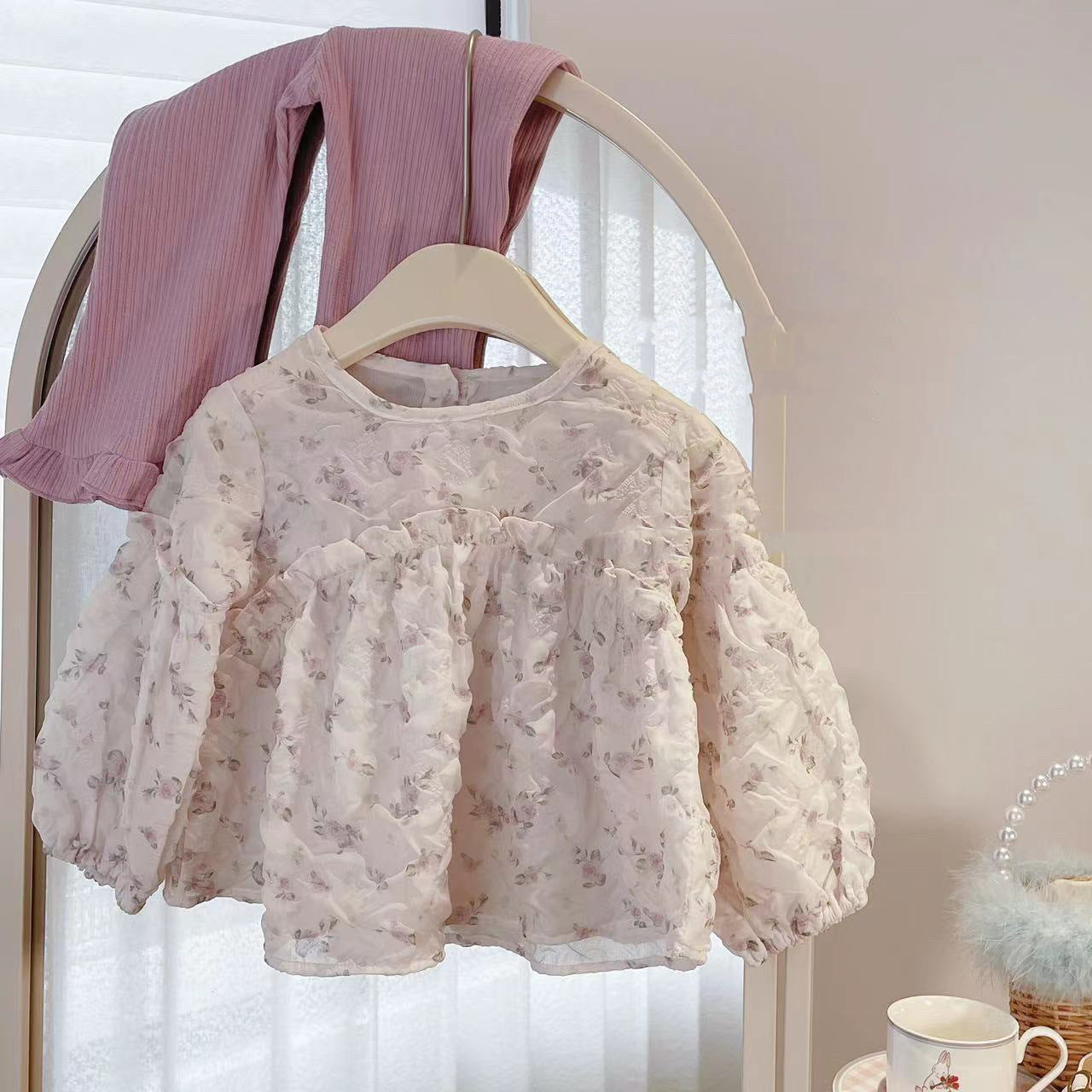 【90-140】花柄フレアプルオーバー×フレアヘムパンツセット