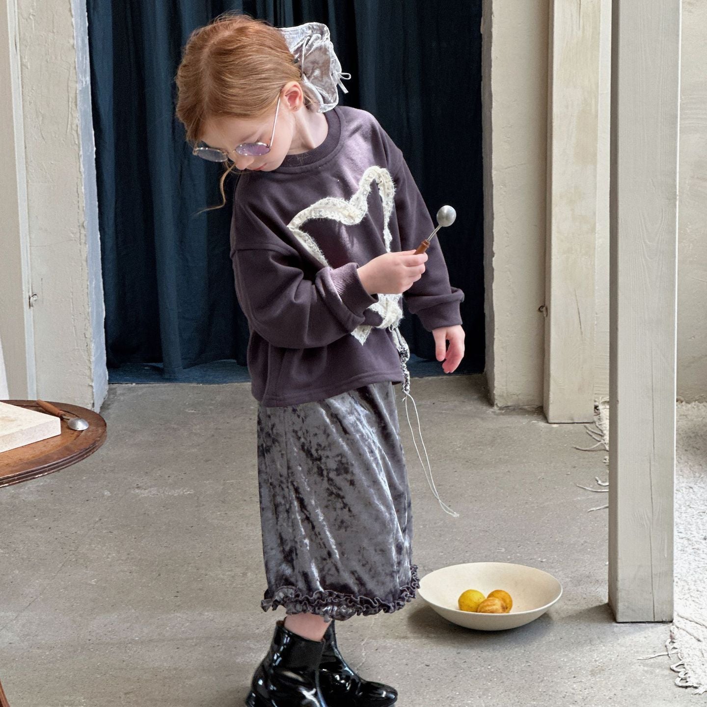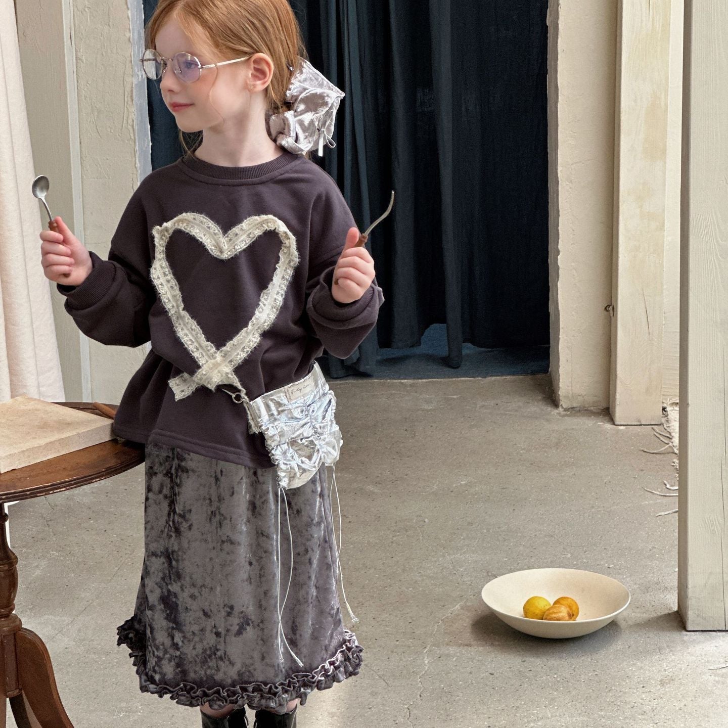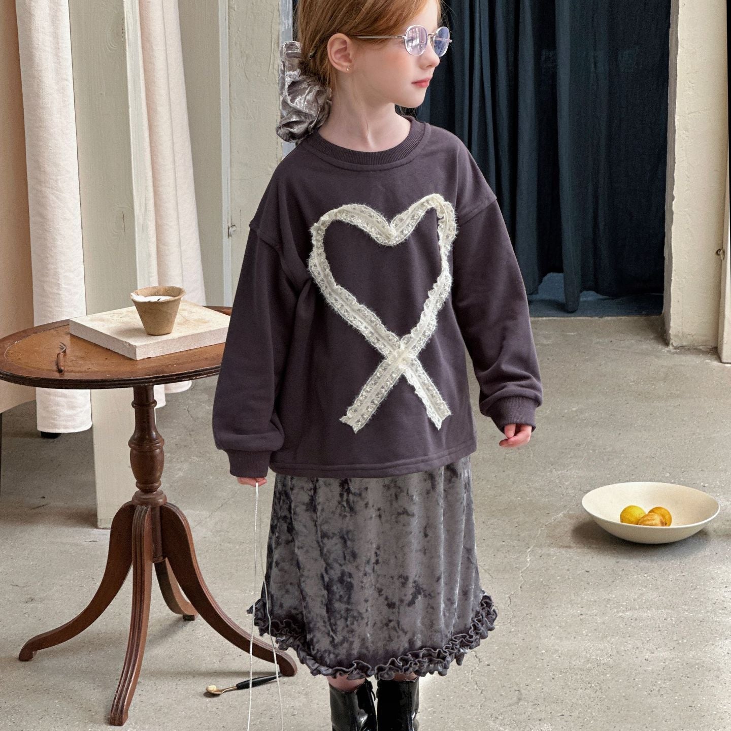 【90-140】リボンレースデザイン長袖トップス