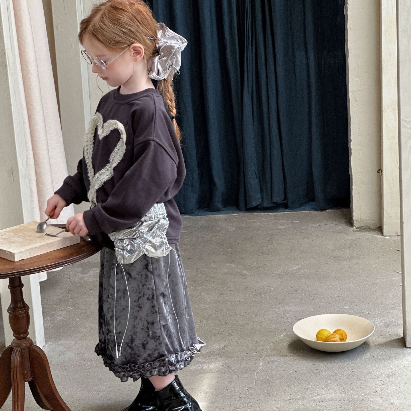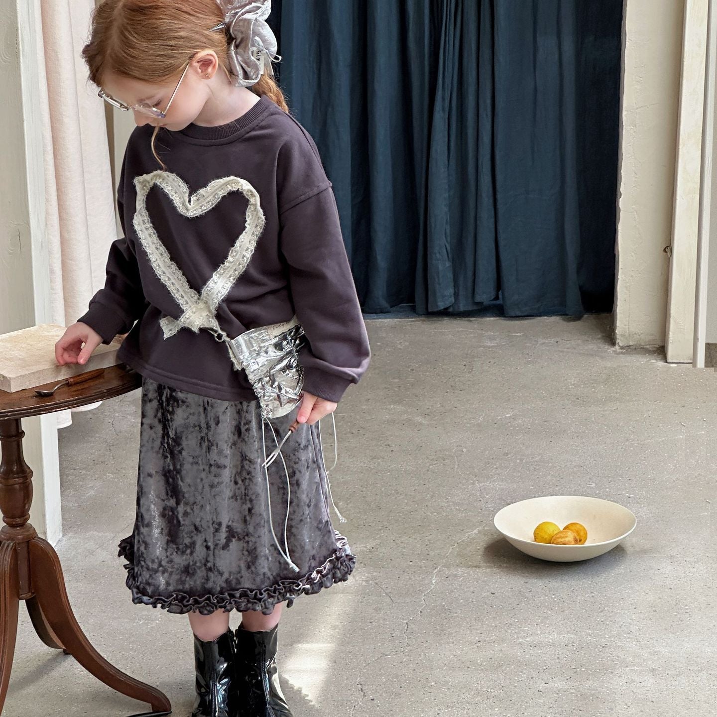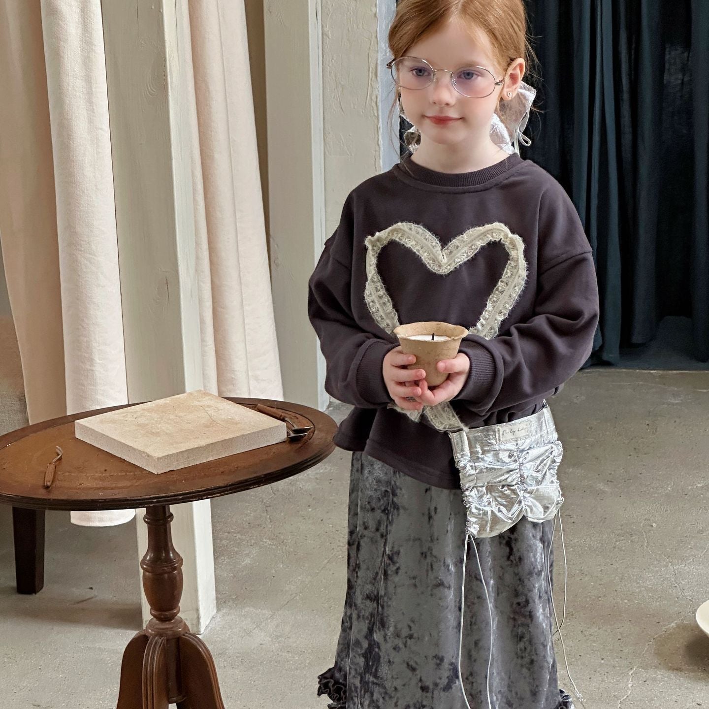 【90-140】リボンレースデザイン長袖トップス