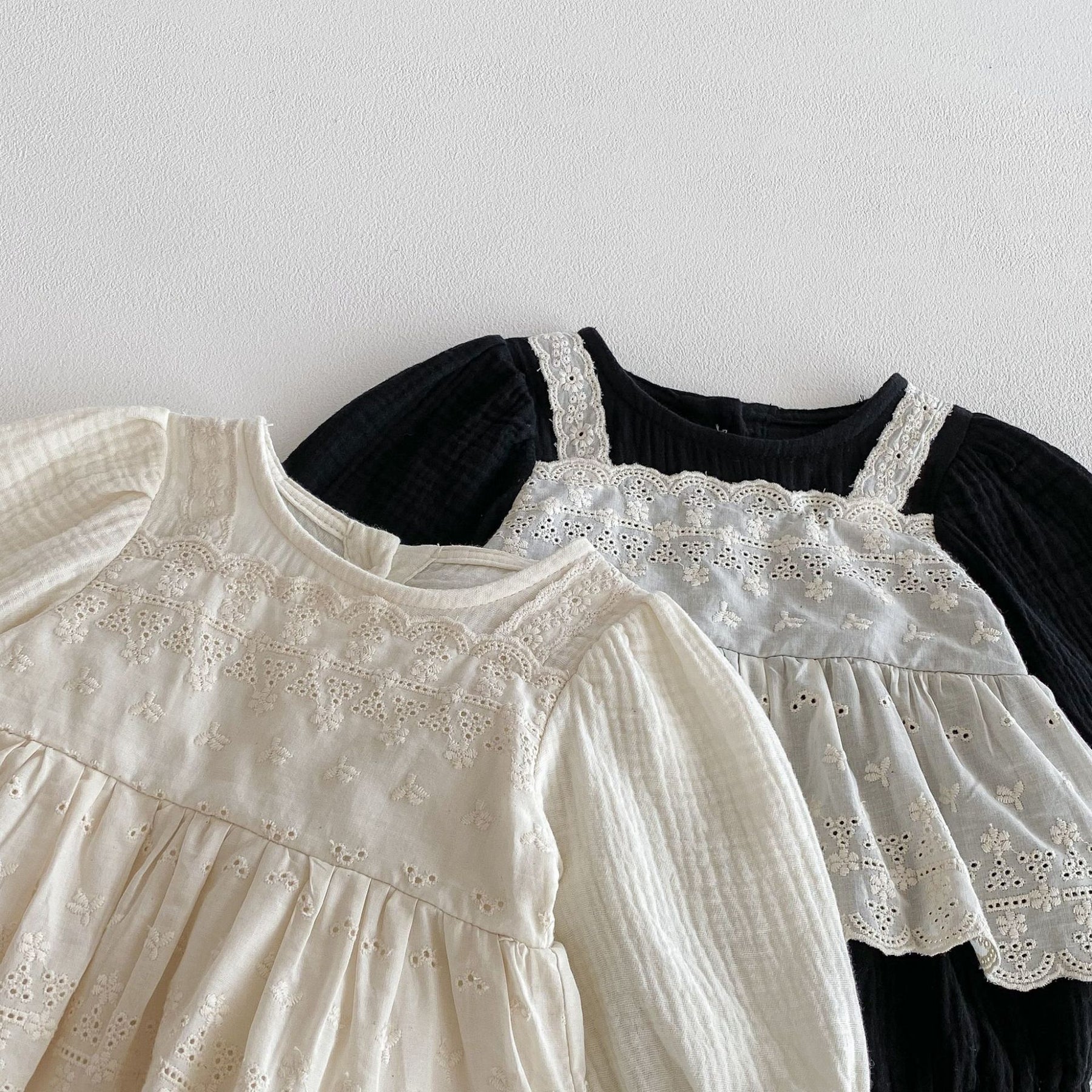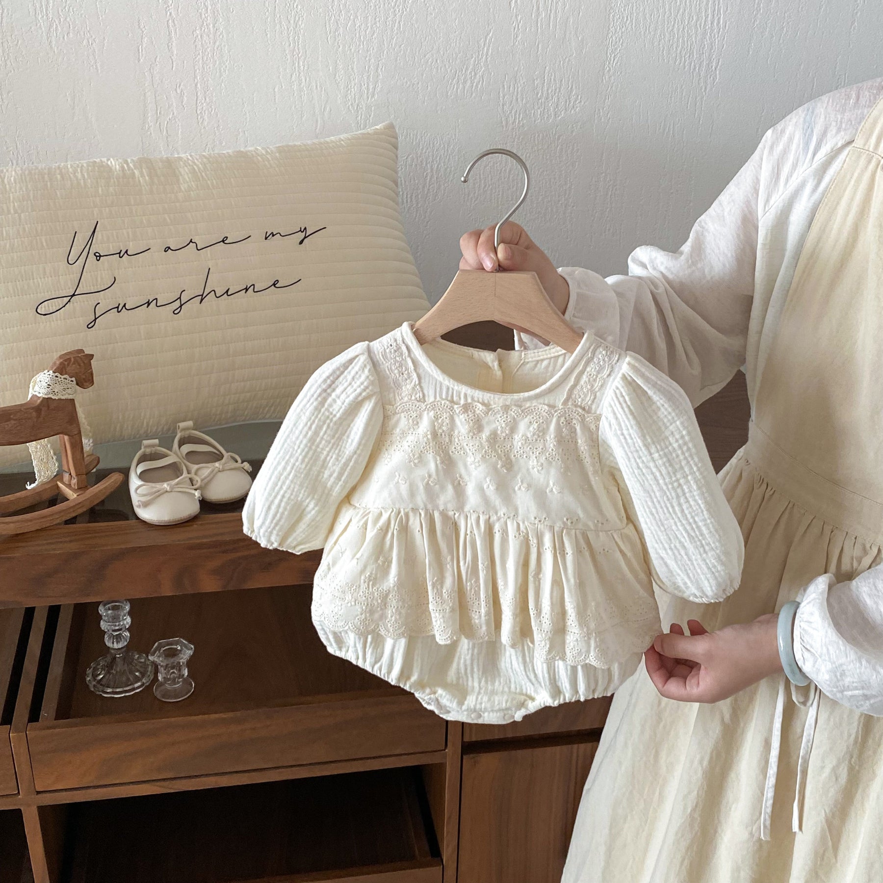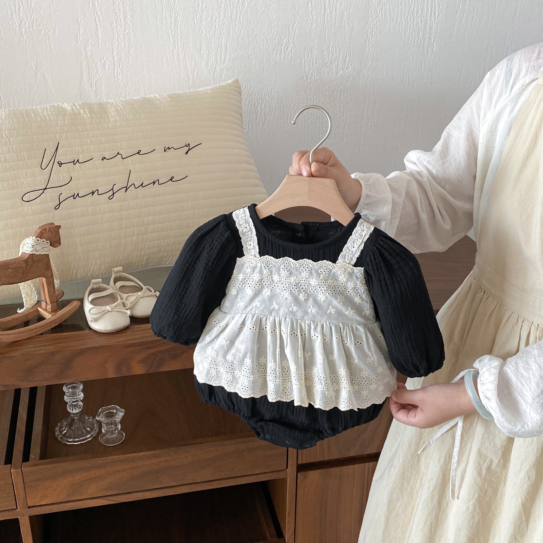 【73-90】レースレイヤード風長袖ロンパース